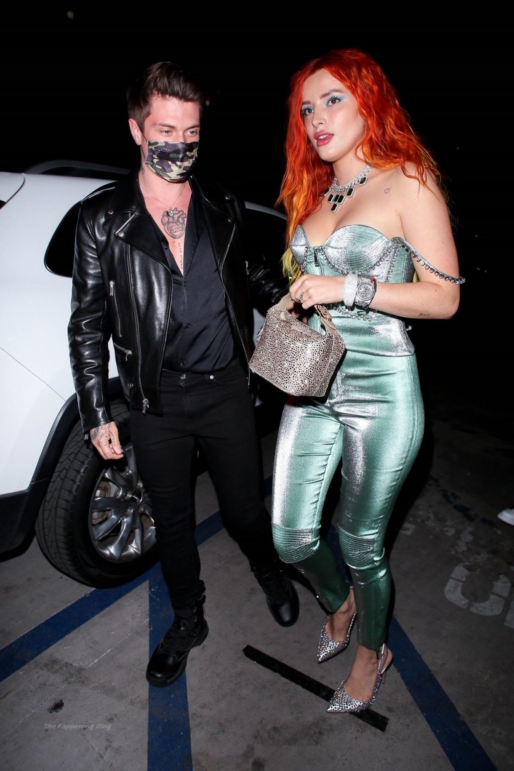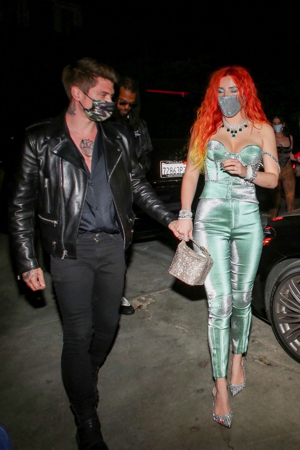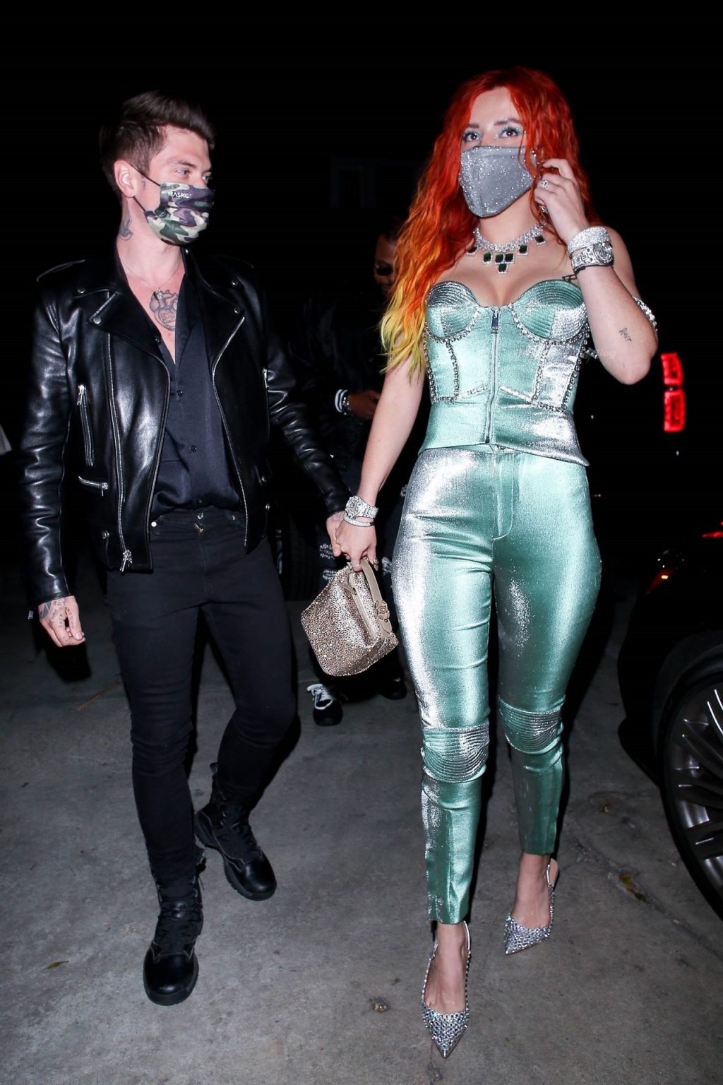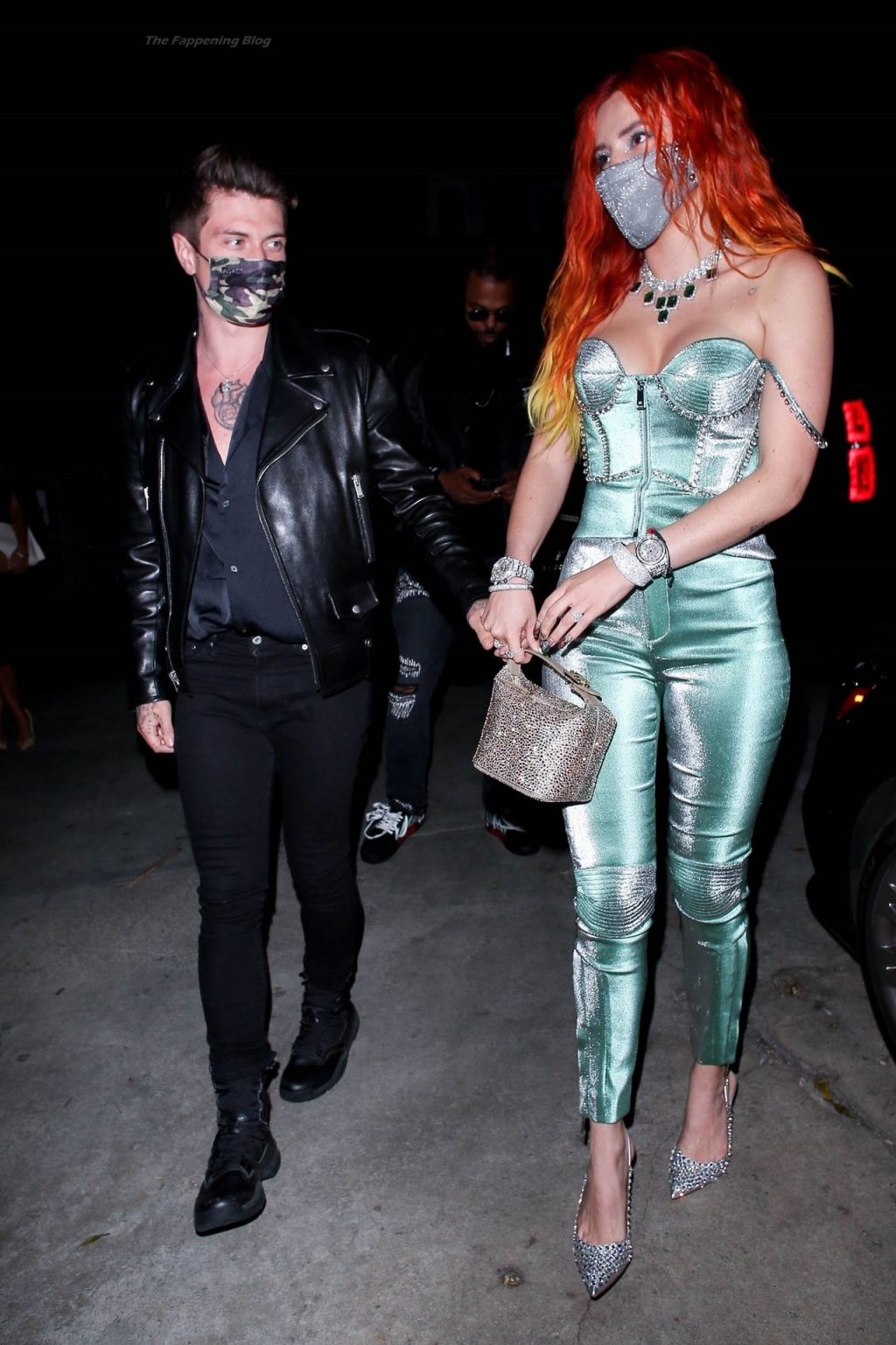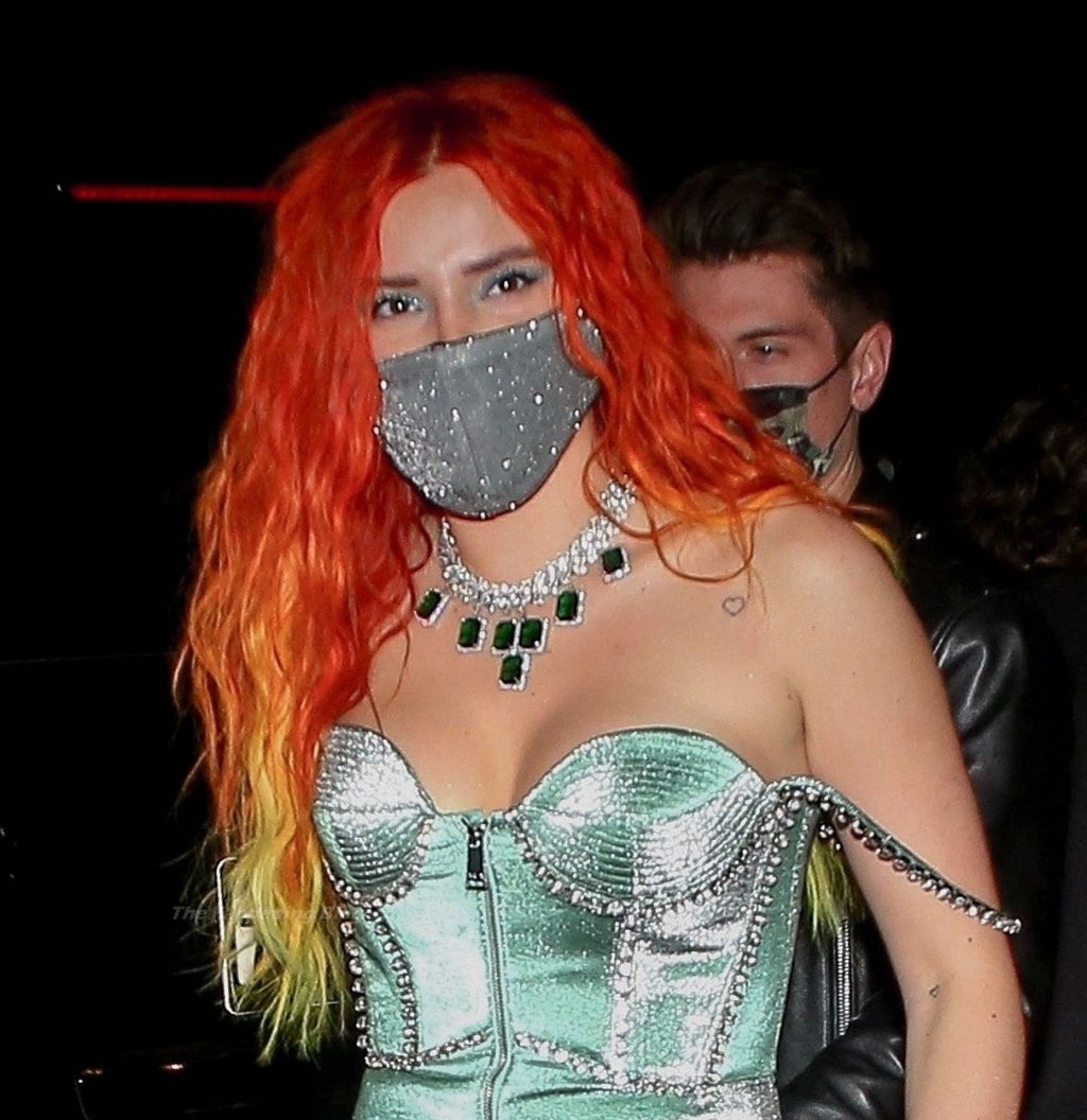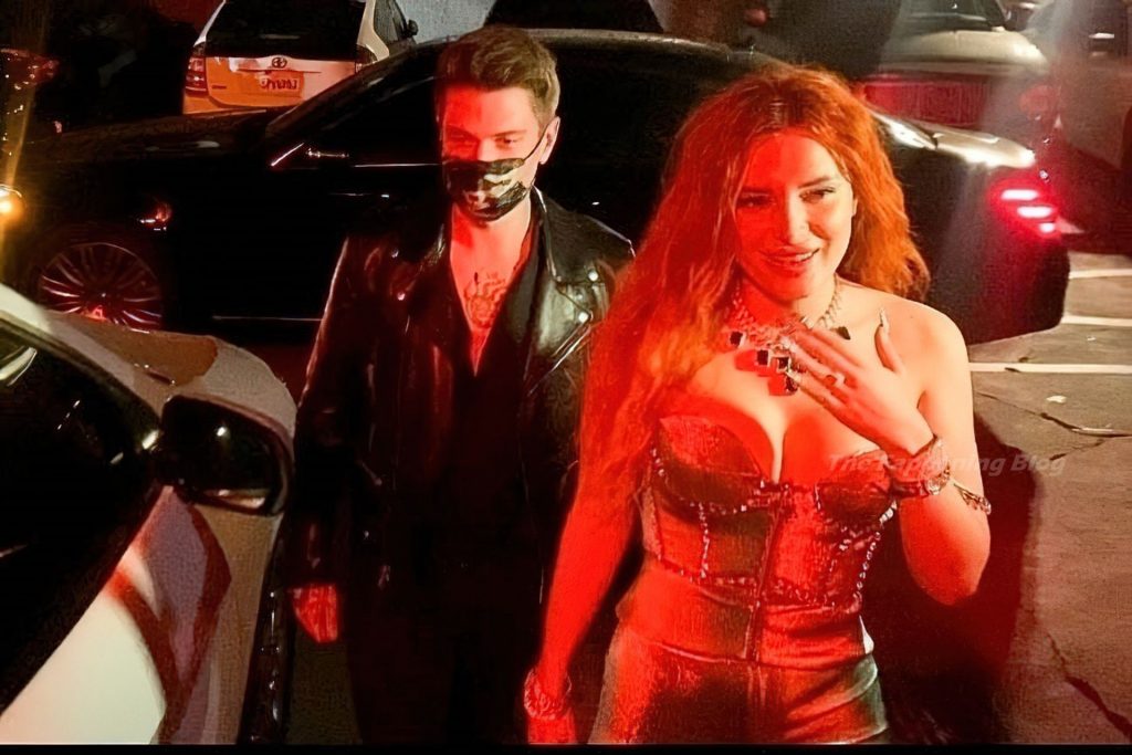 La star de The Fappening Bella Thorne montre son bague de fiançailles en diamant alors qu’elle célèbre son nouveau clip musical avec son fiancé Benjamin Mascolo à Hollywood, 03/04/2021.