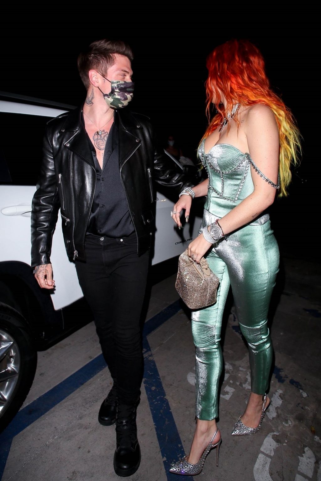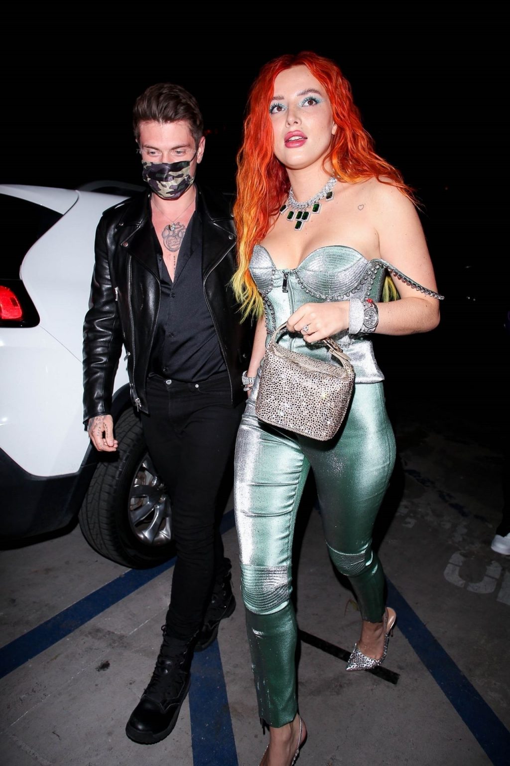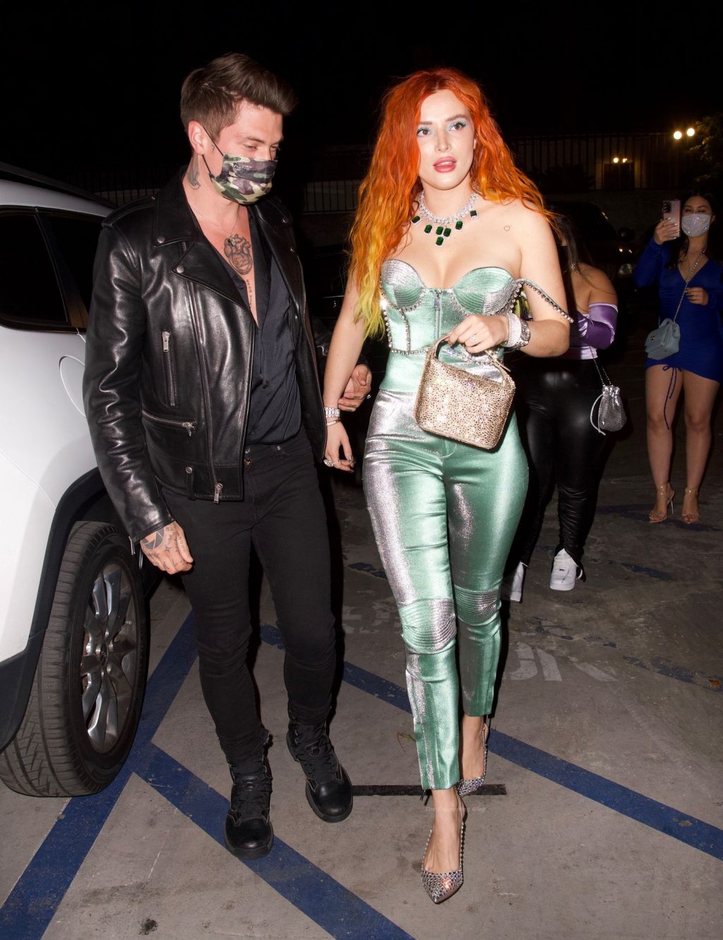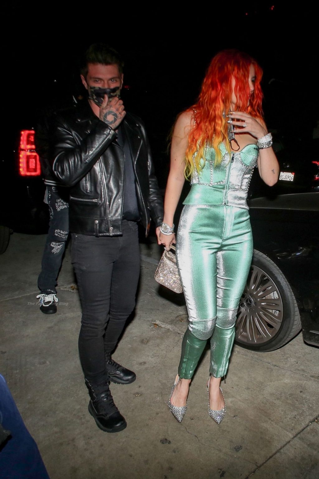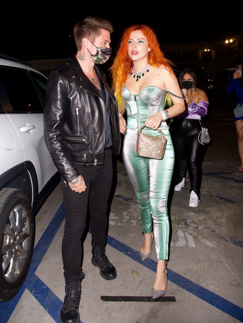 La star de The Fappening Bella Thorne montre son bague de fiançailles en diamant alors qu’elle célèbre son nouveau clip musical avec son fiancé Benjamin Mascolo à Hollywood, 03/04/2021.