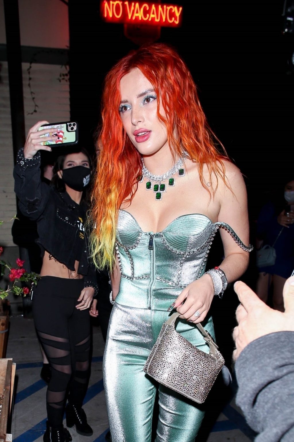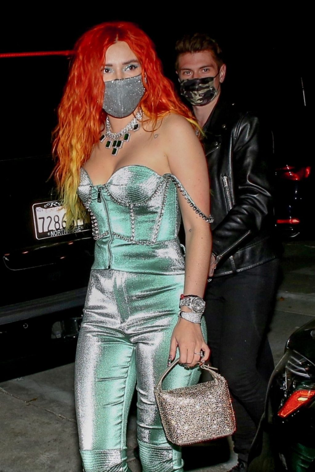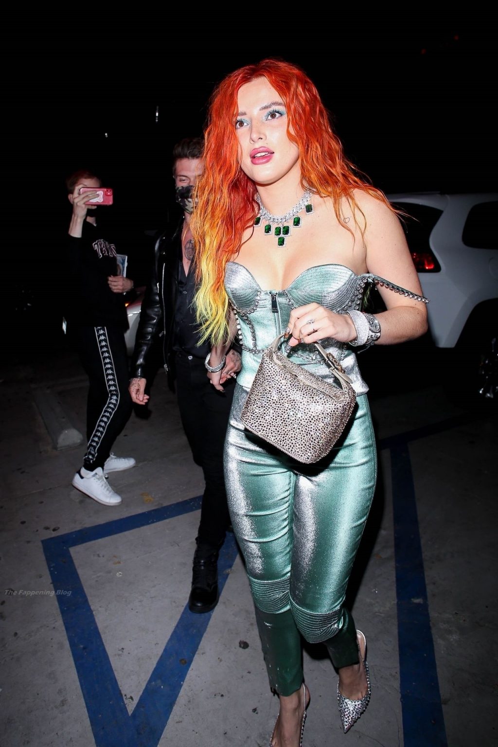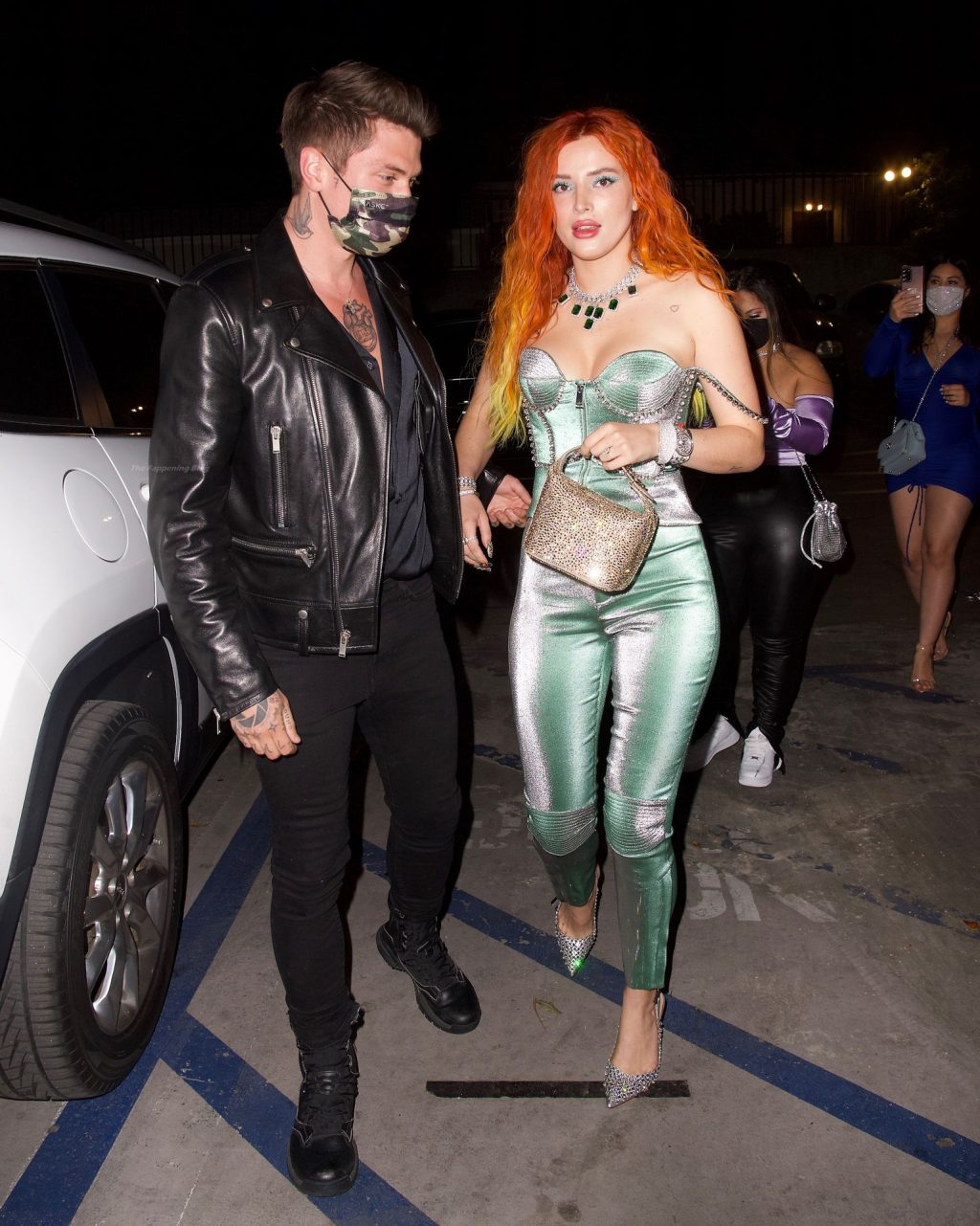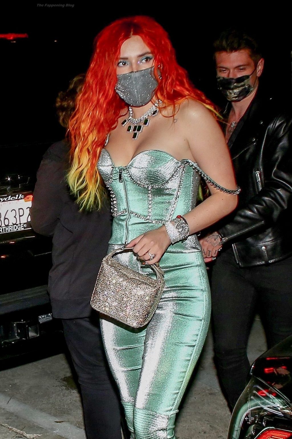 La star de The Fappening Bella Thorne montre son bague de fiançailles en diamant alors qu’elle célèbre son nouveau clip musical avec son fiancé Benjamin Mascolo à Hollywood, 03/04/2021.