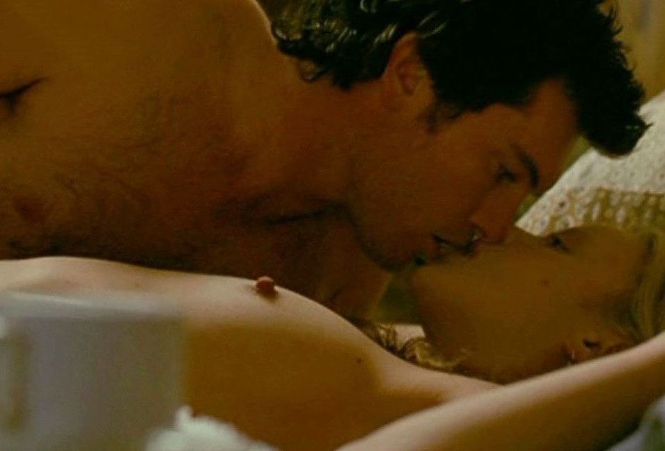 Abbie Cornish is sitting up in bed and dropping the covers to reveal her breasts to a guy. She is seen topless on her back with both breasts in view from above as she receives oral sex from a guy in bed.