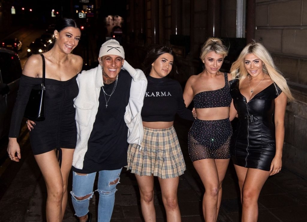 Le casting de Geordie Shore en dehors du tournage de la saison 19 de Geordie Shore. Le groupe se retrouve au Bijoux Nightclub dans le Toon et a présenté une autre nouvelle fille. Abi Newton, qui est actuellement la petite amie de Natalie Phillips, car le duo s’est montré un peu tactile !