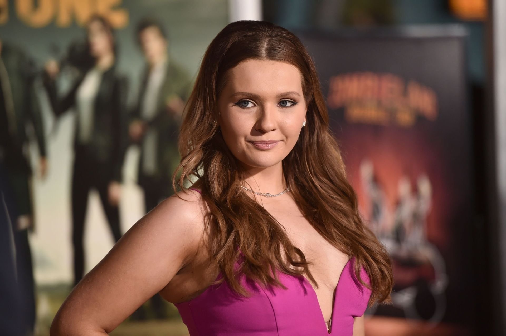 L’actrice et chanteuse américaine Abigail Breslin (23 ans) a montré son décolleté en posant dans une robe rose lors de la première de “Zombieland Double Tap” de Sony Pictures au Regency Village Theatre à Westwood, le 10/10/2019.