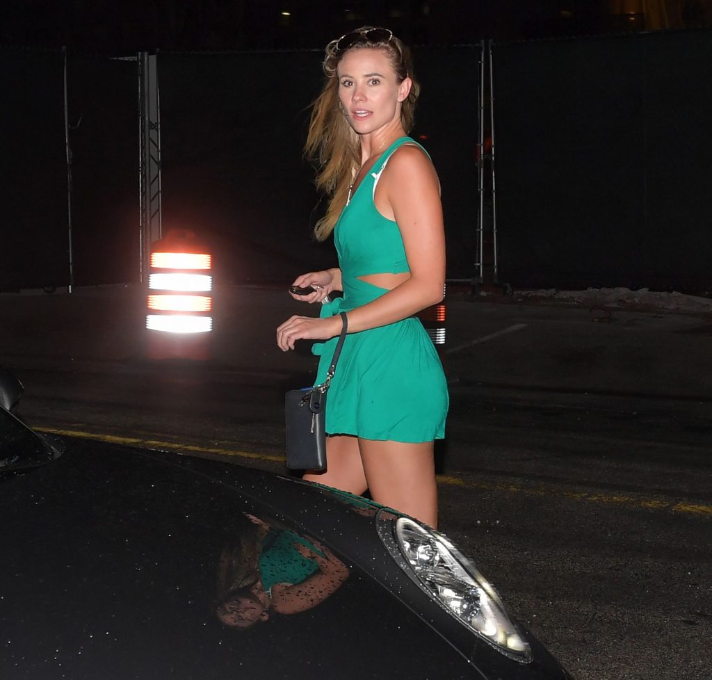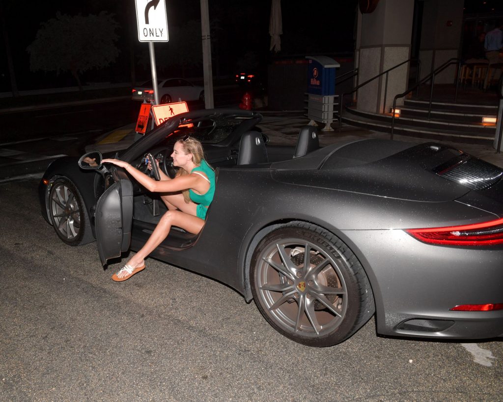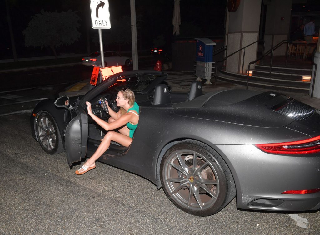 Mormon Church Porn Star et égérie de Penthouse de juin 2019 ainsi que fille de couverture de mai/juin, Addie Andrews sort de sa Porsche avec ses longues jambes et son allure de supermodel, portant une jolie robe d’été turquoise, tandis qu’elle prend un verre rapide avec des amis dans un bar local le 24 octobre 2019 à Miami Beach, Floride.