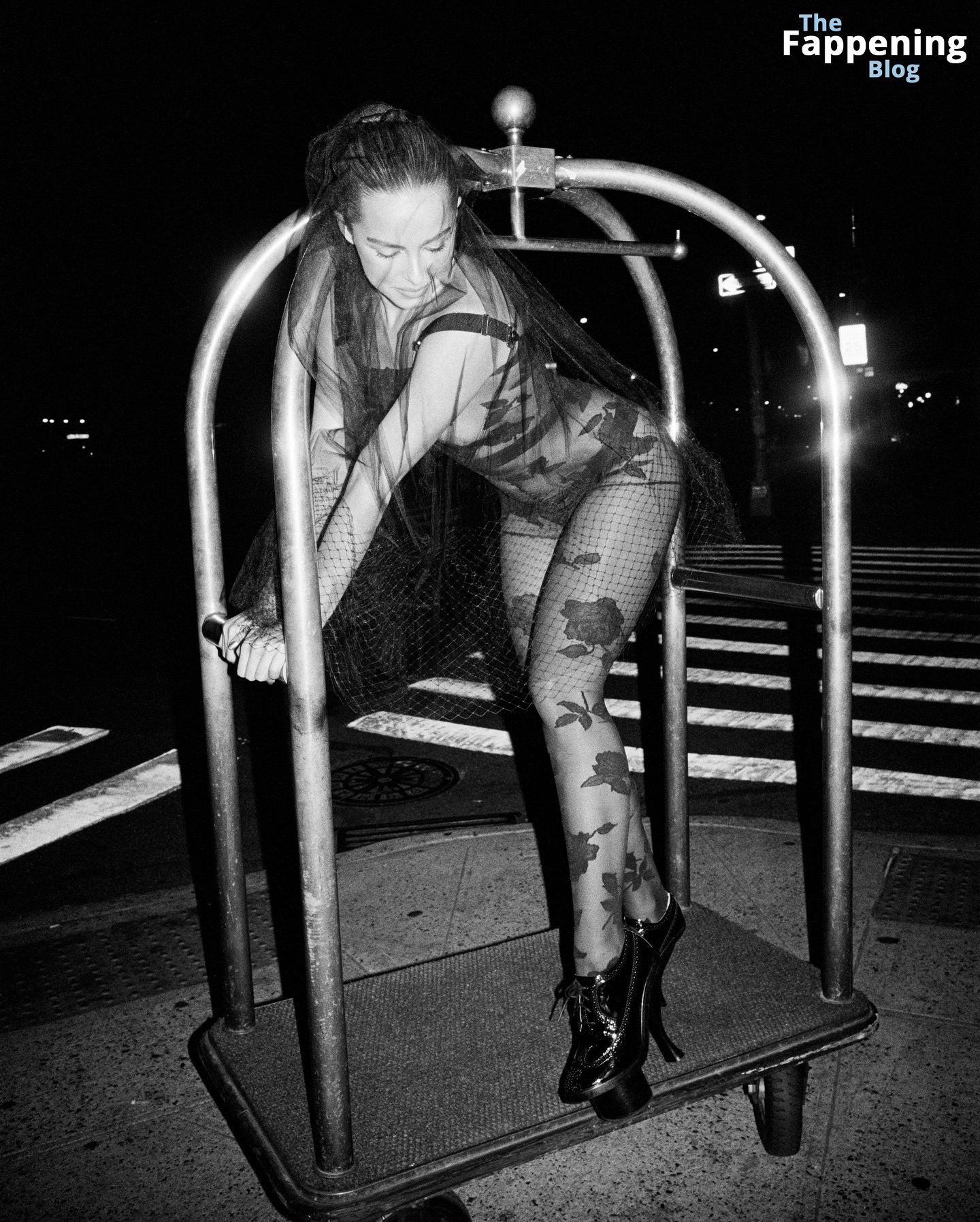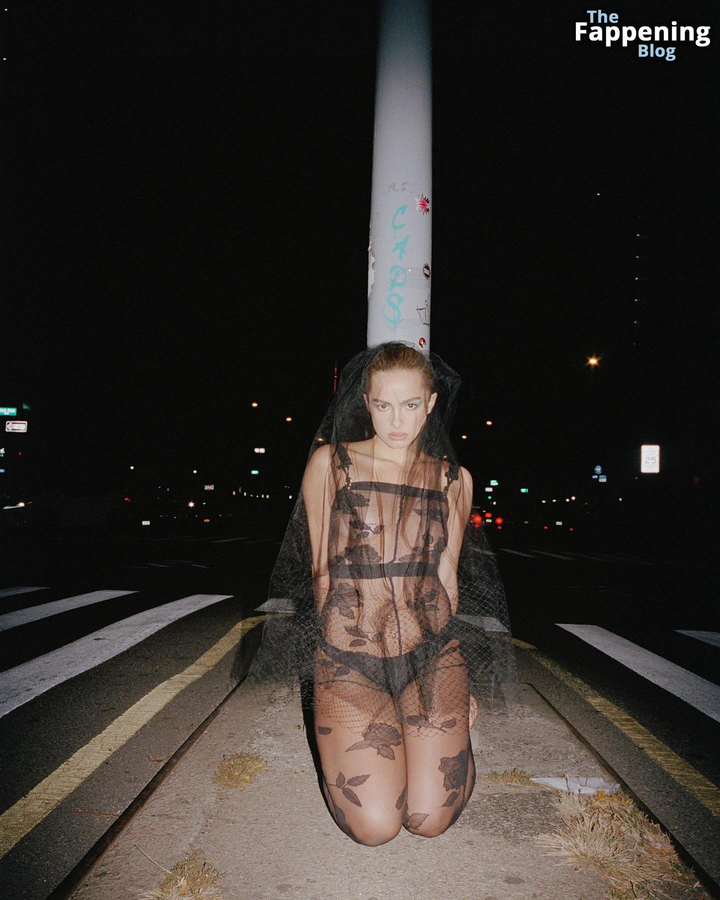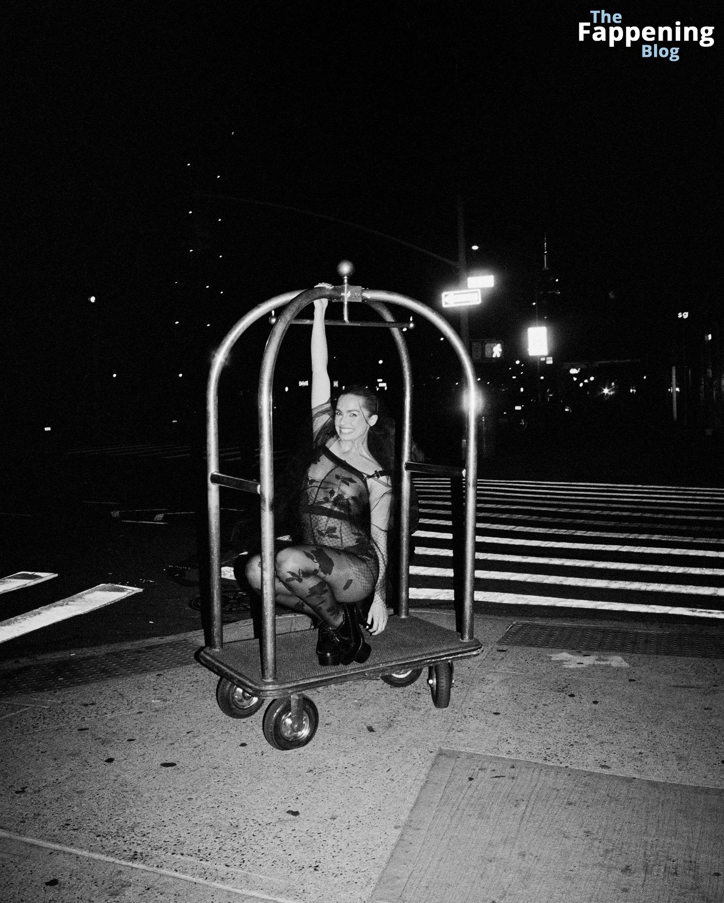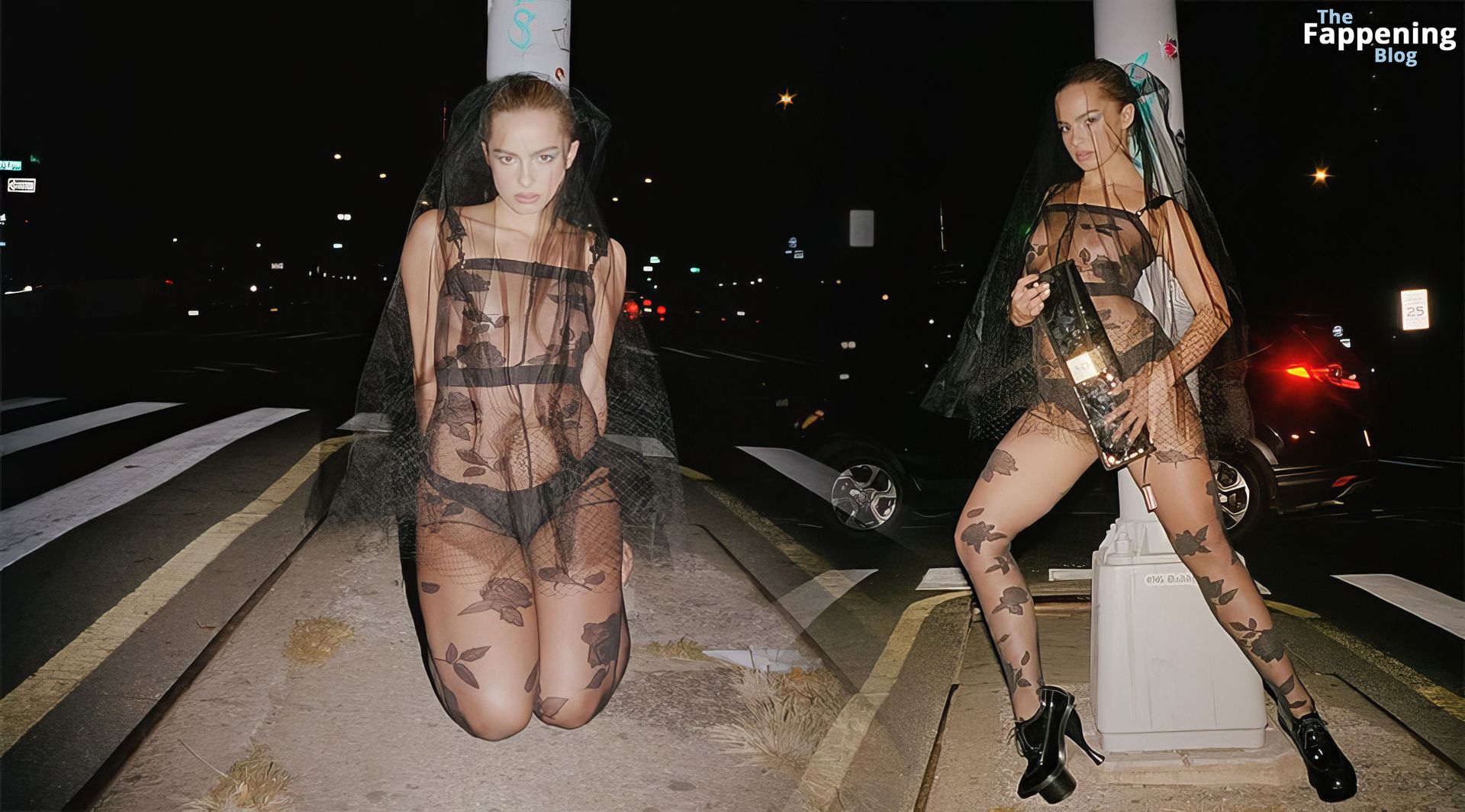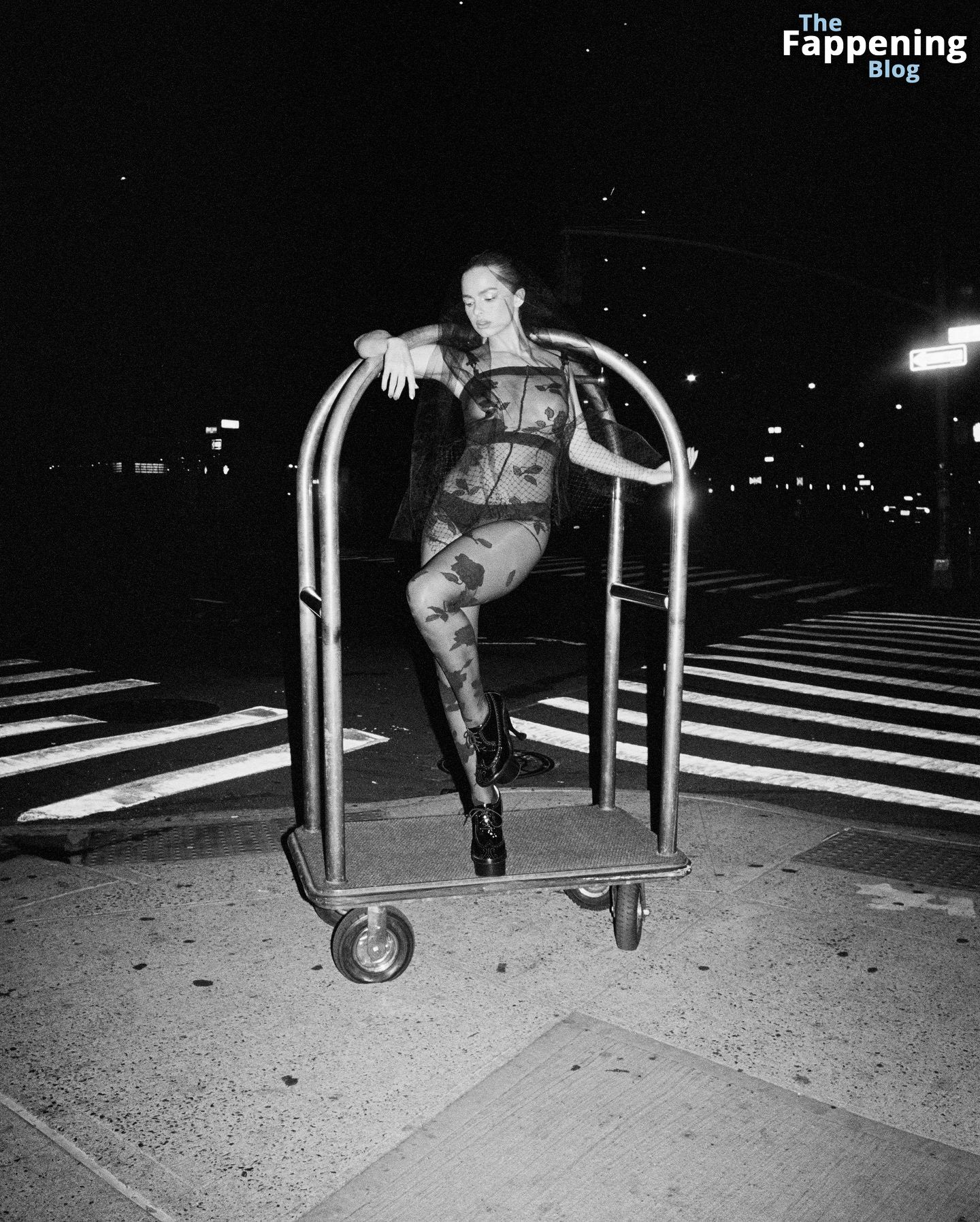 La chanteuse et star de TikTok Addison Rae apparaît presque nue dans un body transparent orné de dentelle florale, mettant en valeur ses courbes sous les lumières de la ville lors d’une séance photo sensuelle et provocante.
