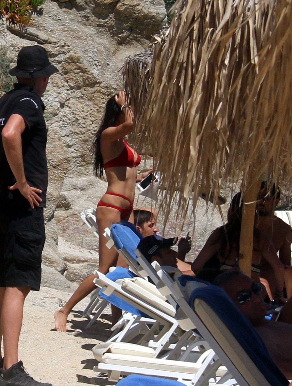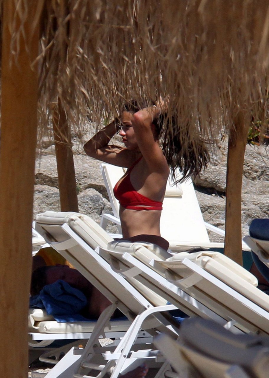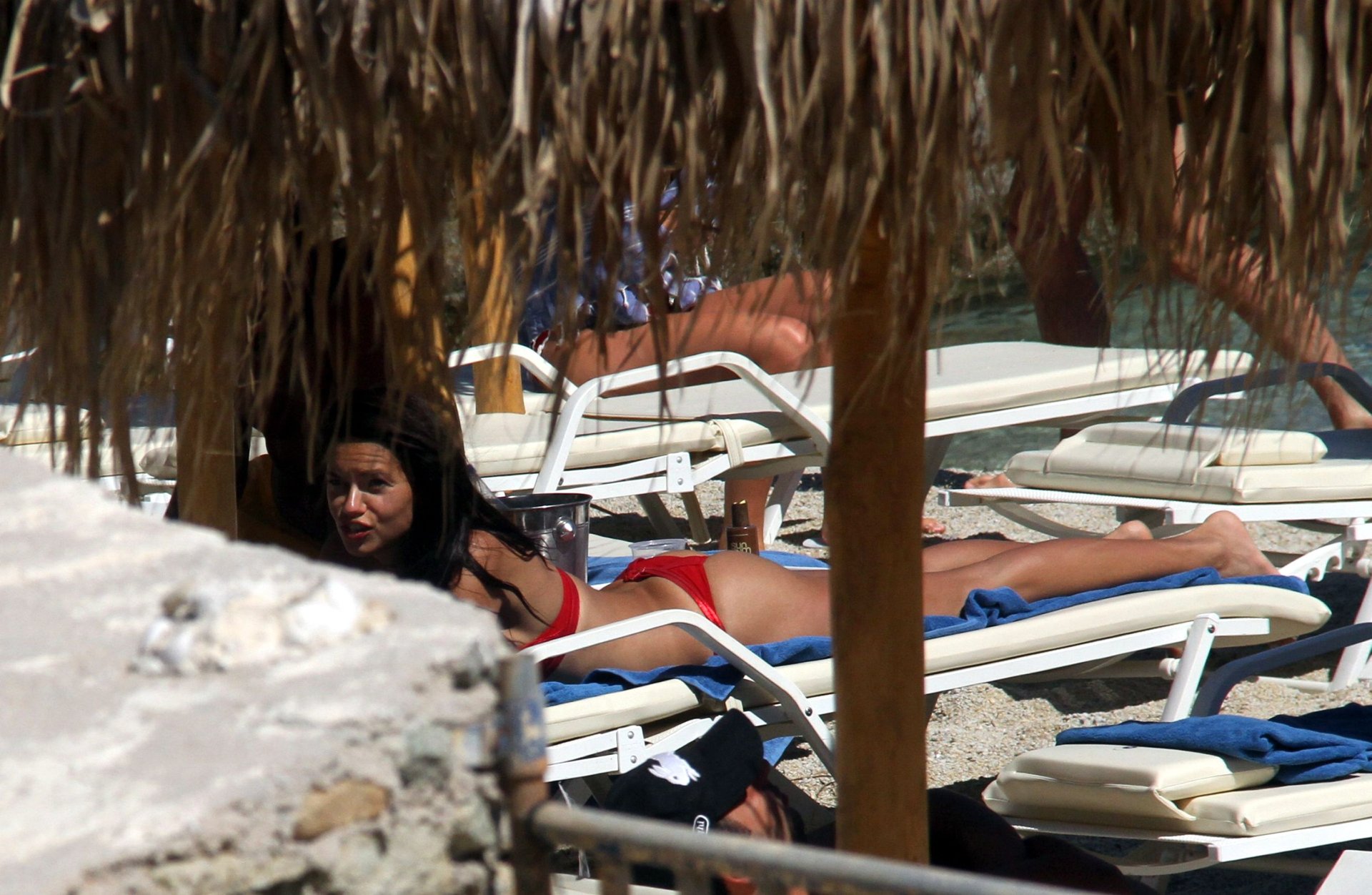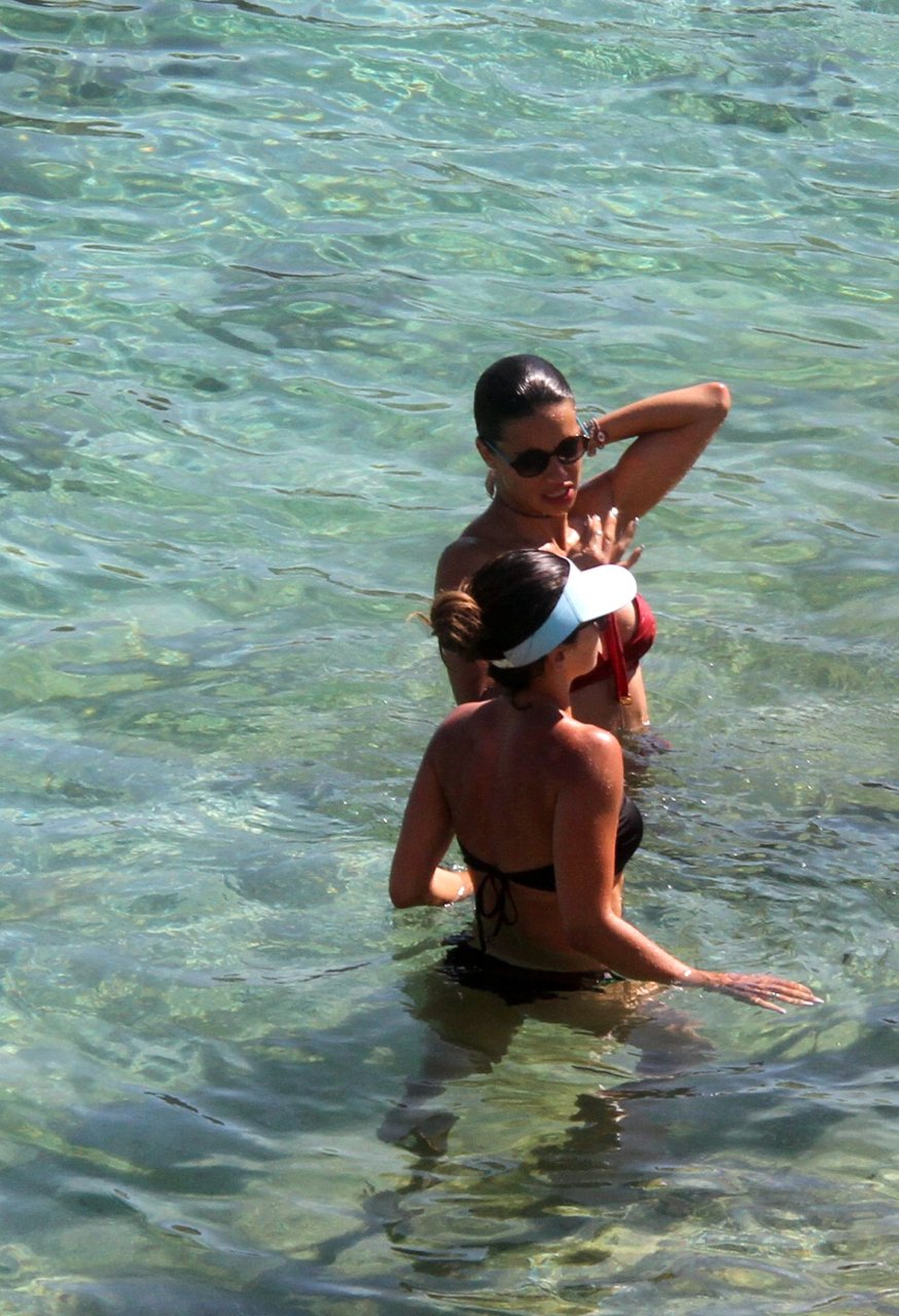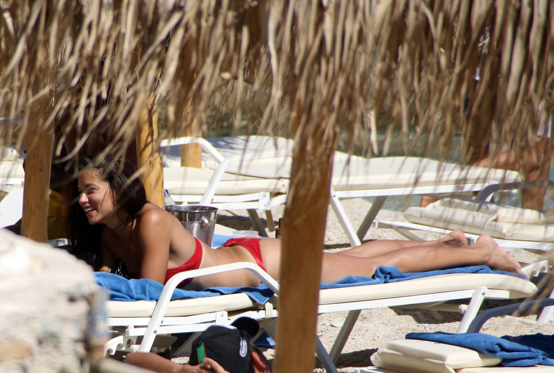 Adriana Lima montre son corps sexy en bikini rouge à Mykonos, 07/10/2016. Fureur rouge ! Adriana Lima est un mannequin et actrice brésilienne. Âge : 35 ans (12 juin 1981).