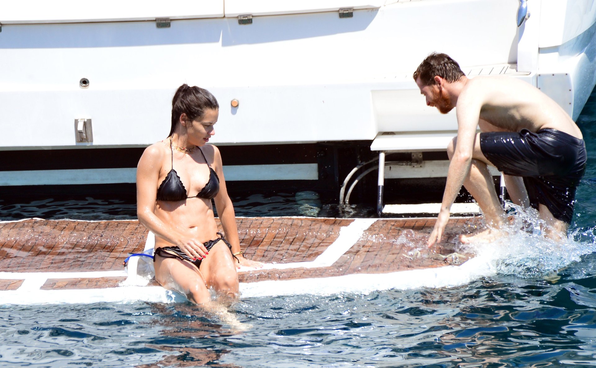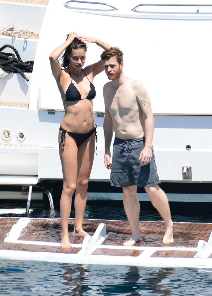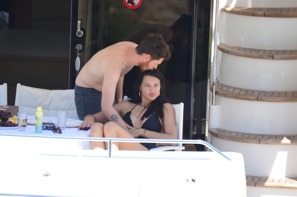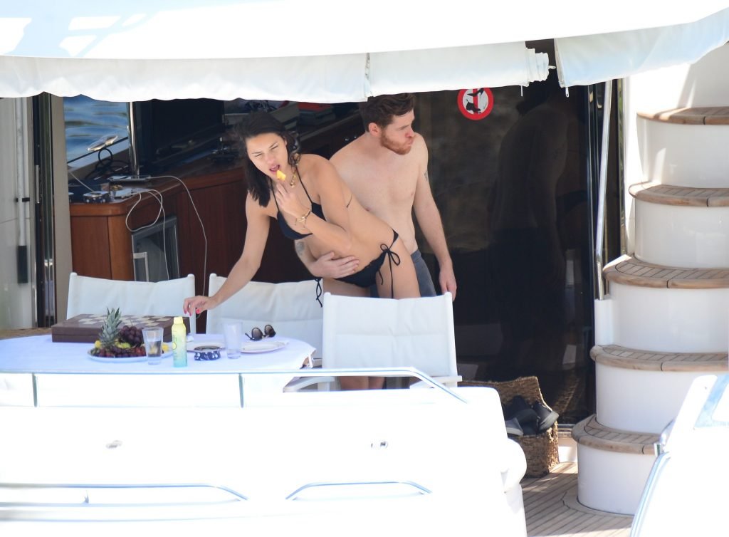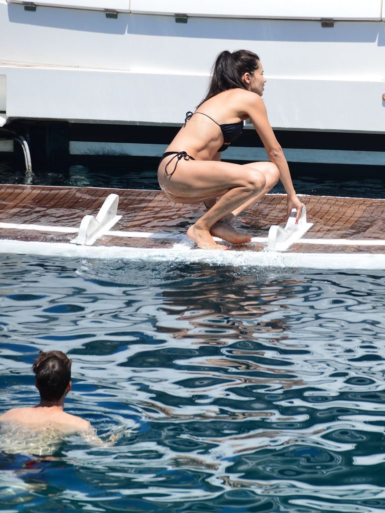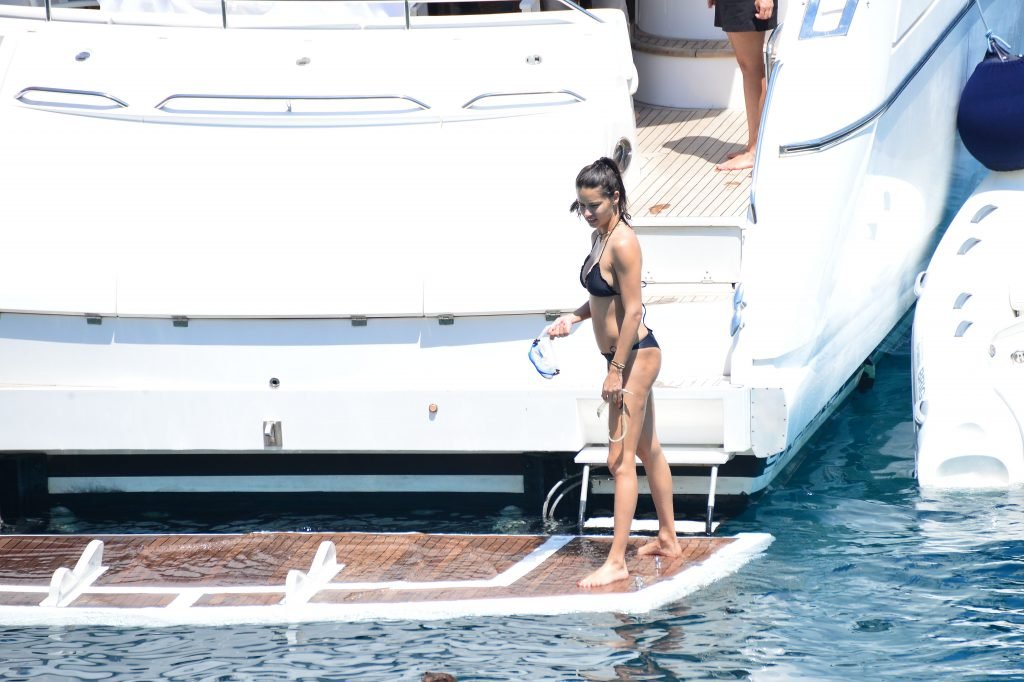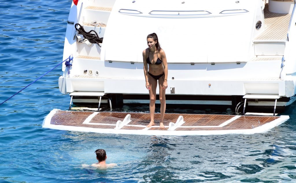Adriana Lima porte un bikini noir sur un yacht à Bodrum, en Turquie, le 14/07/2017. Adriana Lima est un top modèle brésilien de mode, actrice (Ocean’s Eight). Âge – 36.