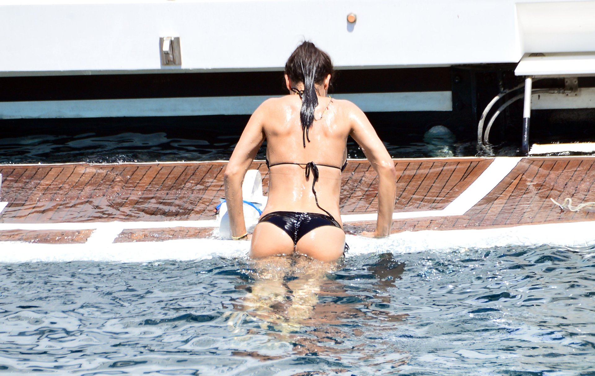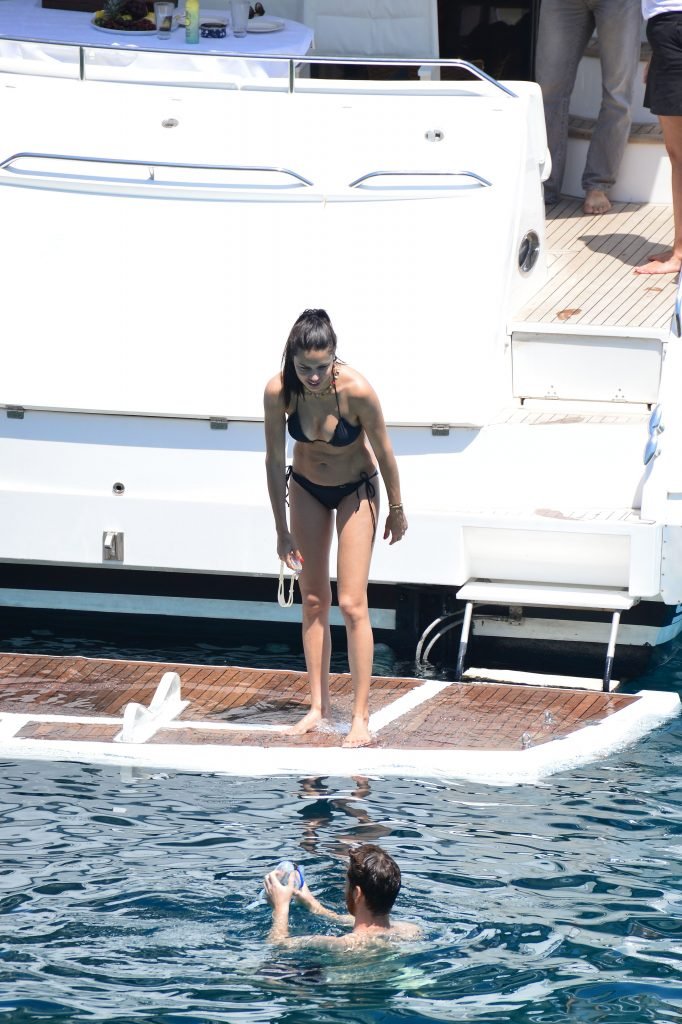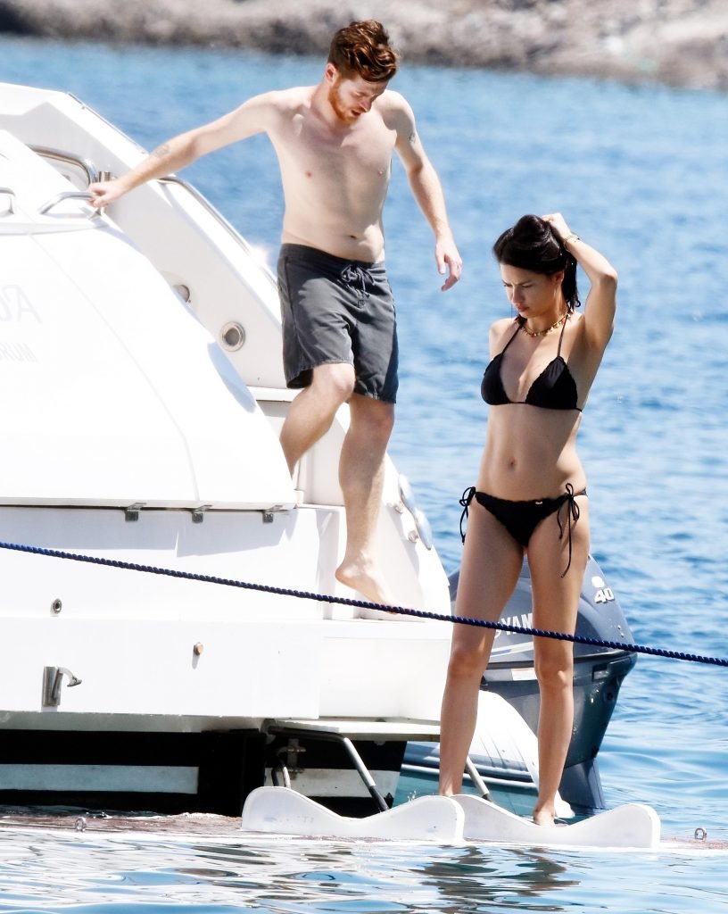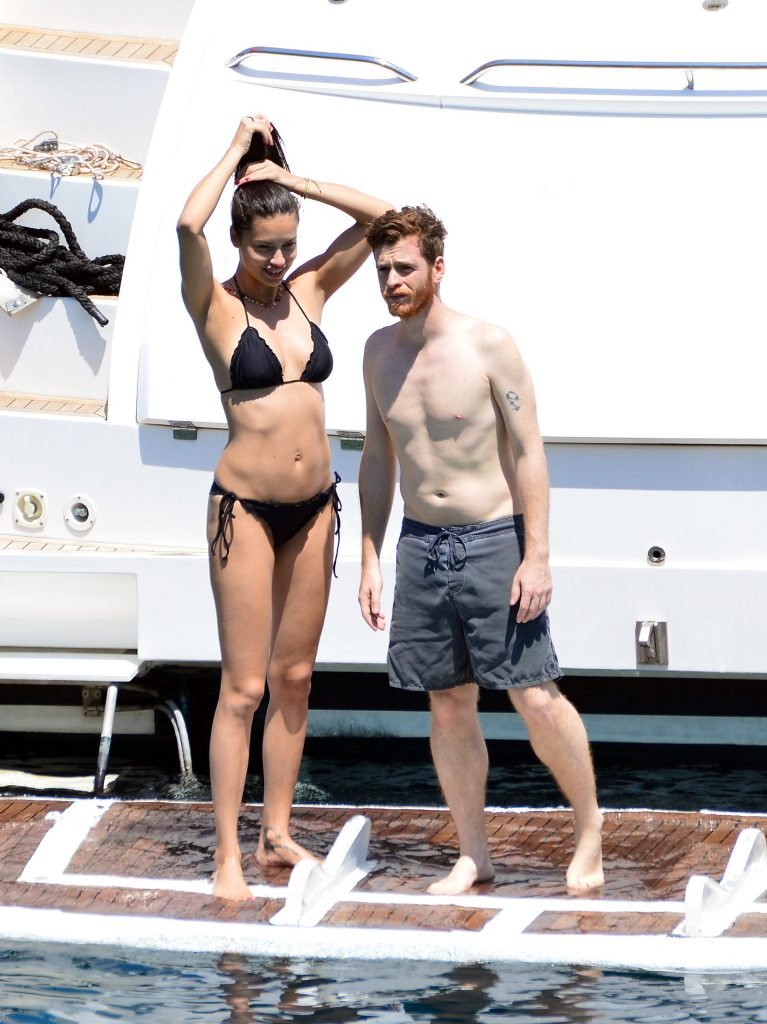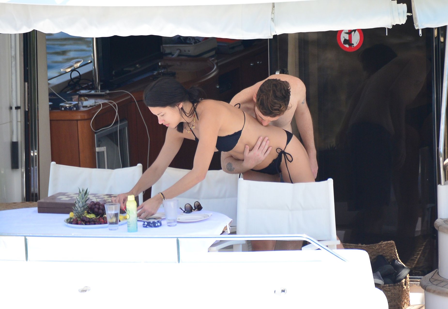 Adriana Lima porte un bikini noir sur un yacht à Bodrum, en Turquie, le 14/07/2017. Adriana Lima est un top modèle brésilien de mode, actrice (Ocean’s Eight). Âge – 36.