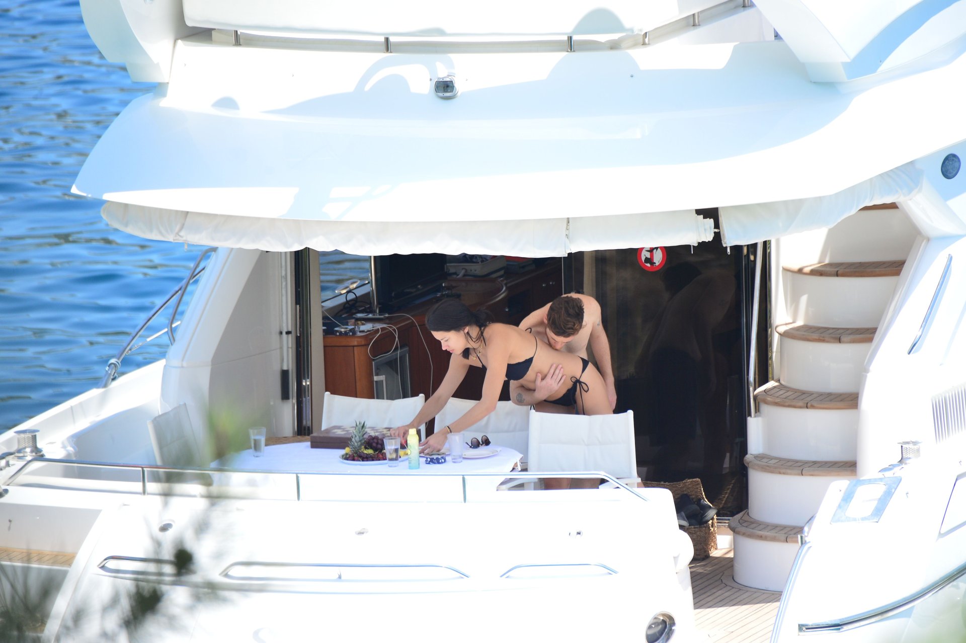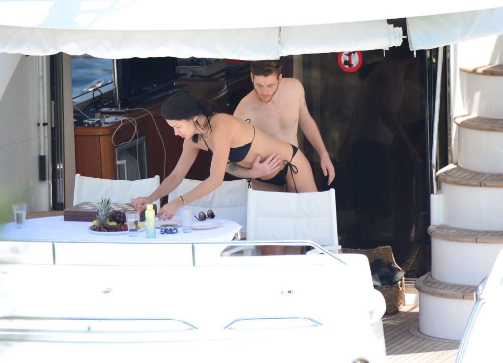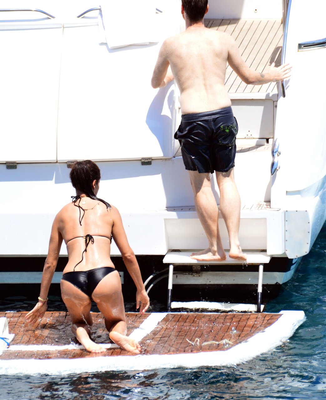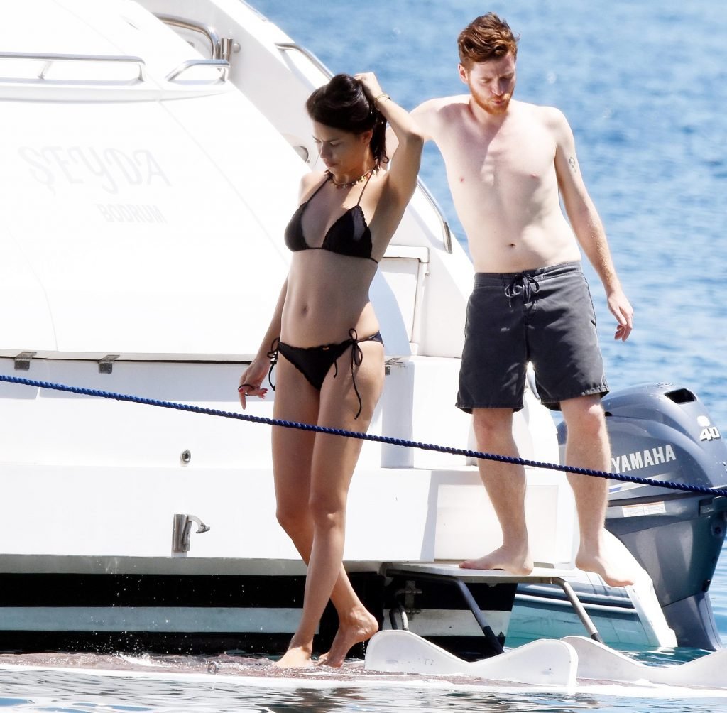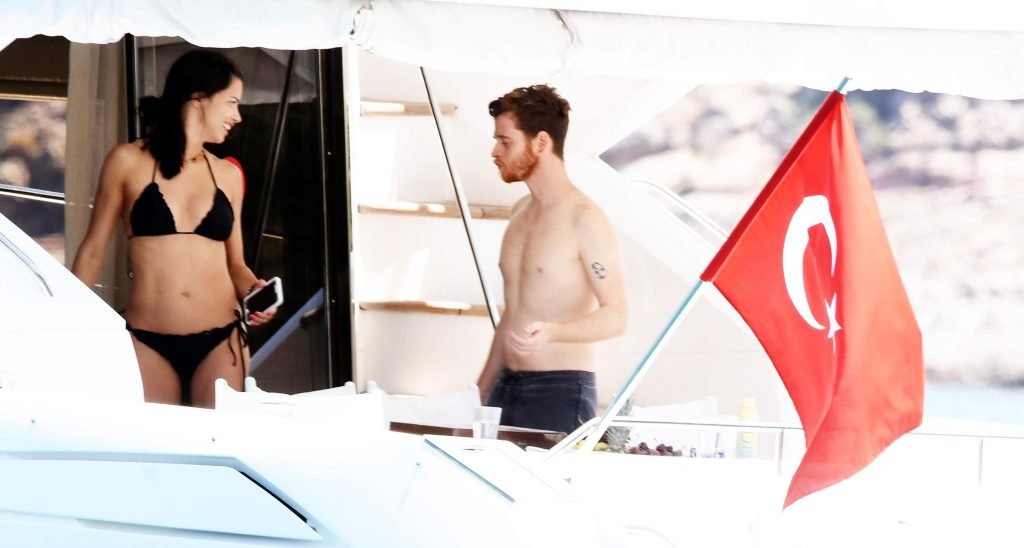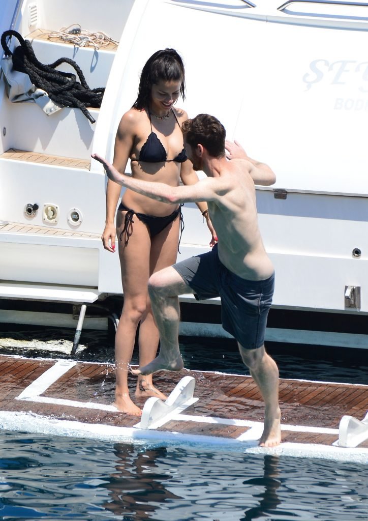 Adriana Lima porte un bikini noir sur un yacht à Bodrum, en Turquie, le 14/07/2017. Adriana Lima est un top modèle brésilien de mode, actrice (Ocean’s Eight). Âge – 36.