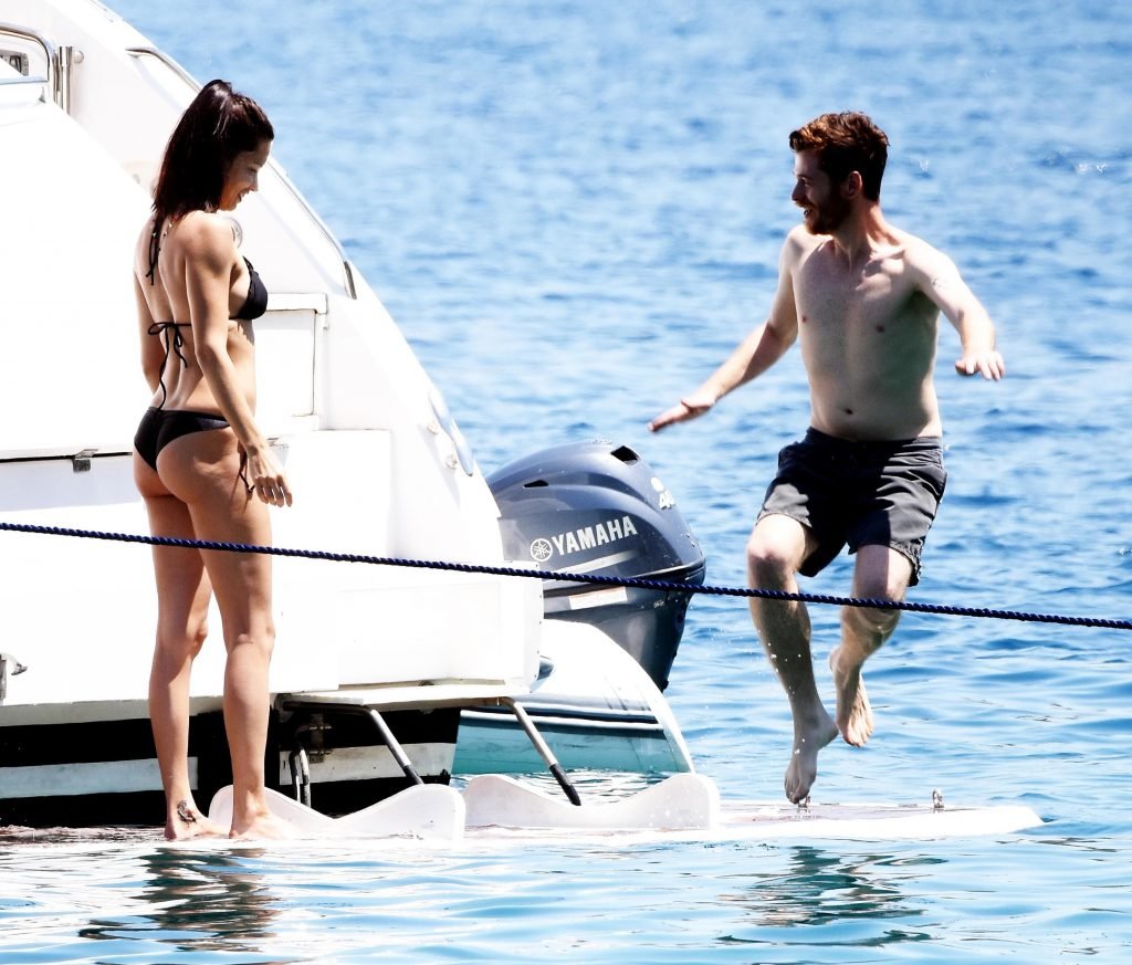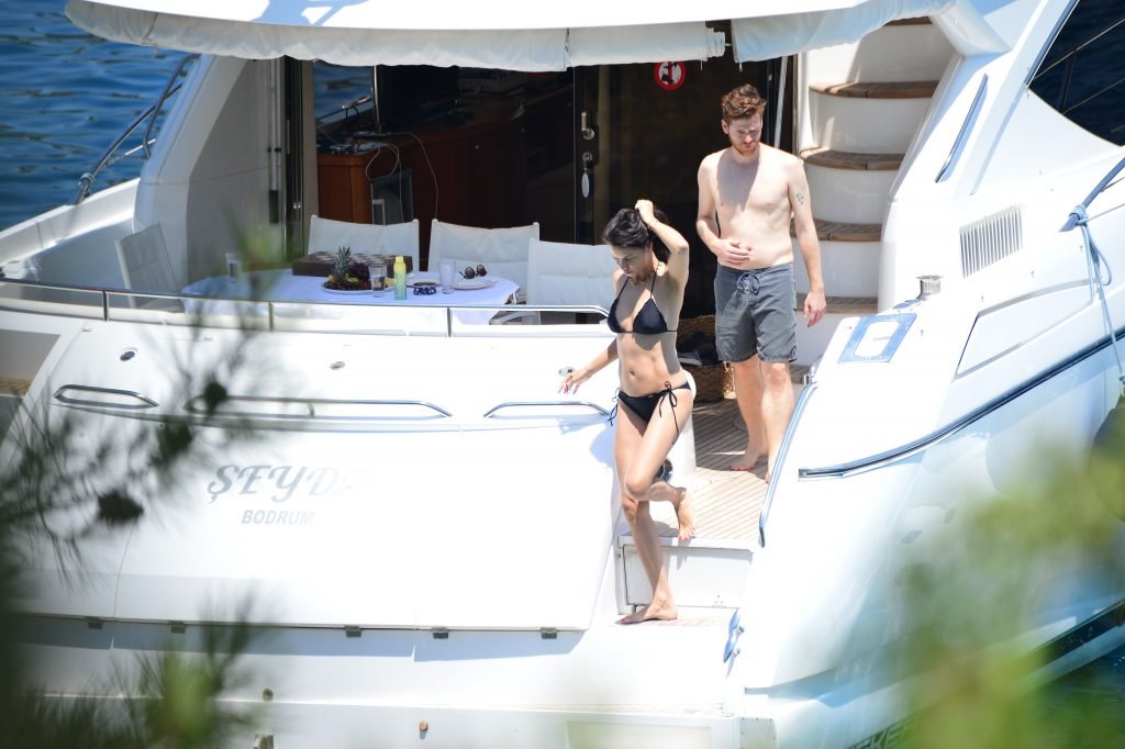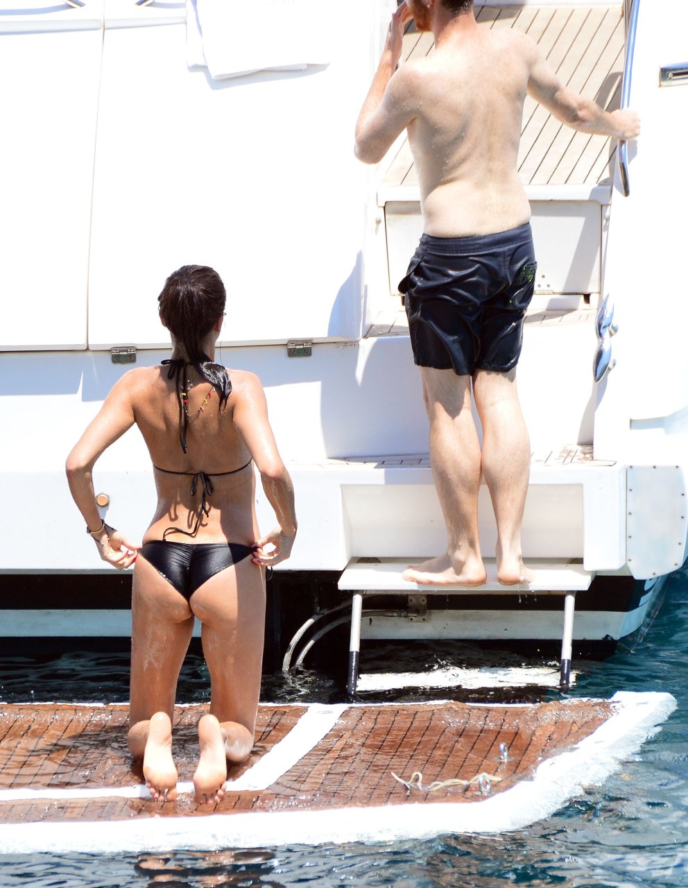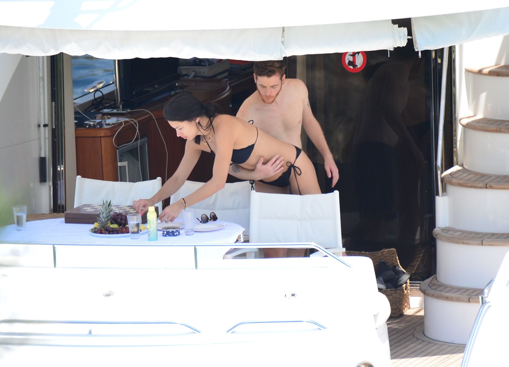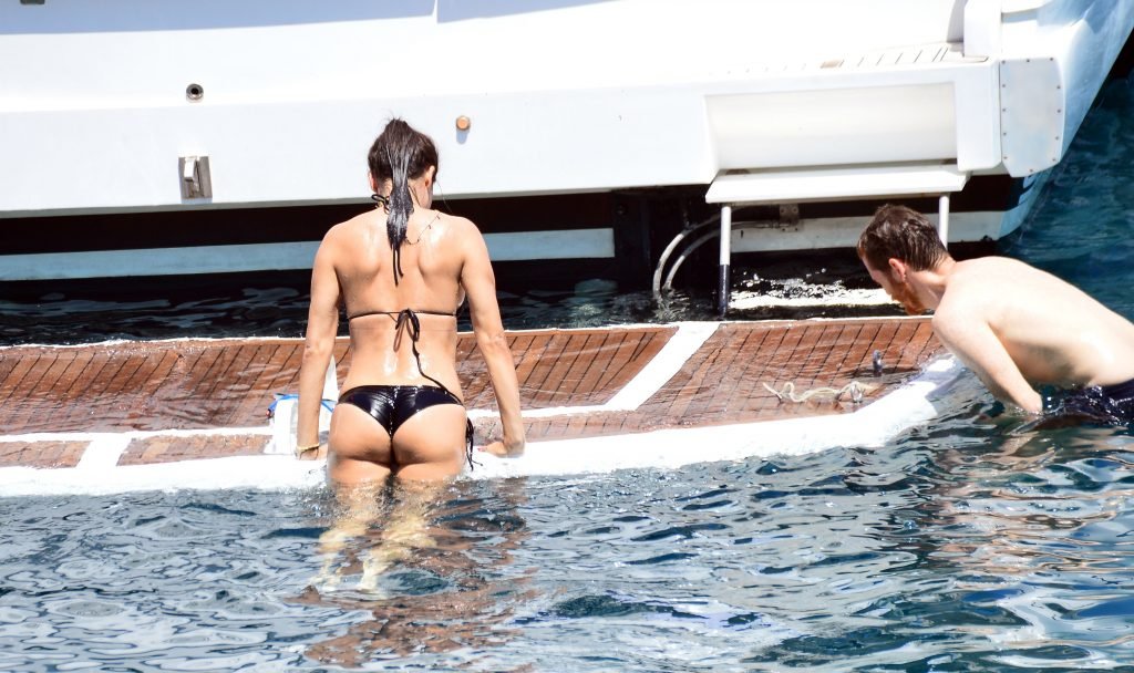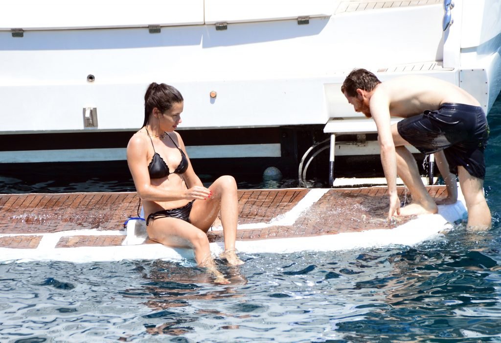 Adriana Lima porte un bikini noir sur un yacht à Bodrum, en Turquie, le 14/07/2017. Adriana Lima est un top modèle brésilien de mode, actrice (Ocean’s Eight). Âge – 36.
