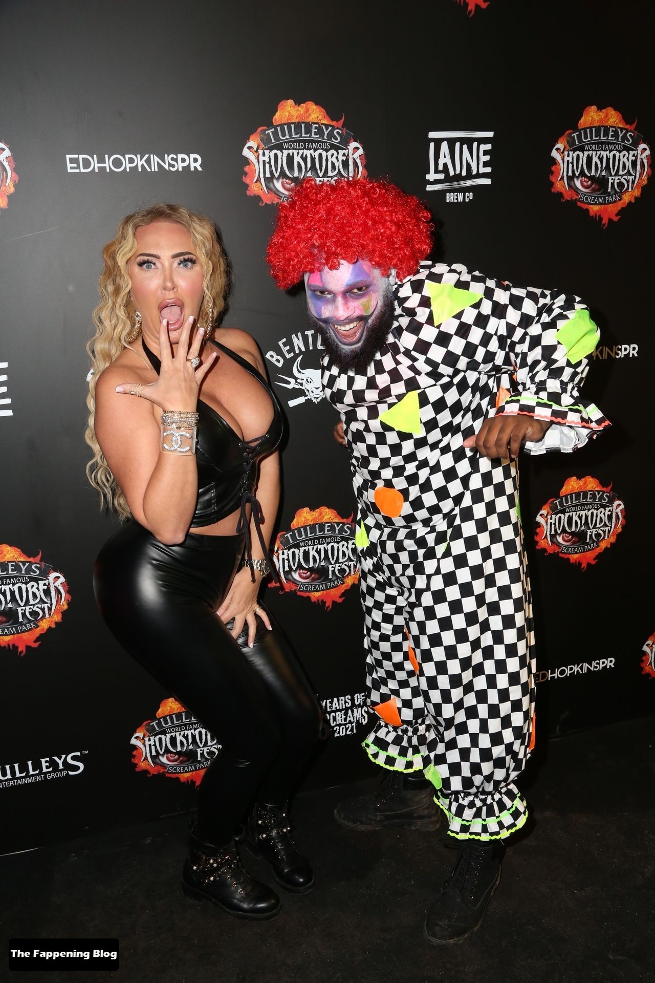 La star de la télé-réalité Aisleyne Horgan-Wallace assiste à la soirée presse du Shocktober Fest à Tulleys Farm à Londres, le 01/10/2021.