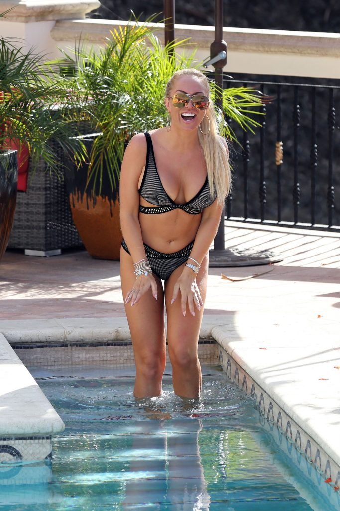 Aisleyne Horgan-Wallace montre son corps sexy en bikini au bord de la piscine à Los Angeles, 26/11/2017. Aisleyne Horgan-Wallace est une star de la télé-réalité (Big Brother), mannequin, créatrice, actrice, chroniqueuse de magazine. Âge : 38 ans.