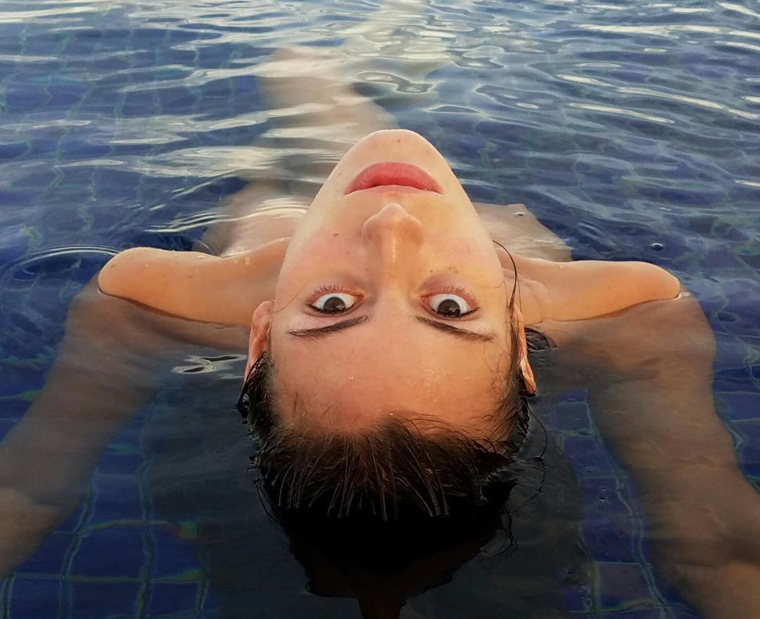 J'adore comment ses fesses sortent de l'eau sur la première photo.
