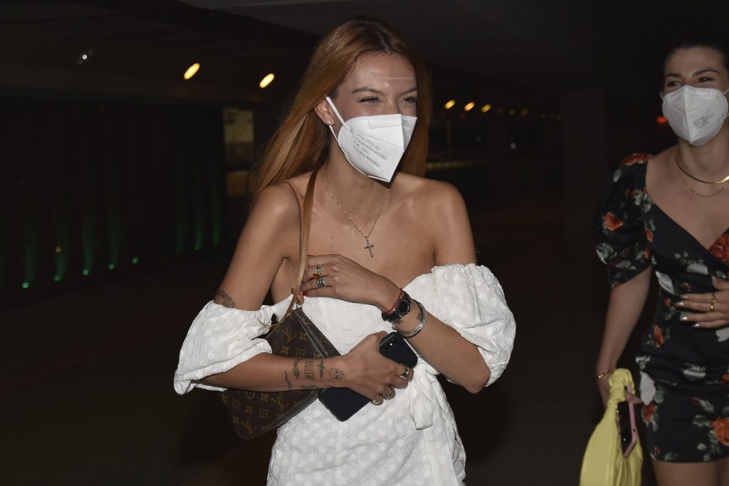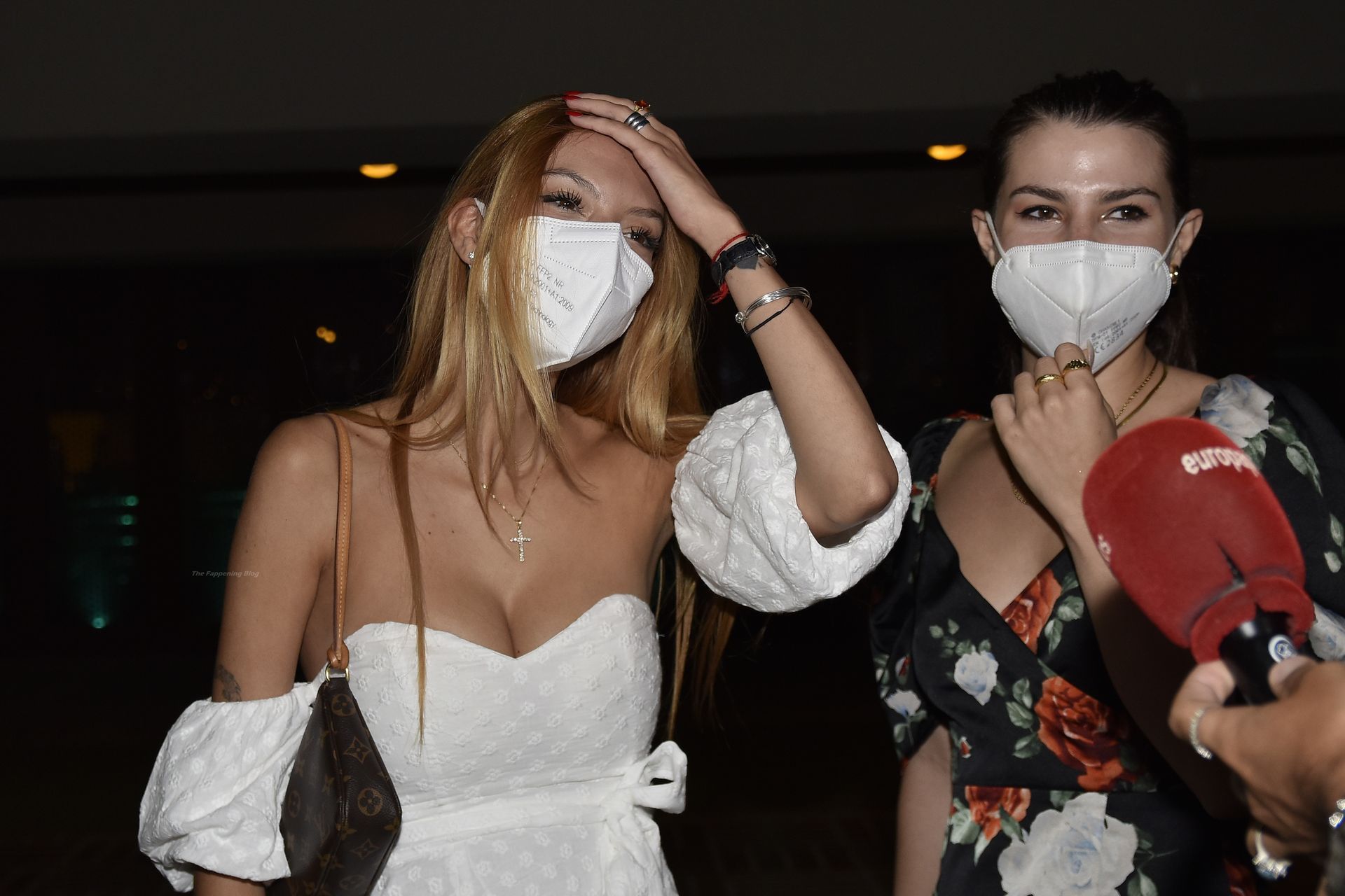 La star des réseaux sociaux Alejandra Rubio quitte un restaurant avec une amie à Madrid, Espagne, 27/08/2021.