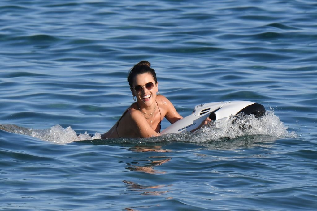 Le mannequin Alessandra Ambrosio, Jamie Mazur et Ana Beatriz Barros El Chiaty ont pris la plage à Mykonos, le 13/07/2019.