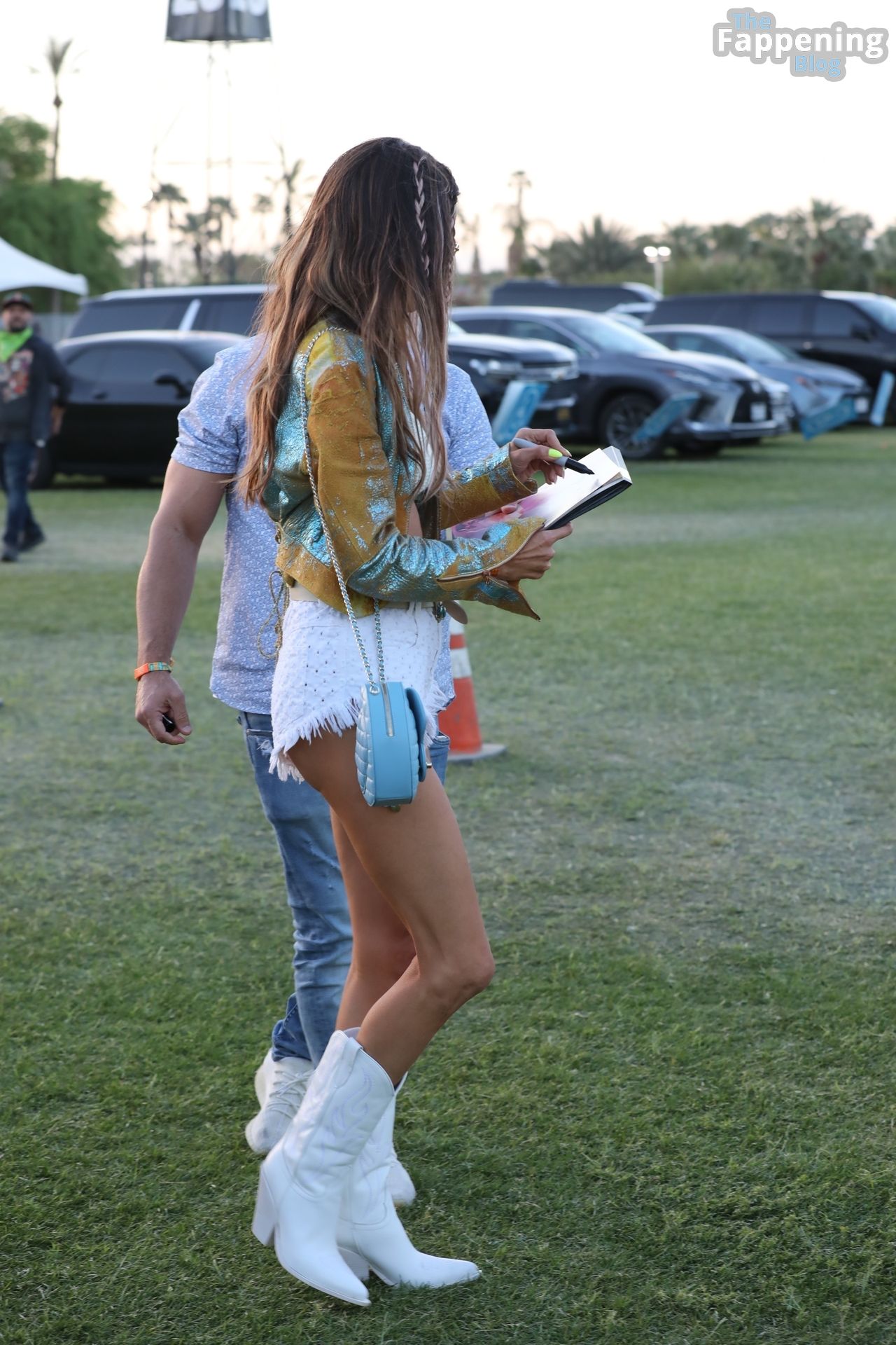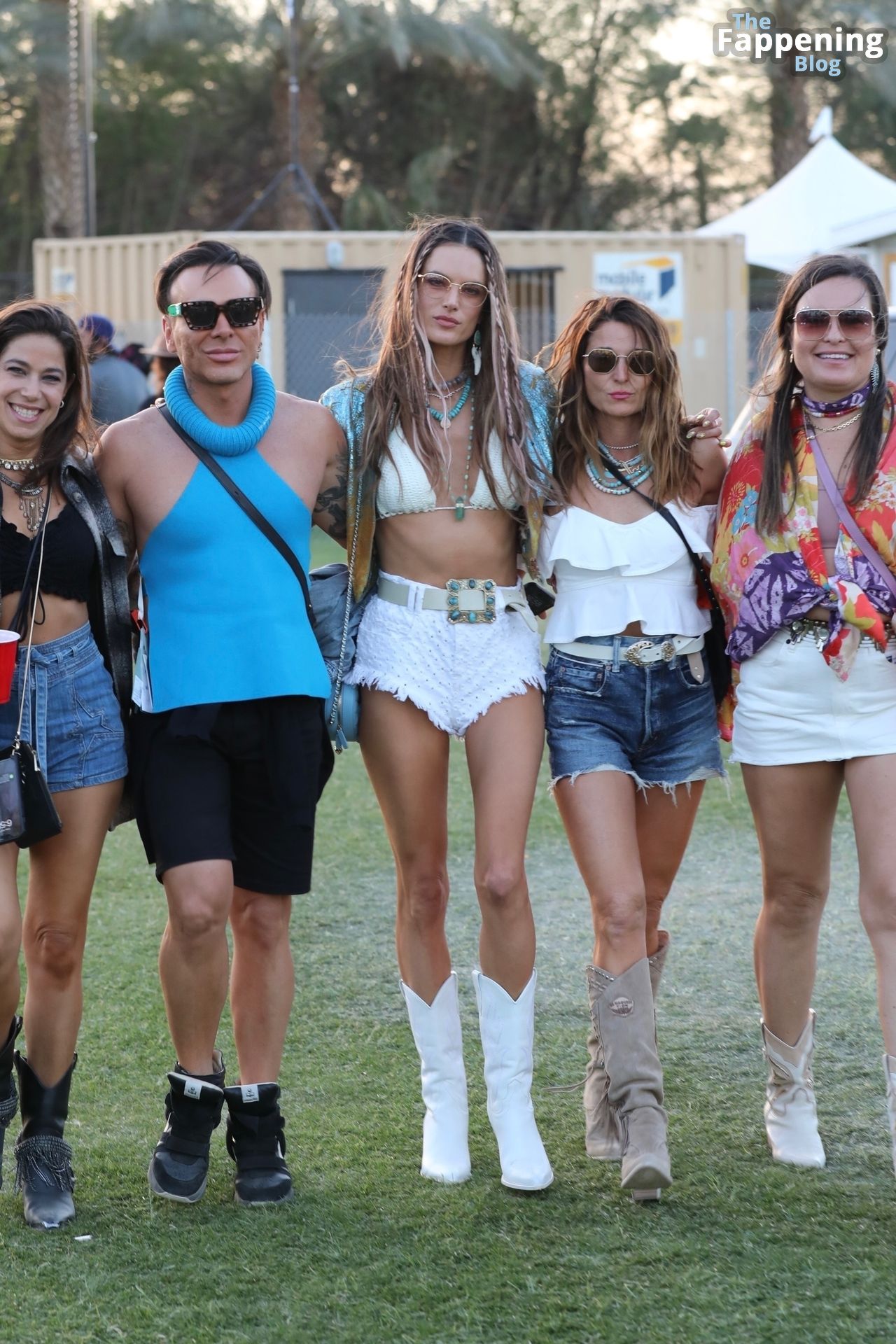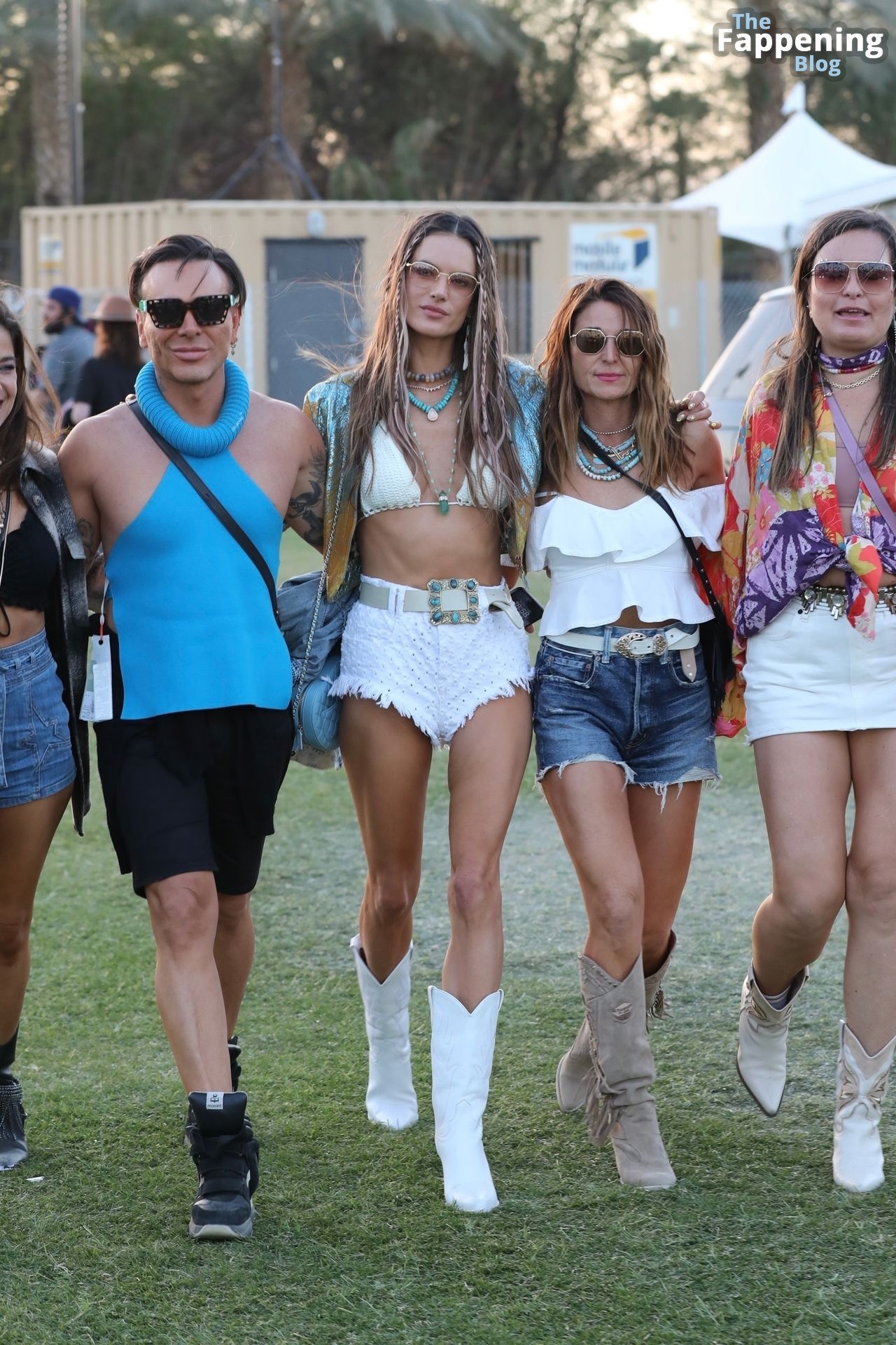 Regardez ça – Alessandra Ambrosio et son équipe arrivent au premier jour de Coachella à Indio le 14/04/2023. Elle porte un short stylé et exhibe ses seins et ses jambes sexy, wow !