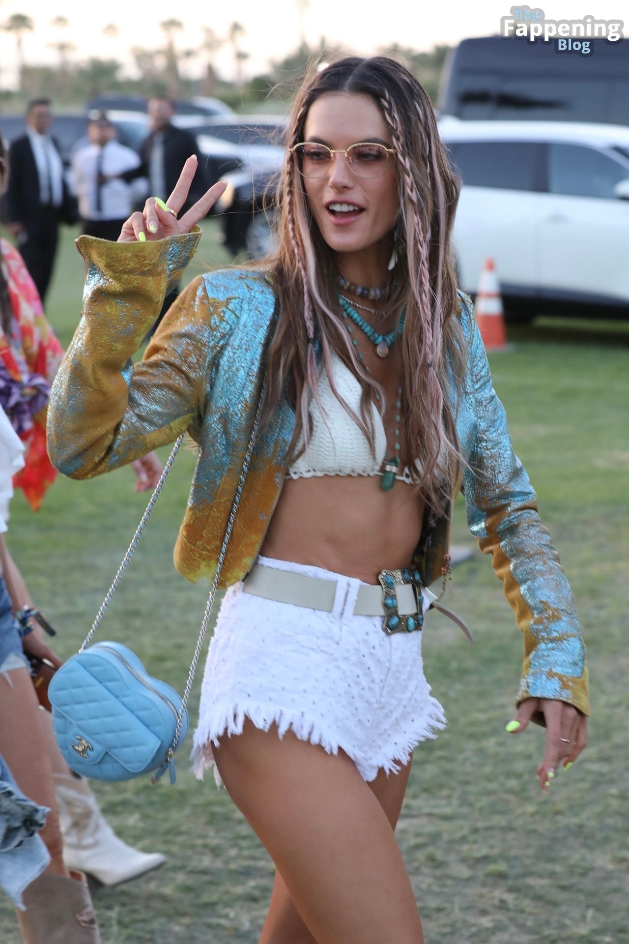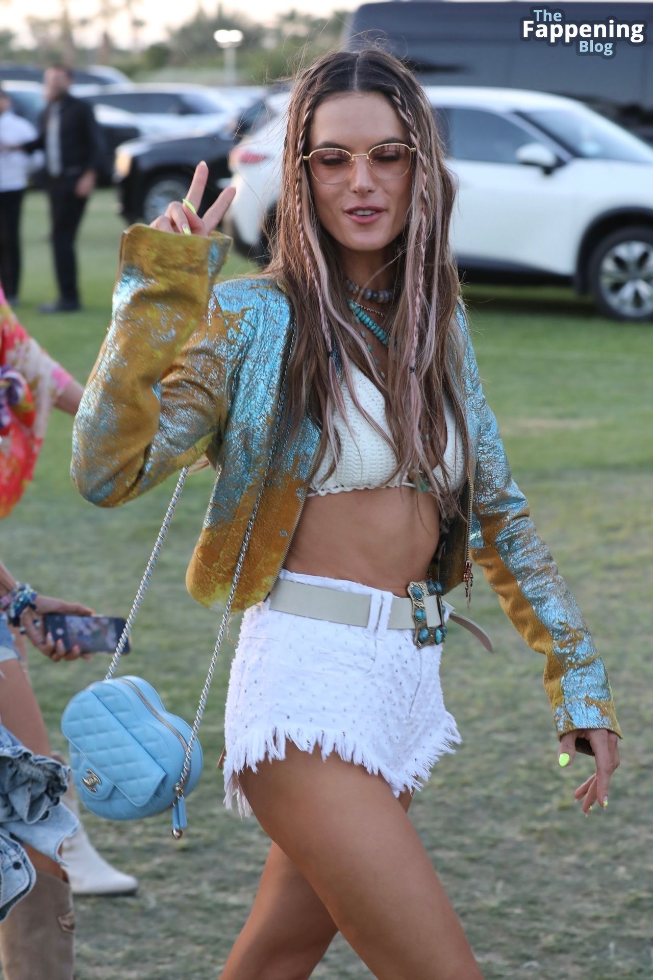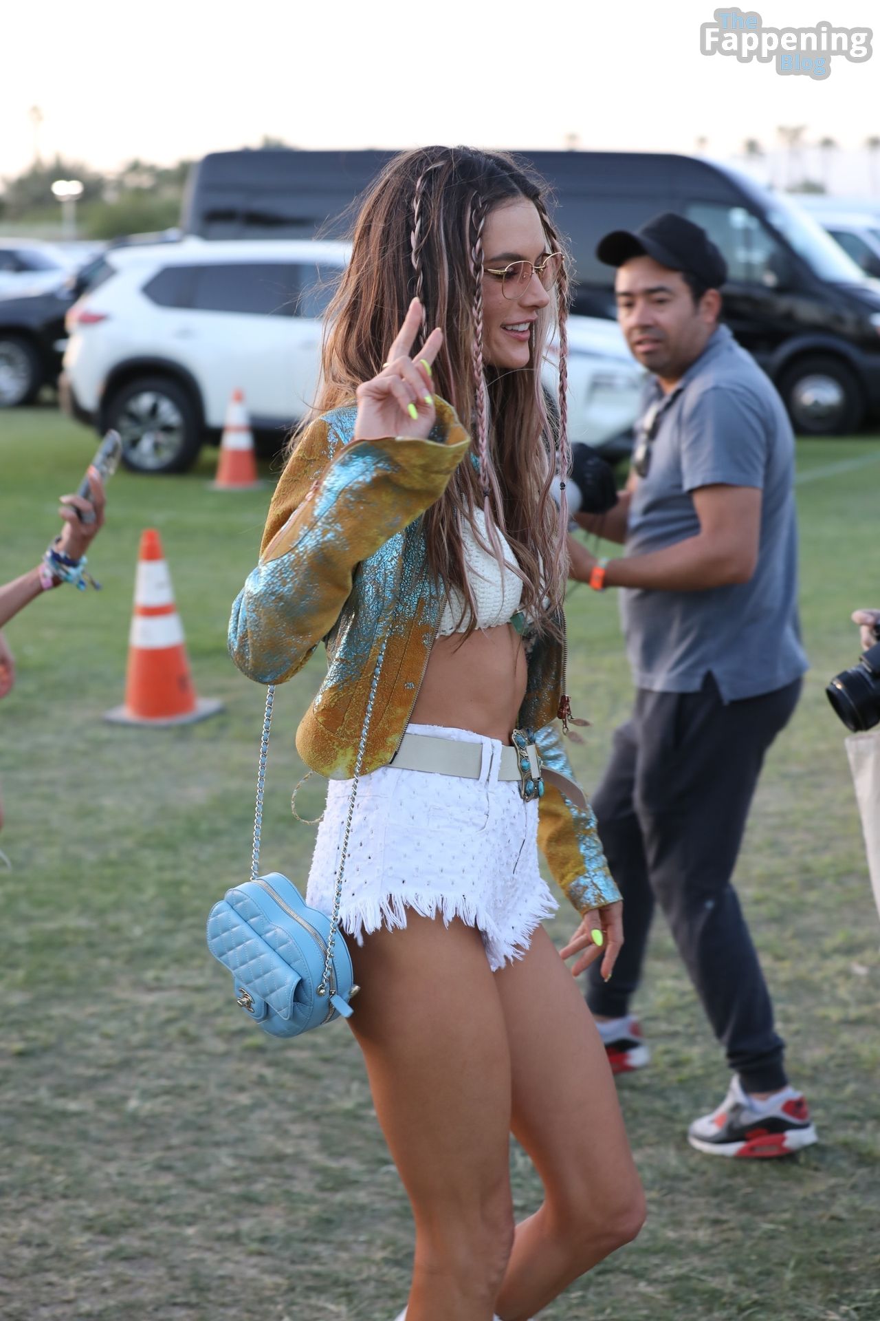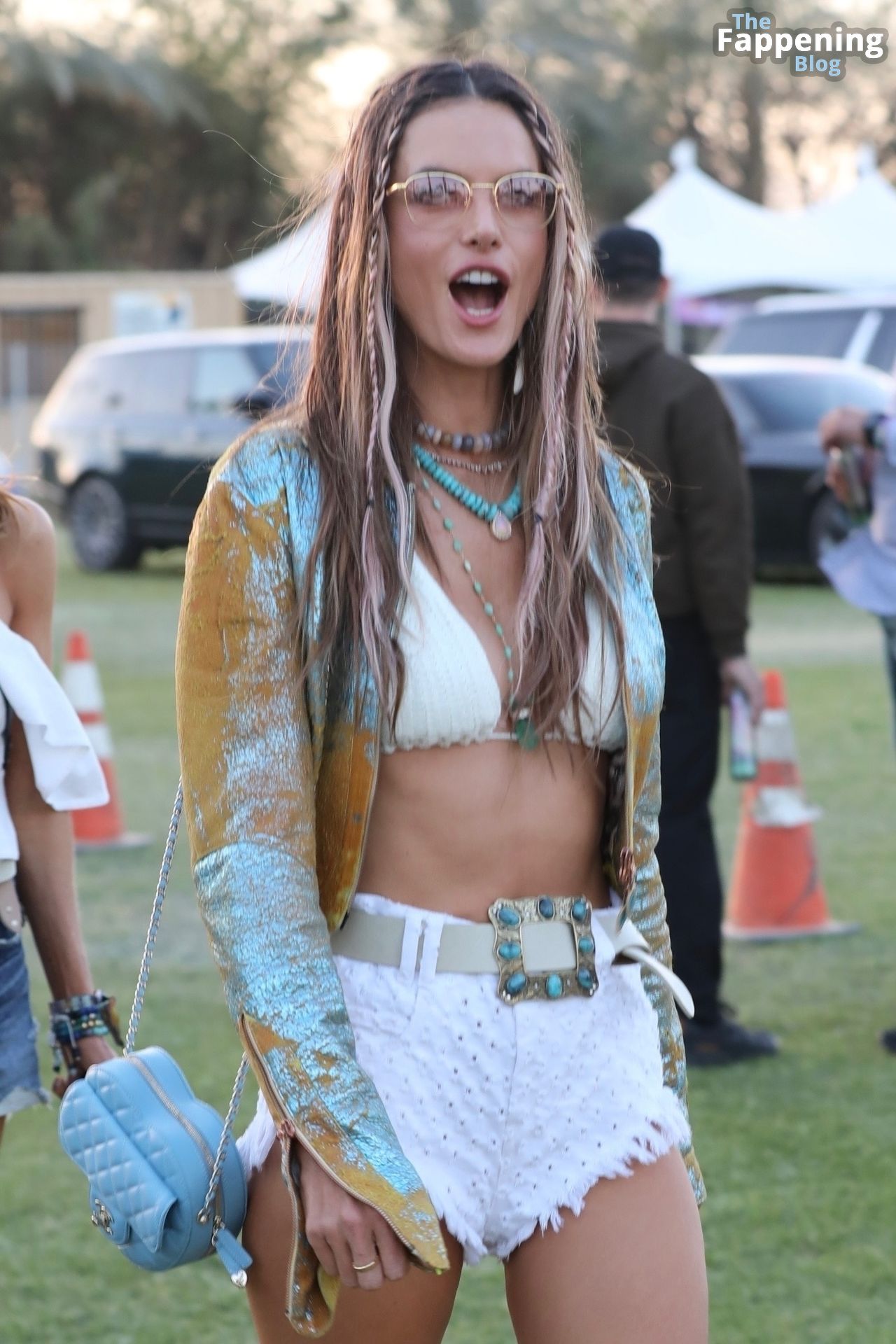 Regardez ça – Alessandra Ambrosio et son équipe arrivent au premier jour de Coachella à Indio le 14/04/2023. Elle porte un short stylé et exhibe ses seins et ses jambes sexy, wow !