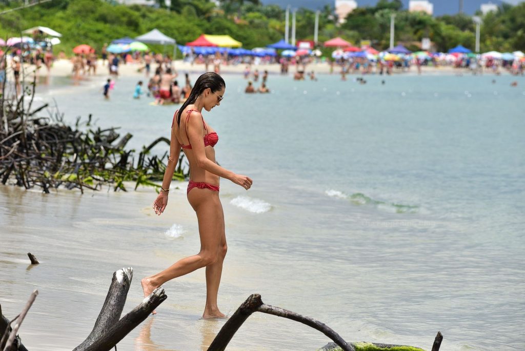 La supermodèle Alessandra Ambrosio exhibe son corps impeccable en bikini sur la plage de sa ville natale Florianopolis, au Brésil, le 17/11/2020.