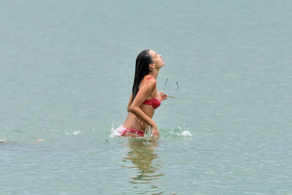 La sublime Victoria’s Secret de 39 ans s’est promenée le long des sables immaculés avec son amie Gisele et son adorable chien Tom, se rafraîchissant d’une baignade dans l’océan. Elle a attiré tous les regards dans un maillot de bain rouge très échancré lors de cette journée brûlante à la plage.