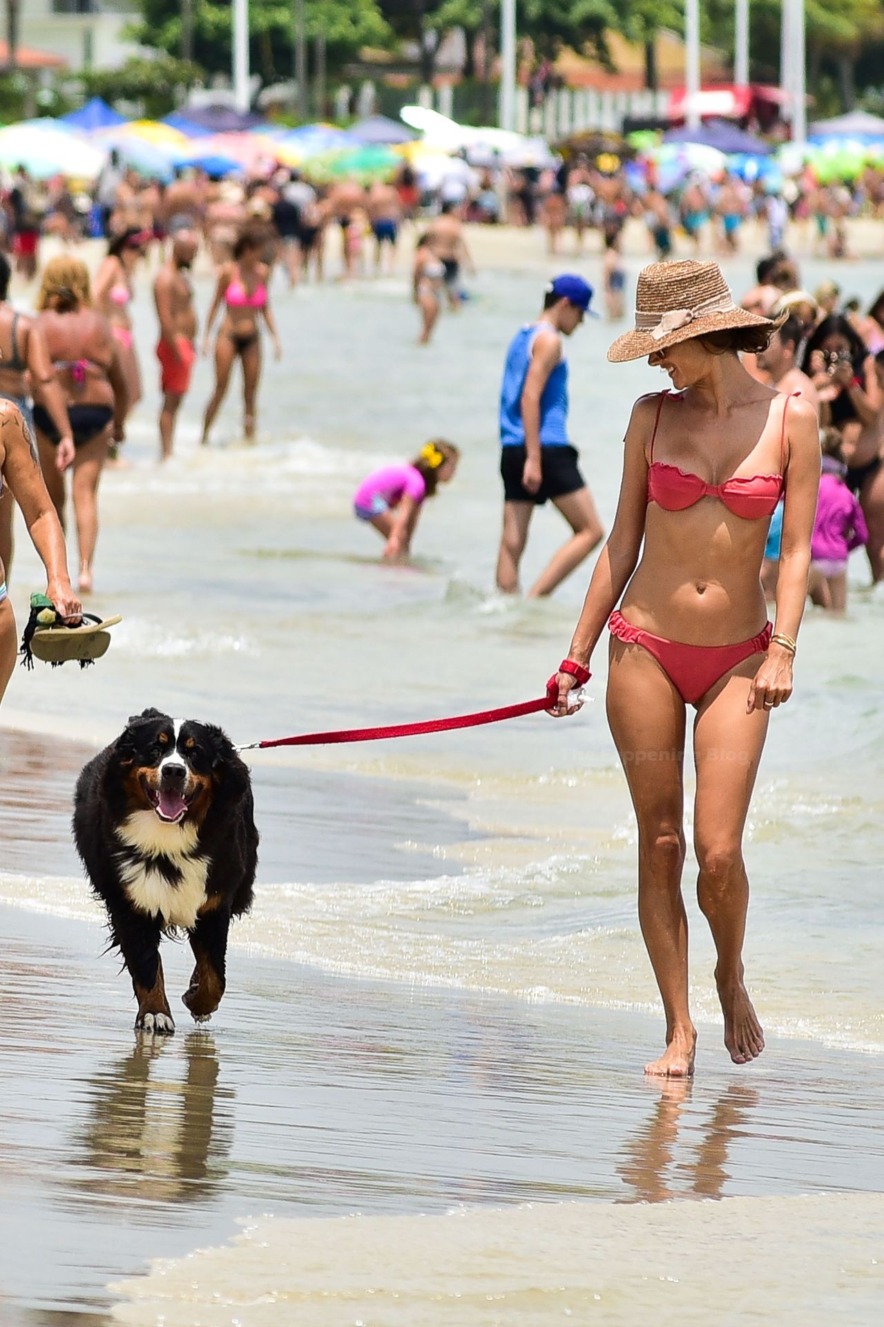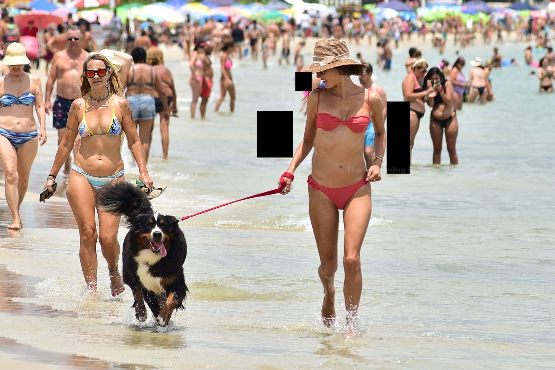La sublime Victoria’s Secret de 39 ans s’est promenée le long des sables immaculés avec son amie Gisele et son adorable chien Tom, se rafraîchissant d’une baignade dans l’océan. Elle a attiré tous les regards dans un maillot de bain rouge très échancré lors de cette journée brûlante à la plage.