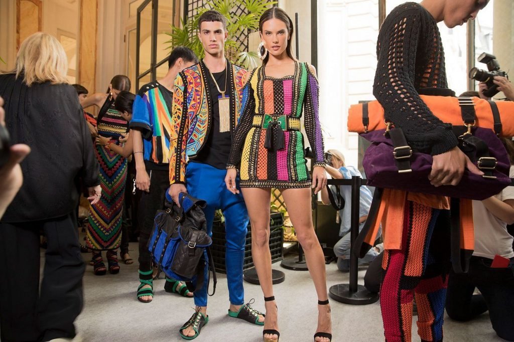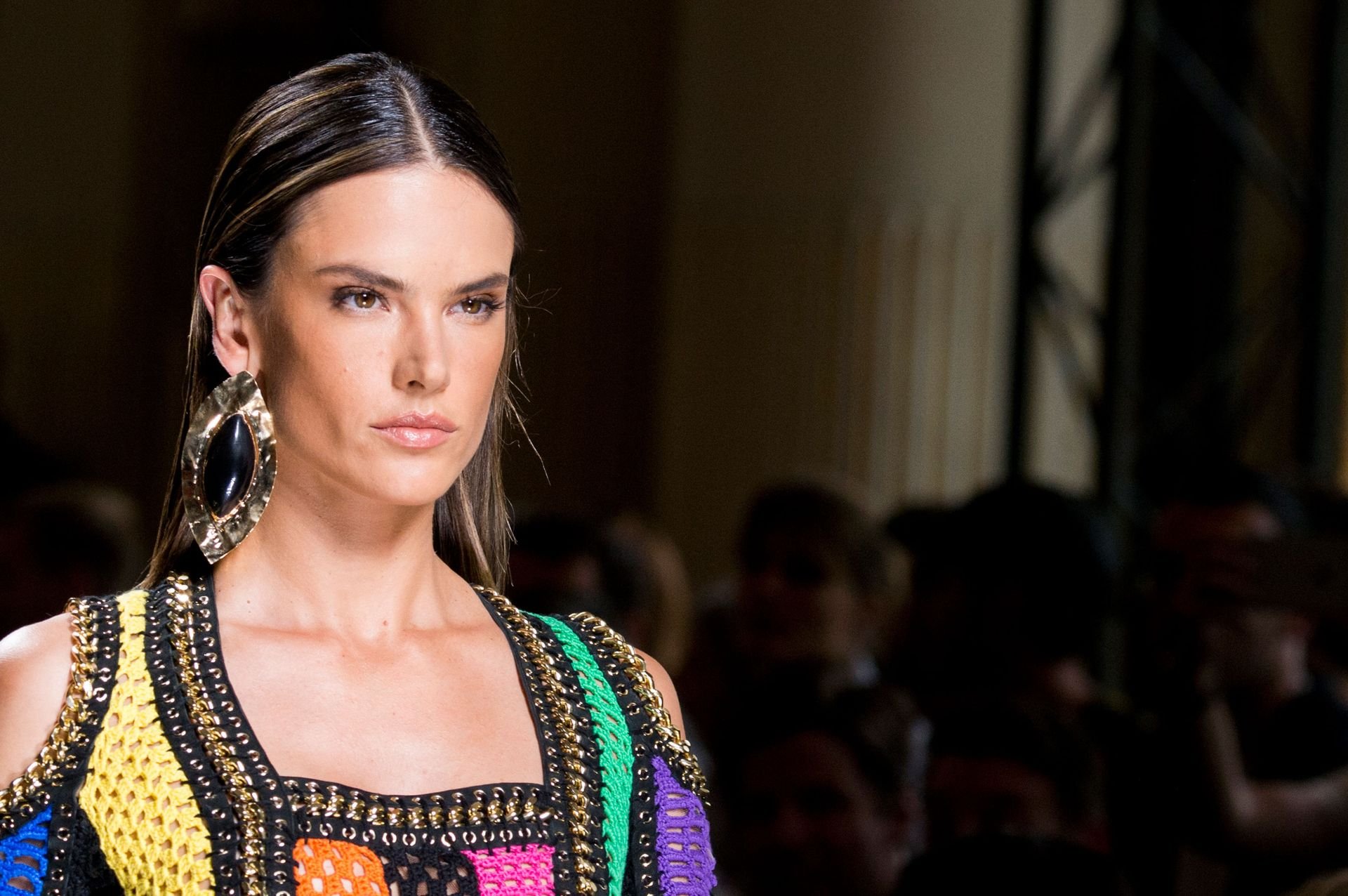 Le mannequin Alessandra Ambrosio a montré ses jambes et sa poitrine en portant une robe transparente lors du défilé Balmain Menswear Printemps/Été 2017 à Paris, France, le 25/06/2016.