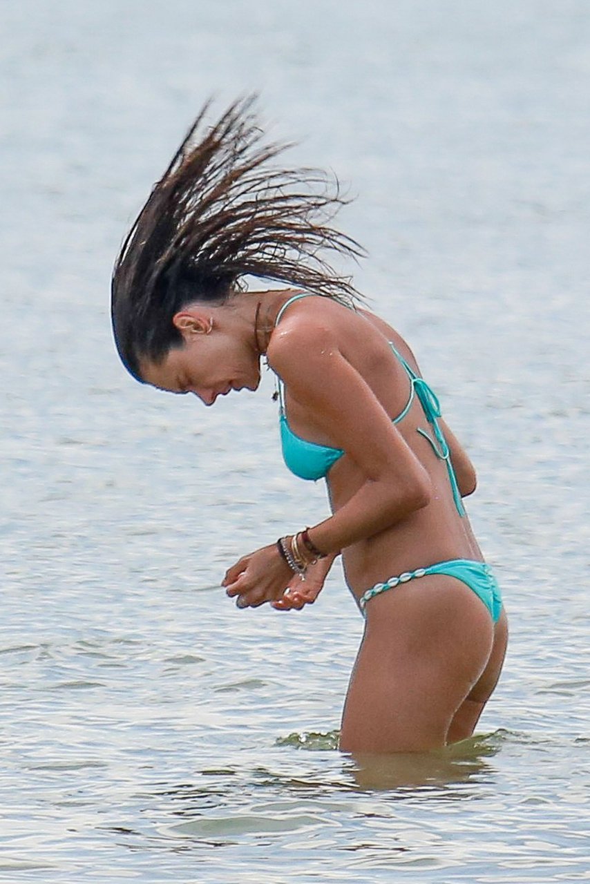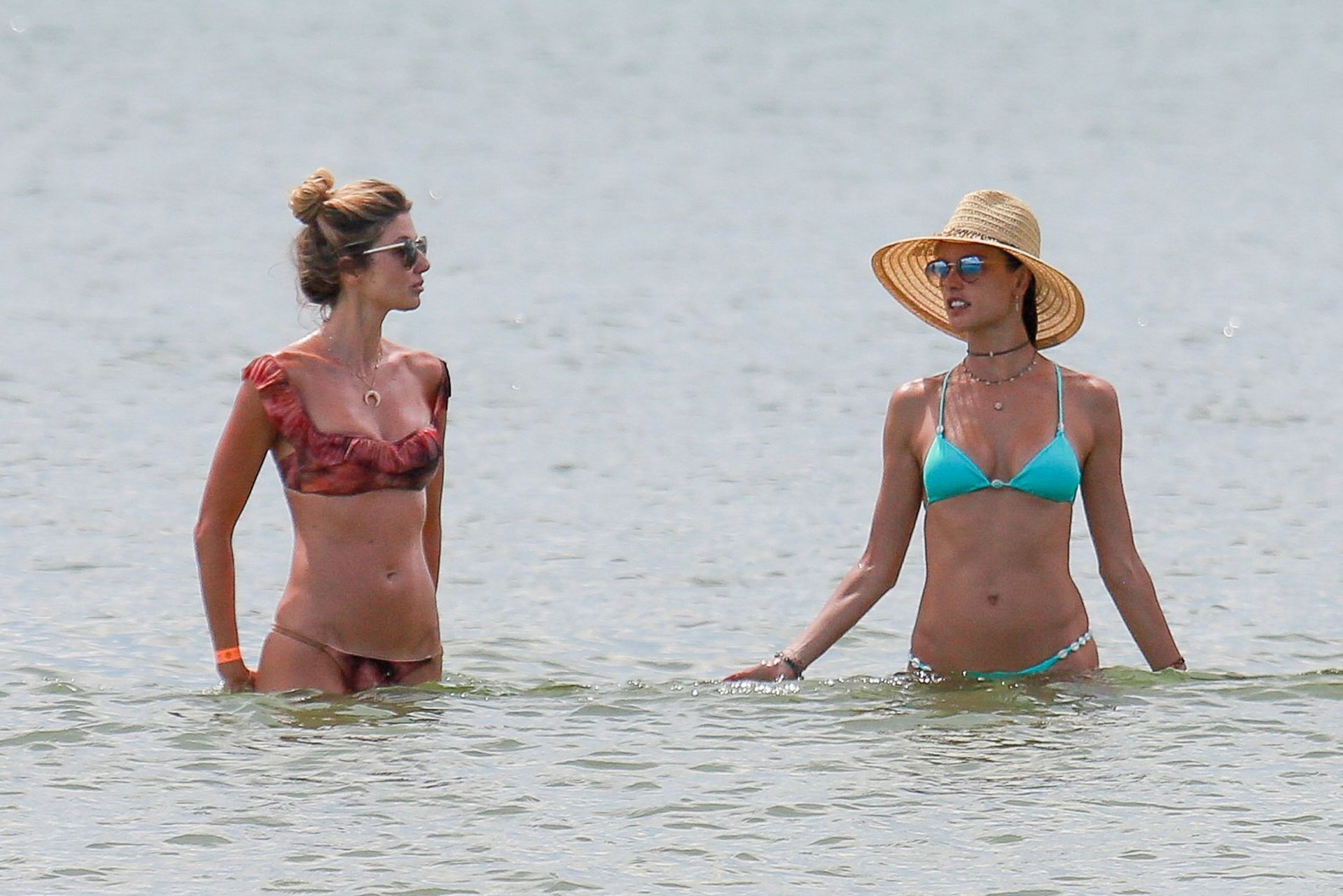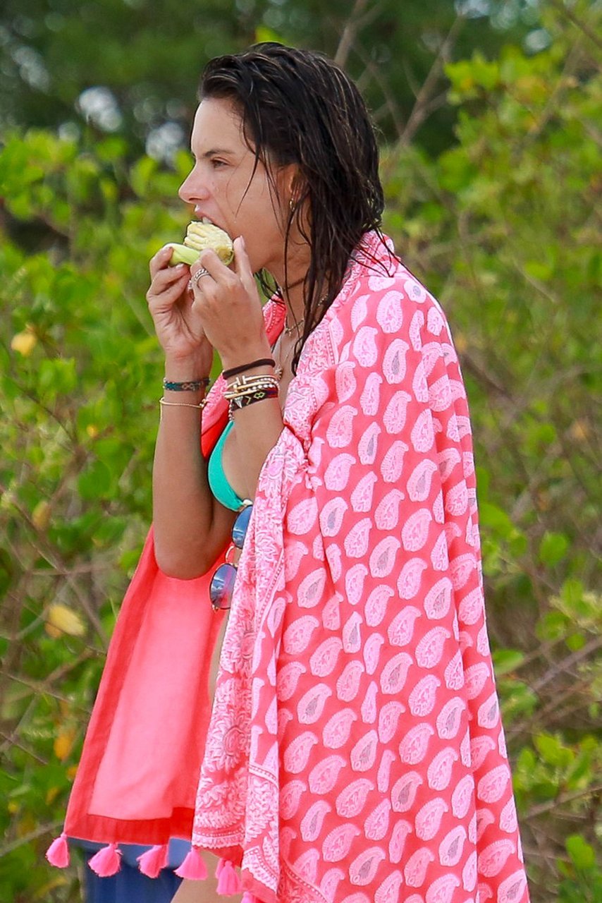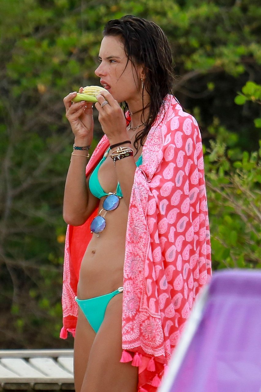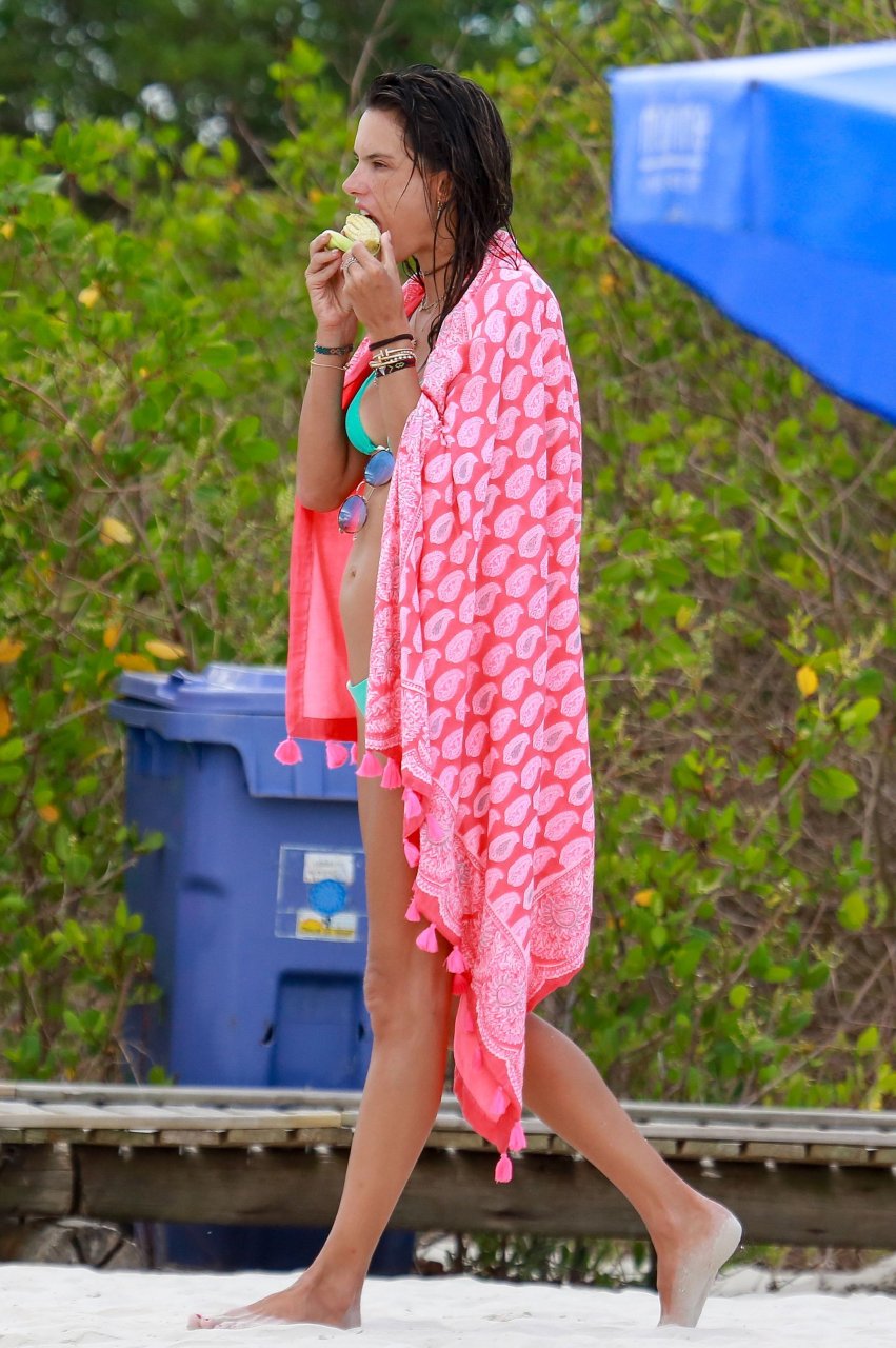 Alessandra Ambrosio porte un bikini turquoise sexy à la plage de Canasvieiras, Brésil, 01/08/2017. Alessandra Ambrosio (Alessandra Corine Ambrósio) est un mannequin brésilien, actrice (Daddy’s Home (2015)). Âge : 35 ans, 11 avril 1981