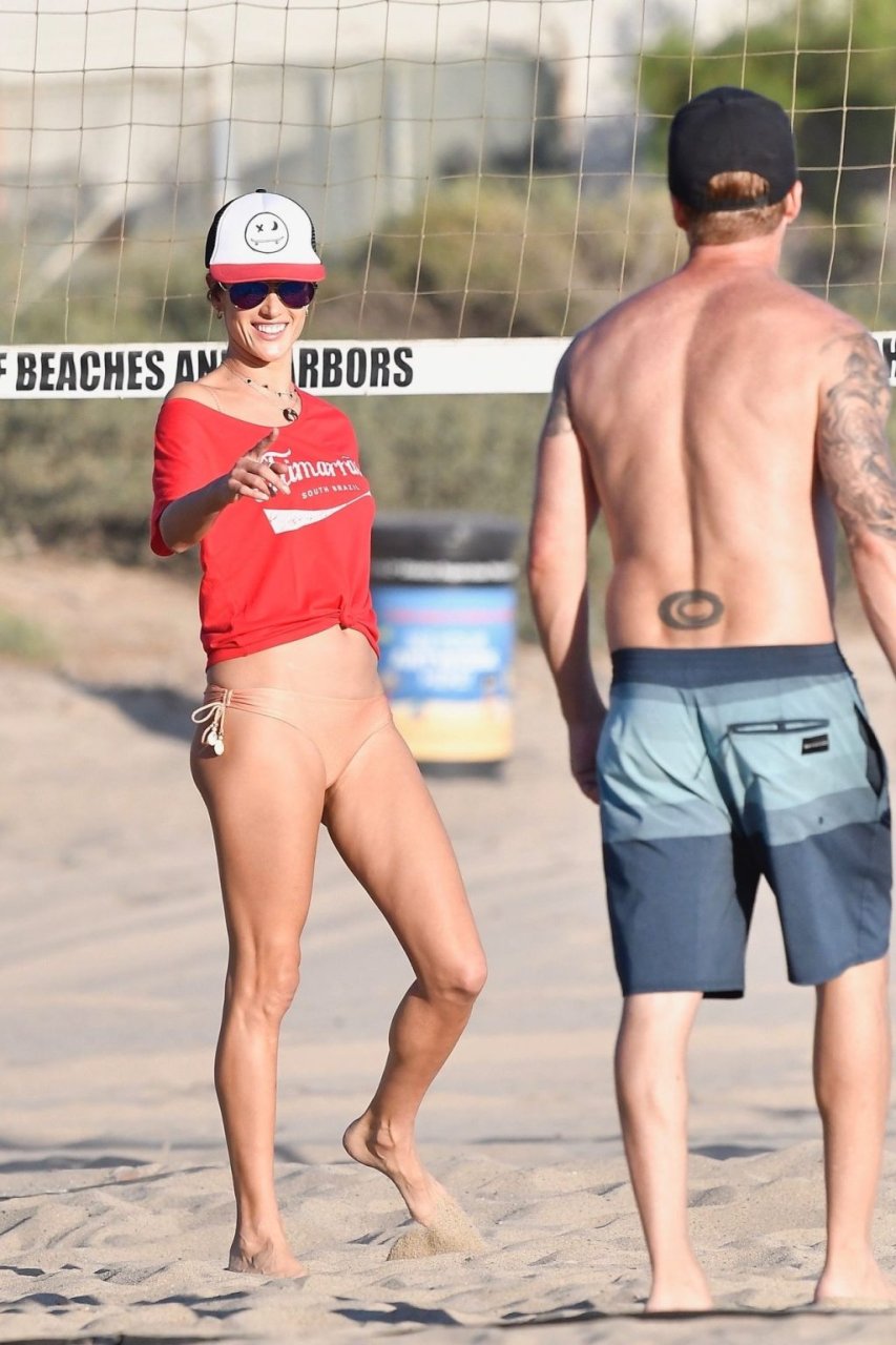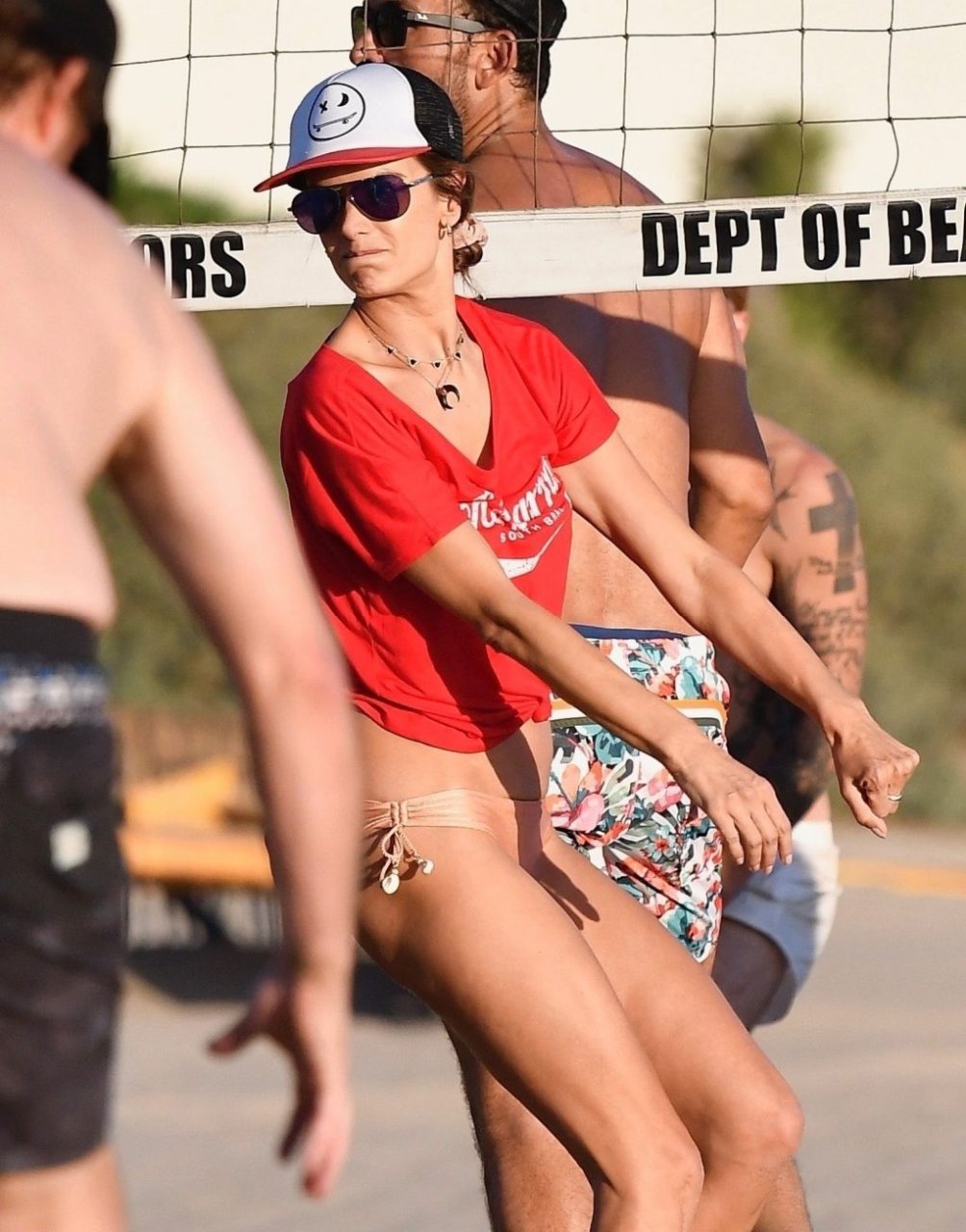 La bombe brésilienne Alessandra Ambrosio profite d’une journée amusante à la plage de Santa Monica en jouant au volley-ball avec ses amis, 26/10/2019.