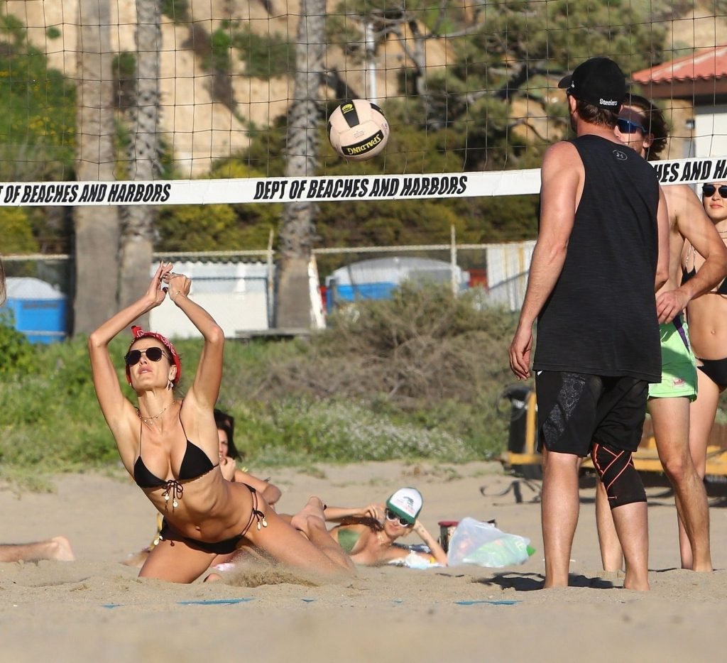 Alessandra Ambrosio est vue mettant en valeur ses courbes incroyables dans un bikini noir audacieux lors d’un après-midi passé à la plage à jouer au volley-ball à Los Angeles, le 18/03/2019.