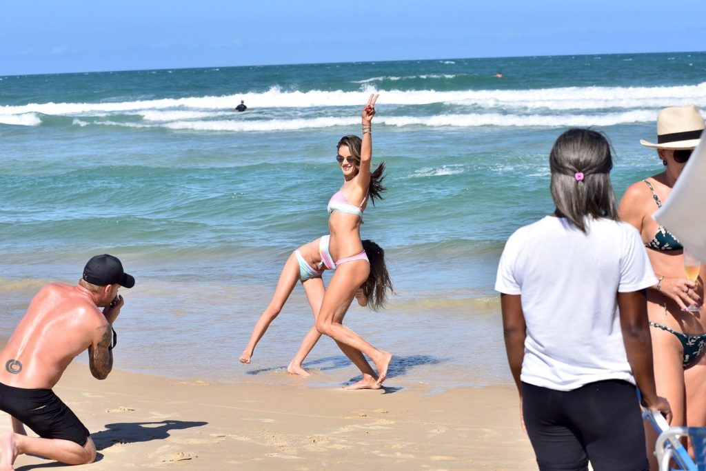 La bombe brésilienne Alessandra Ambrosio et son petit ami Nicolo Oddi attirent les regards sur la plage de Florianopolis, au Brésil, le 30/12/2019. Le mannequin aux longues jambes a été vu en train de s’amuser avec des amis et la famille. Alessandra affiche également sa silhouette dans un bikini deux pièces alors qu’elle joue au beach tennis.