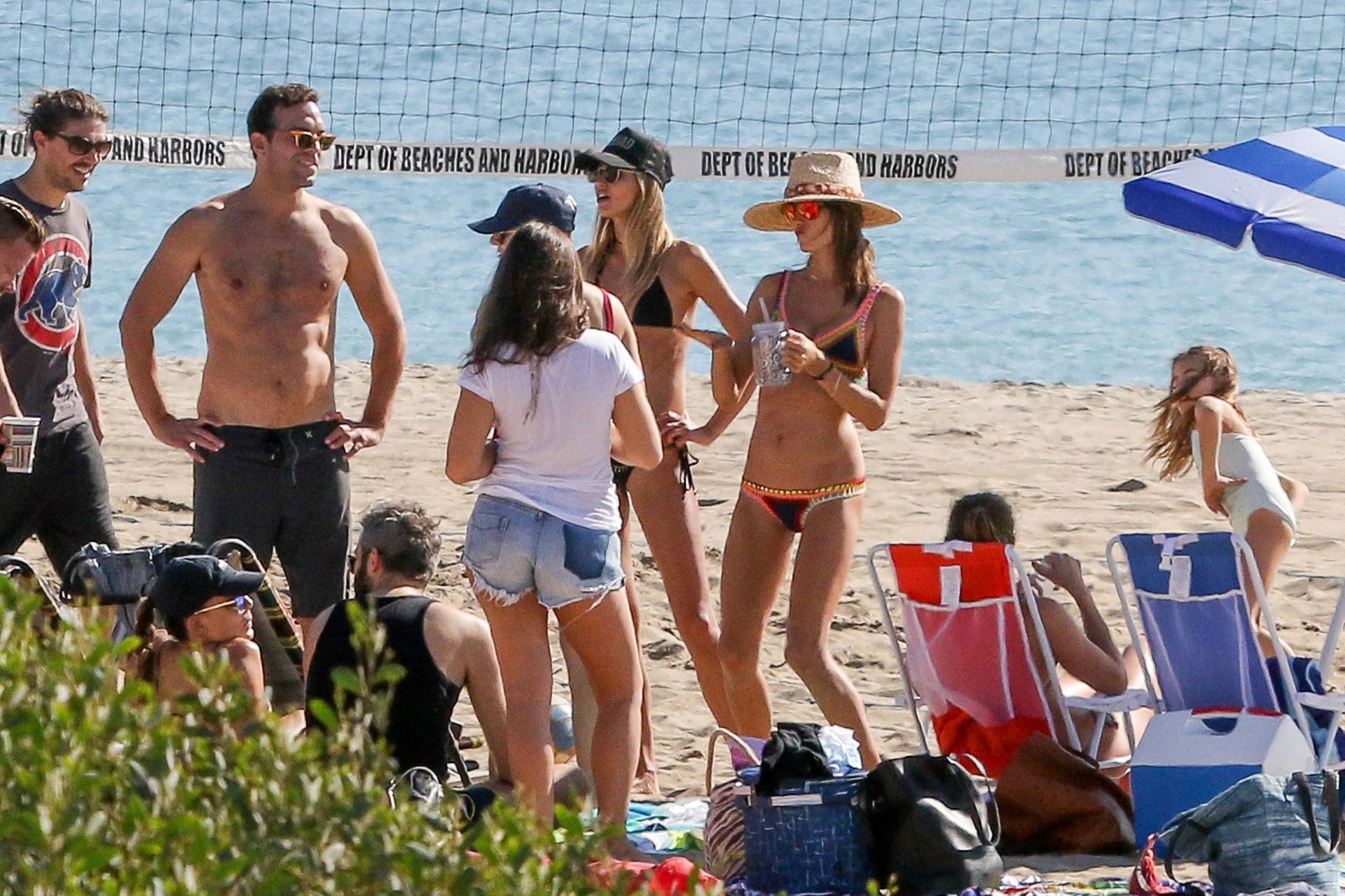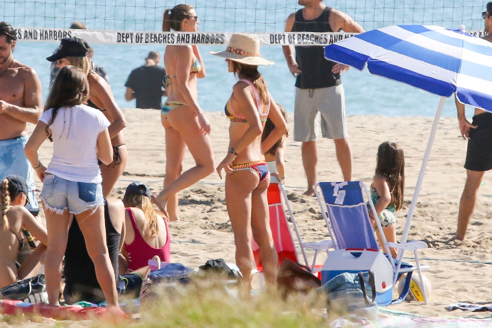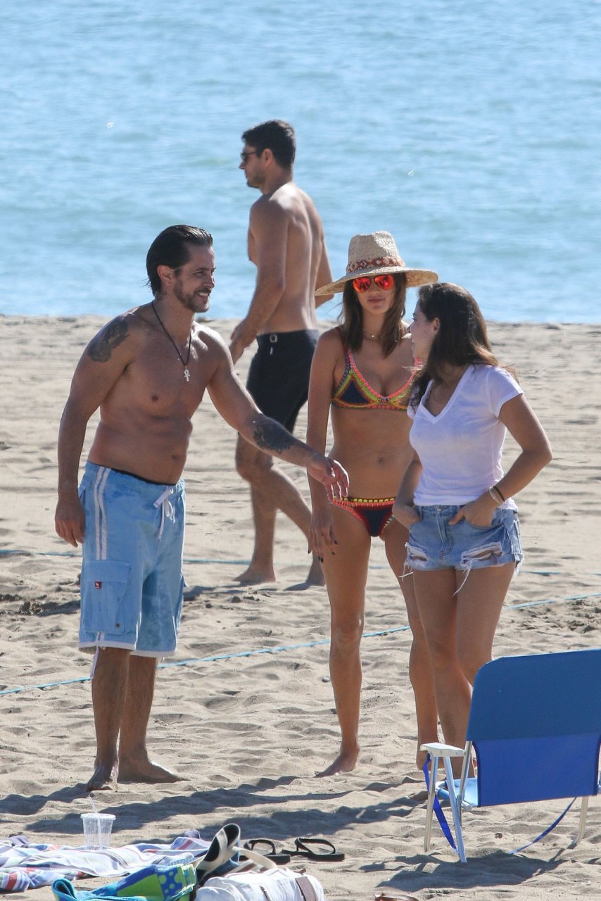 Alessandra Ambrosio porte un tout petit bikini sur une plage en Californie, 23/10/2016. Maman sexy ! Alessandra Ambrosio est un mannequin brésilien. Âge : 35 ans (11 avril 1981). Taille : 177 cm.