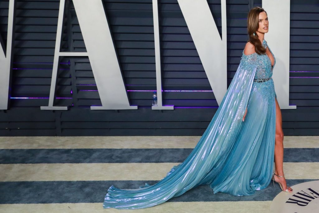 La supermodèle Alessandra Ambrosio exhibe son décolleté et ses jambes sexy lors de la Vanity Fair Oscar Party 2019 à Beverly Hills, le 24/02/2019.