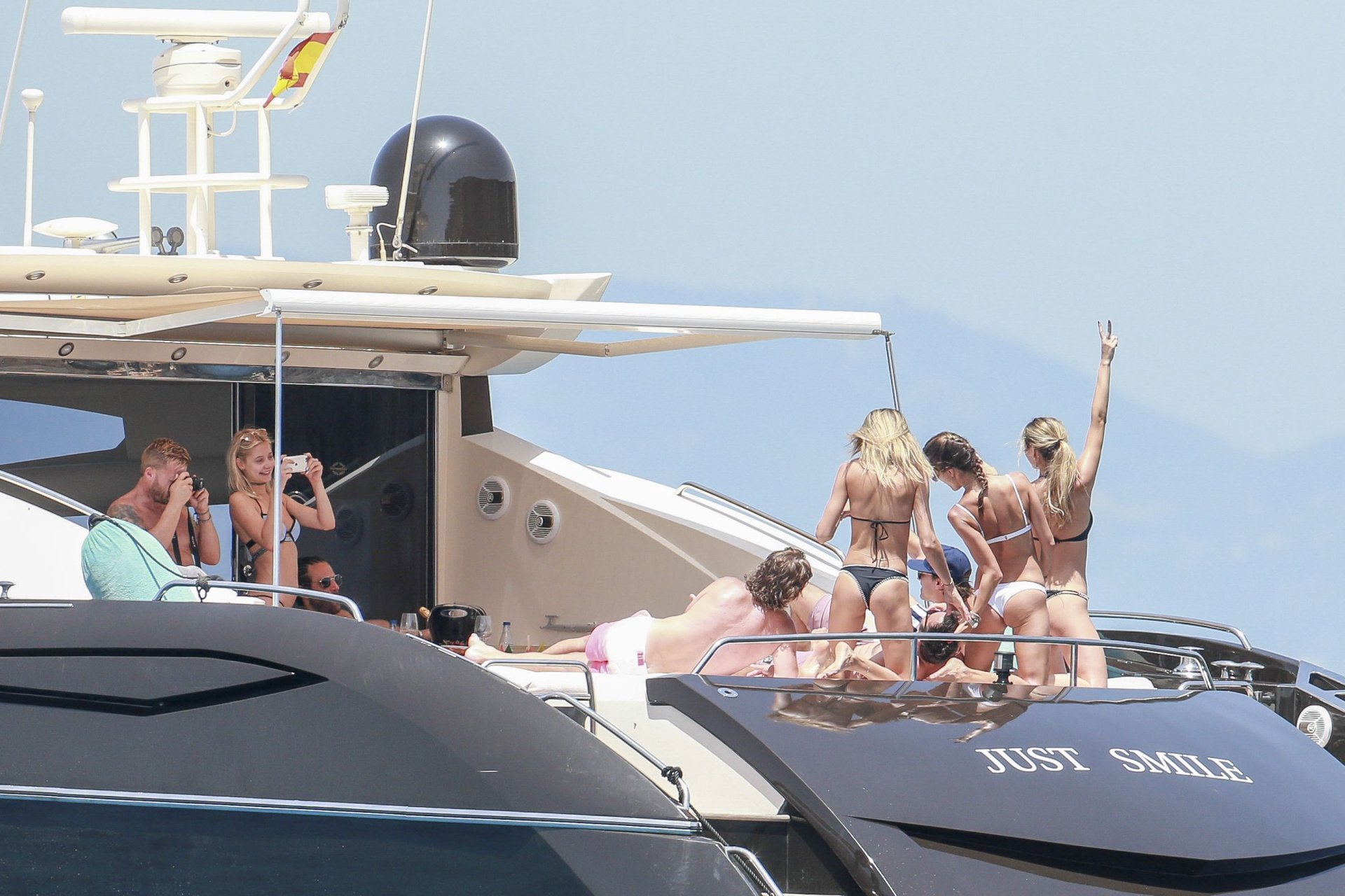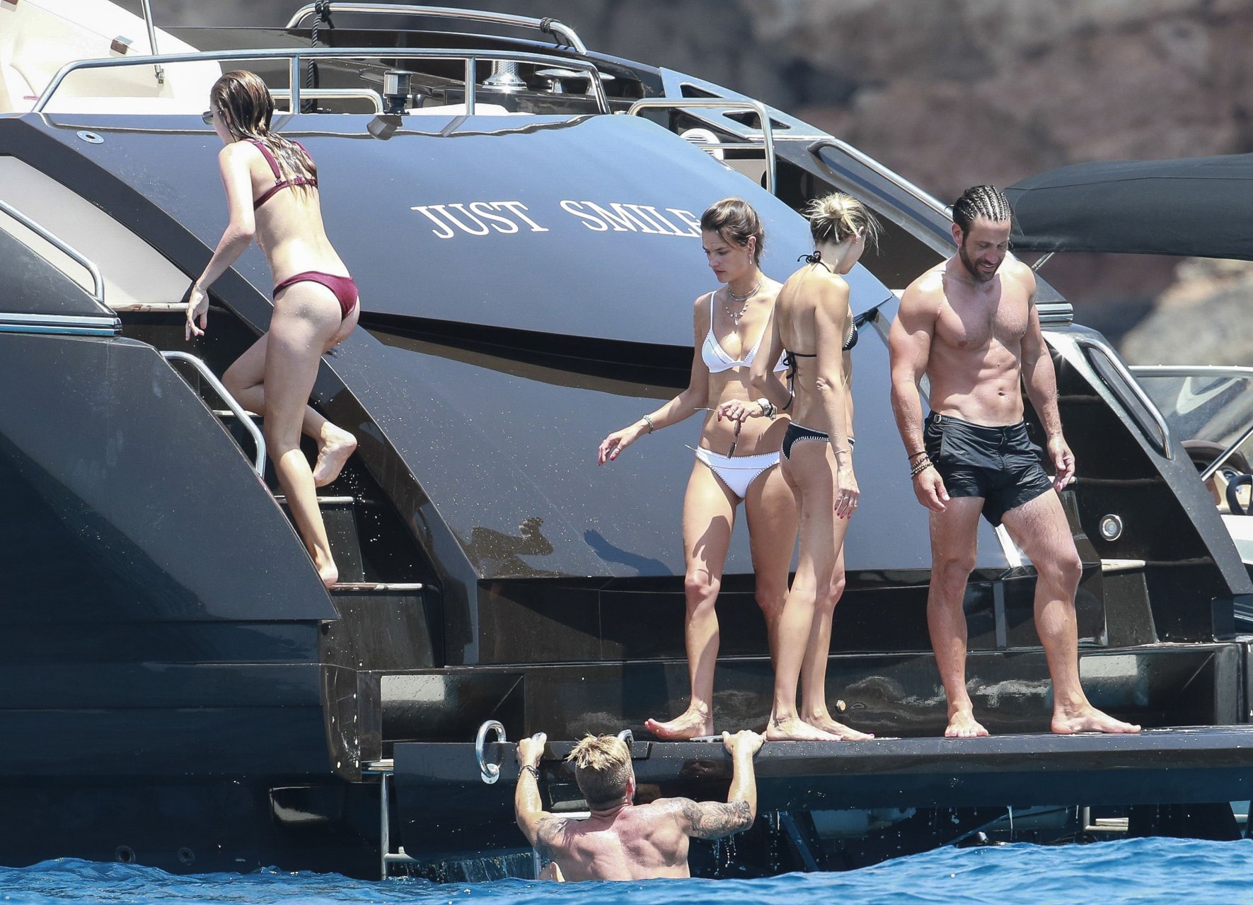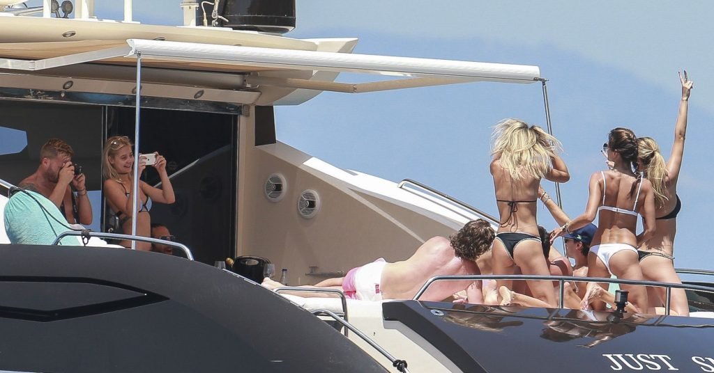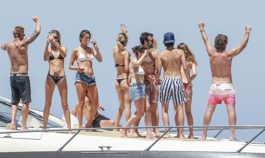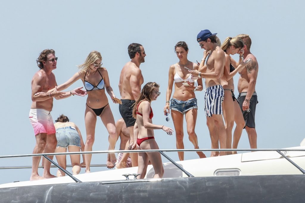 La supermodèle Alessandra Ambrosio avec son fiancé Jamie Mazur, Talita Correa, Ludi Delfino et d’autres amis ont profité d’un beau bateau pendant leurs vacances à Ibiza, 07/11/2017.