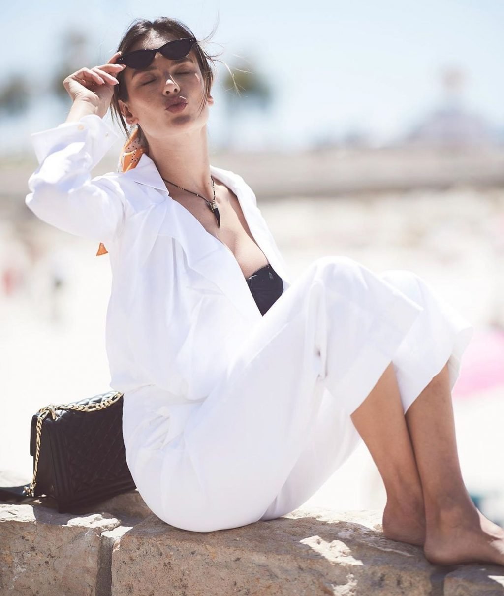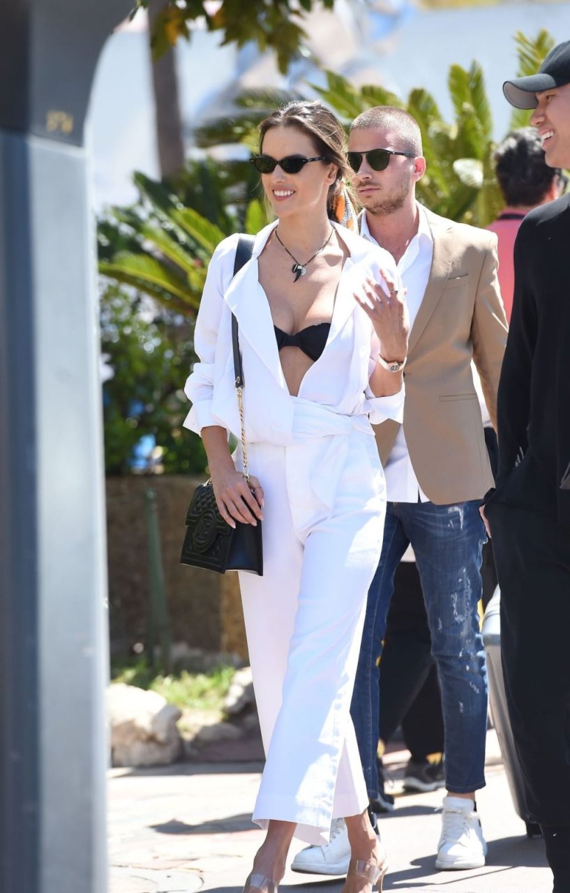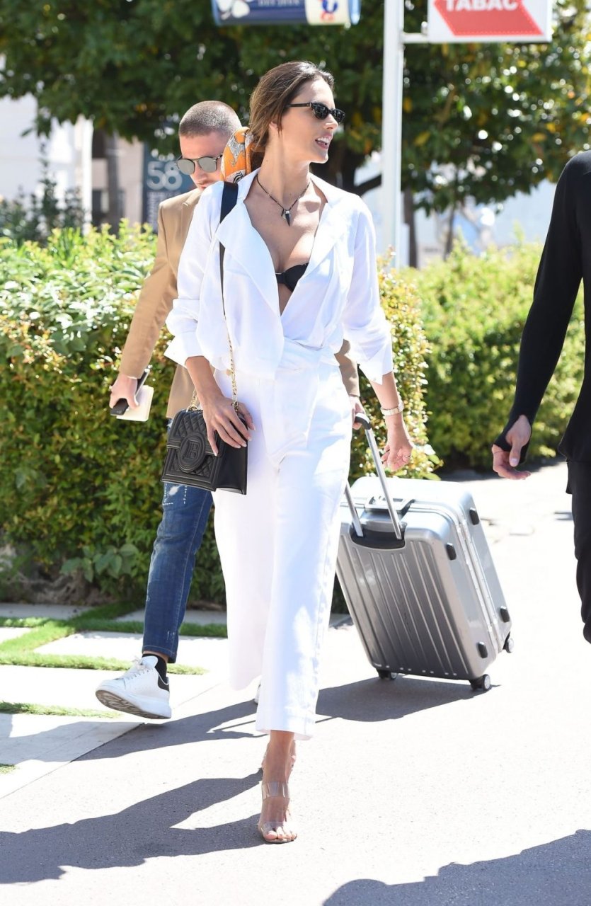 Le mannequin brésilien Alessandra Ambrosio affiche un décolleté sexy en quittant l’Hôtel Martinez lors du Festival de Cannes 2019, le 14/05/2019.