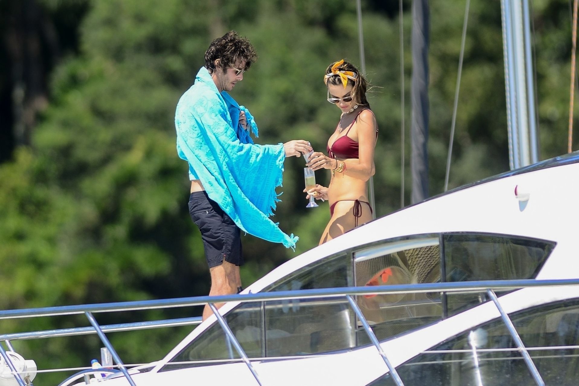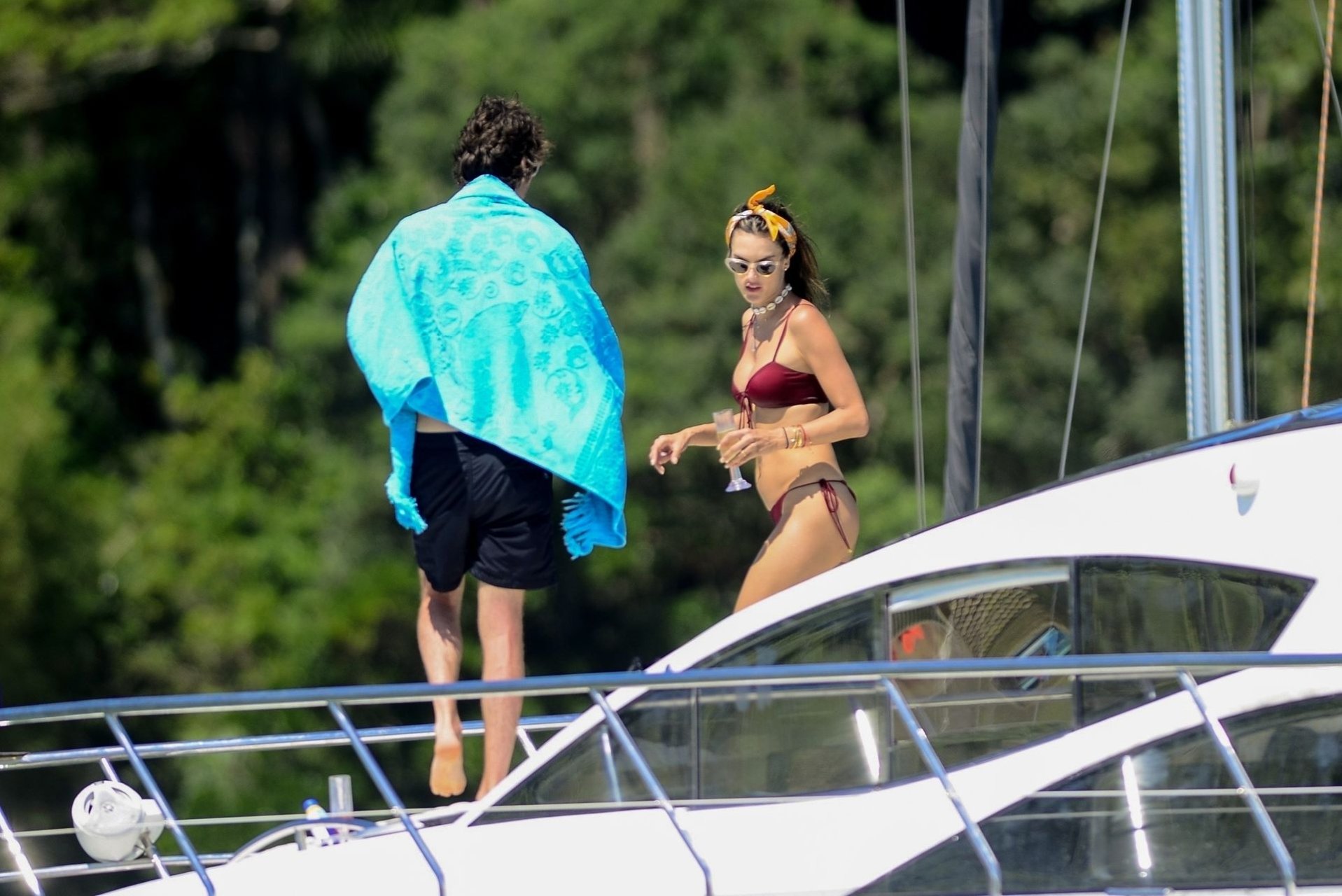 La supermodèle Alessandra Ambrosio et Nicolo Oddi profitent d’une excursion en yacht avec les enfants d’Alessandra à Florianopolis, 29/12/2018.