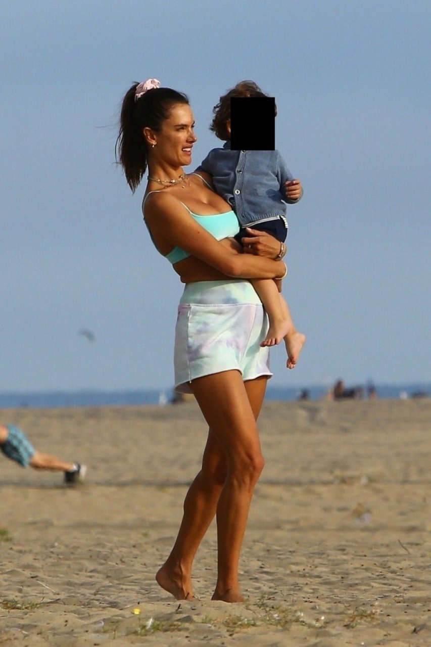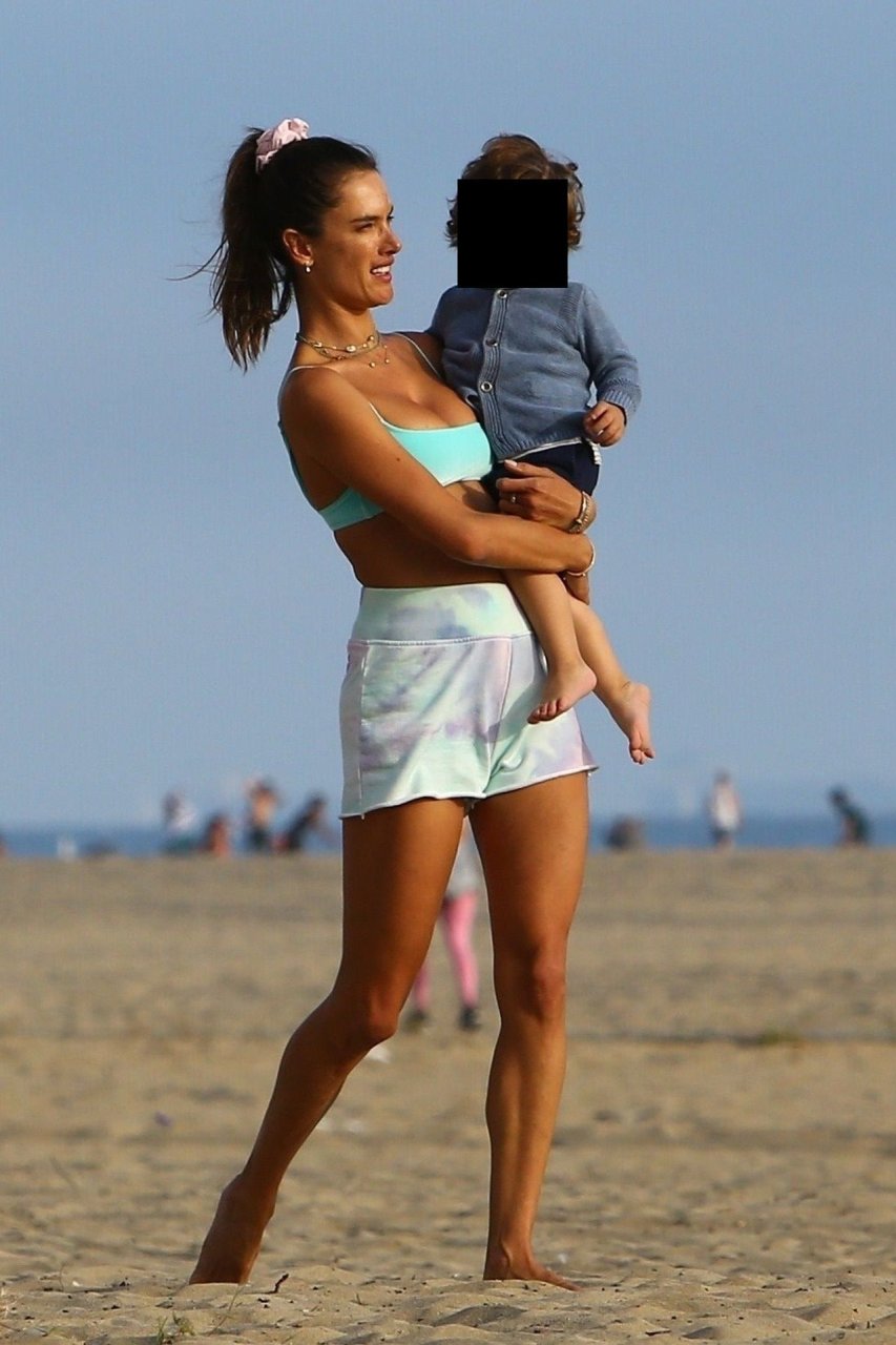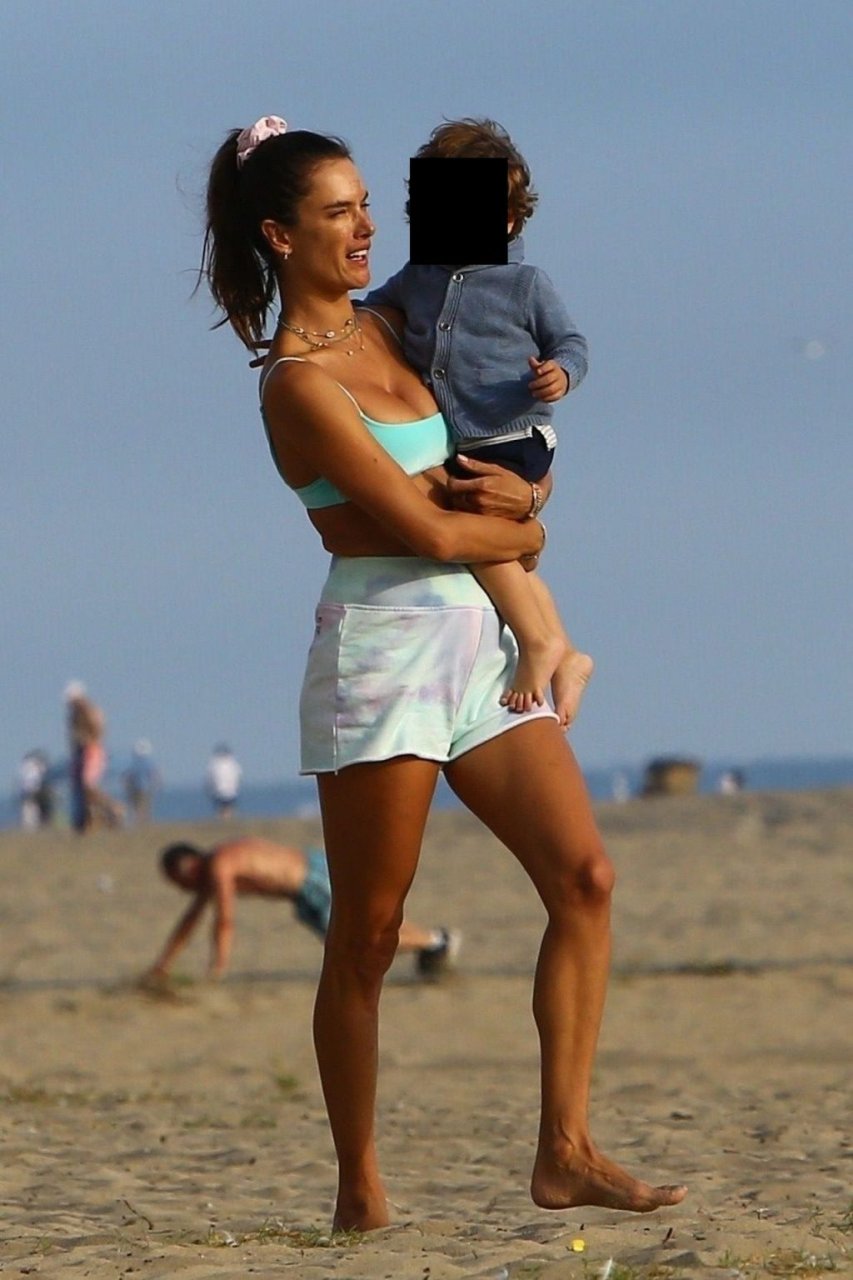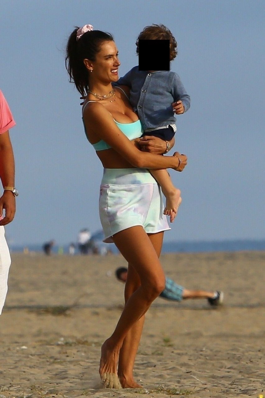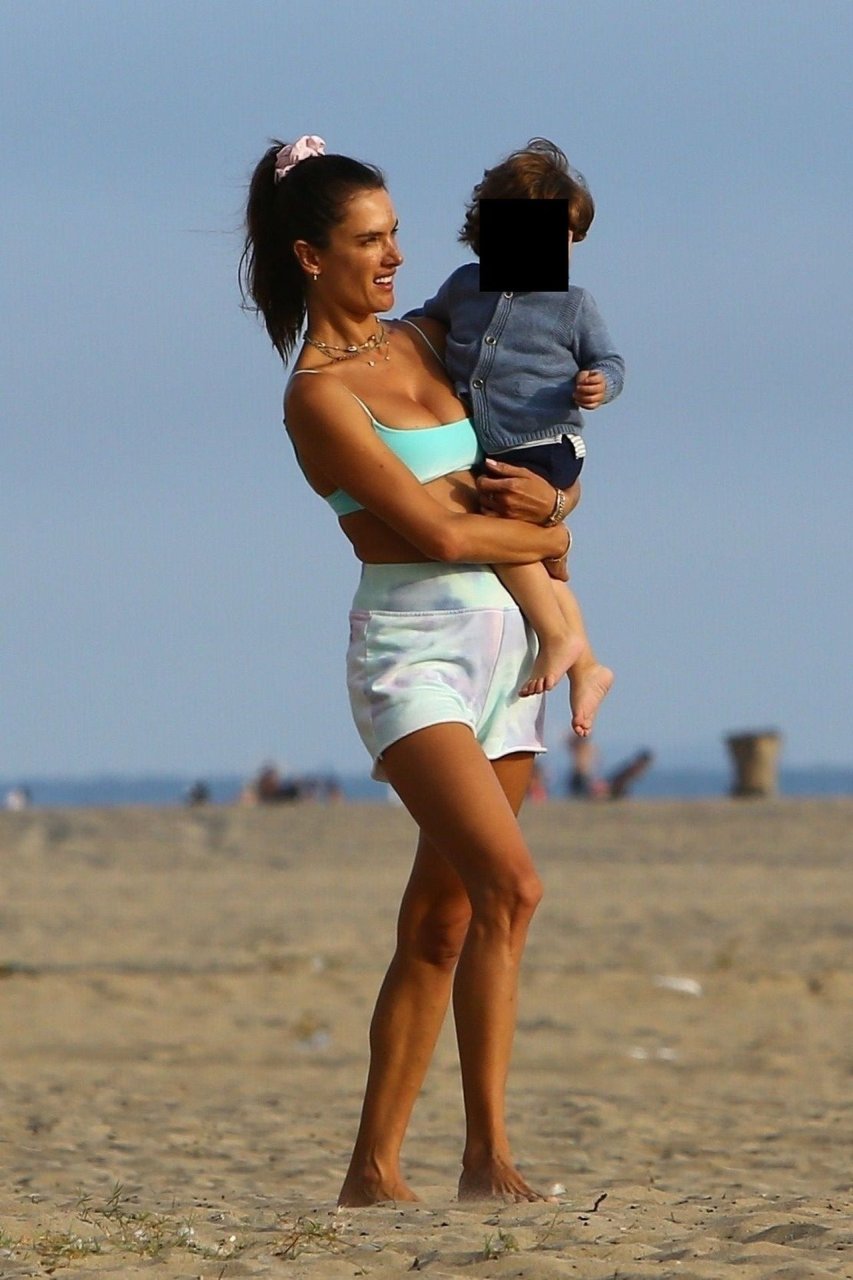 Le mannequin Alessandra Ambrosio a été aperçue en train de s’amuser énormément avec Ana Beatriz Barros et son fils à la plage de Santa Monica, le 08/05/2019.