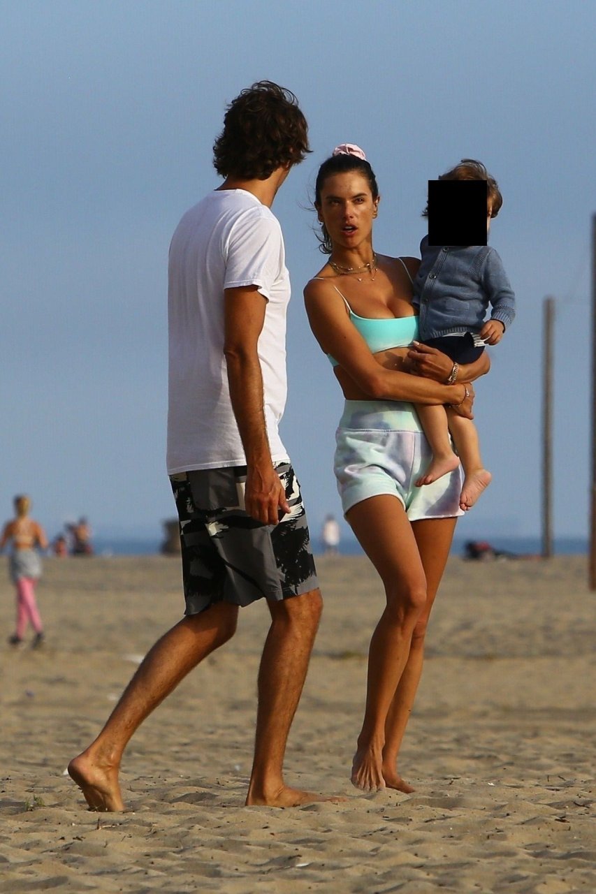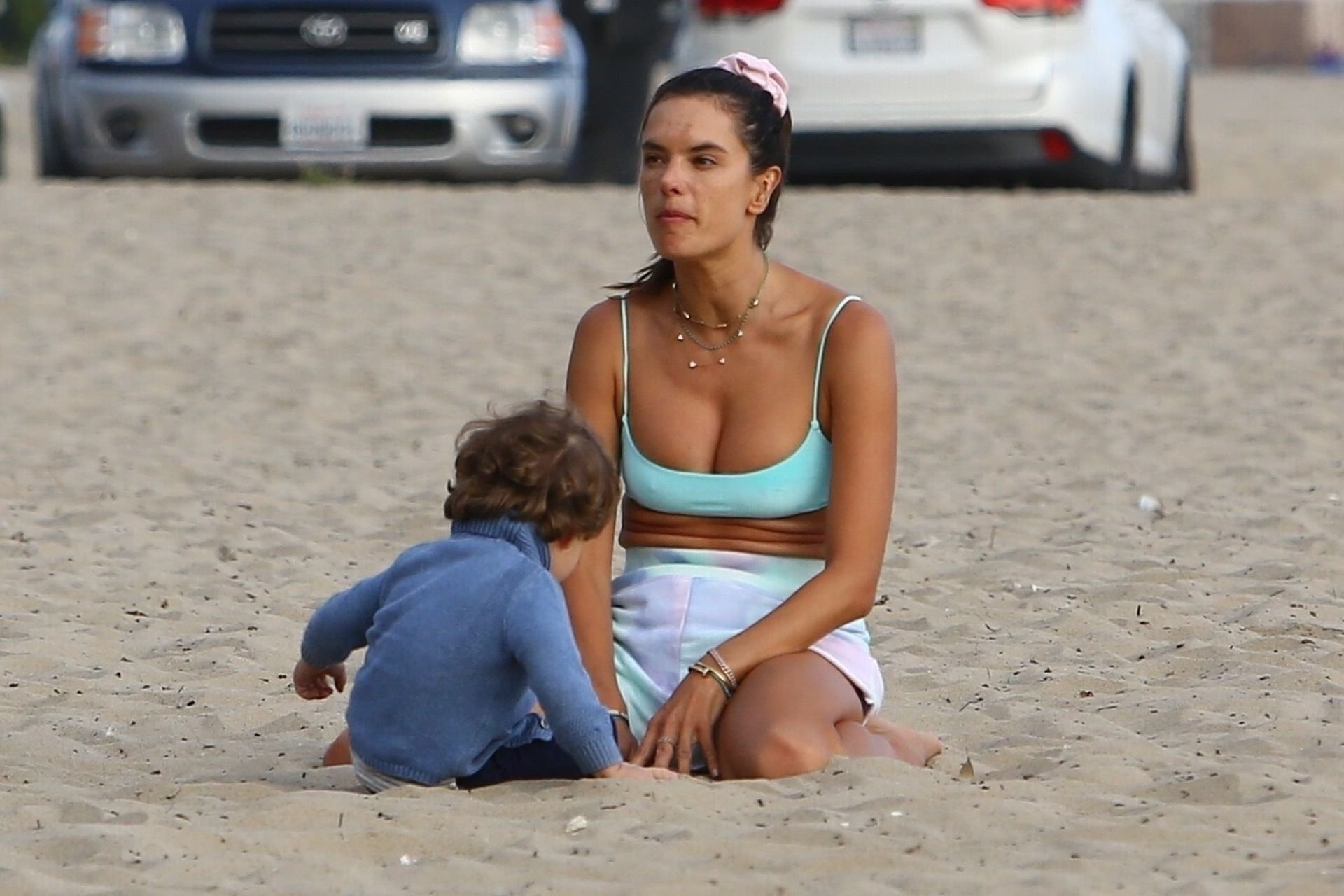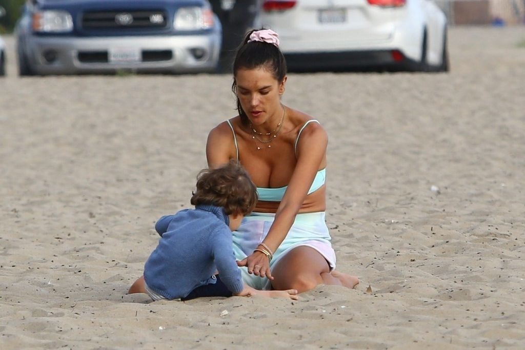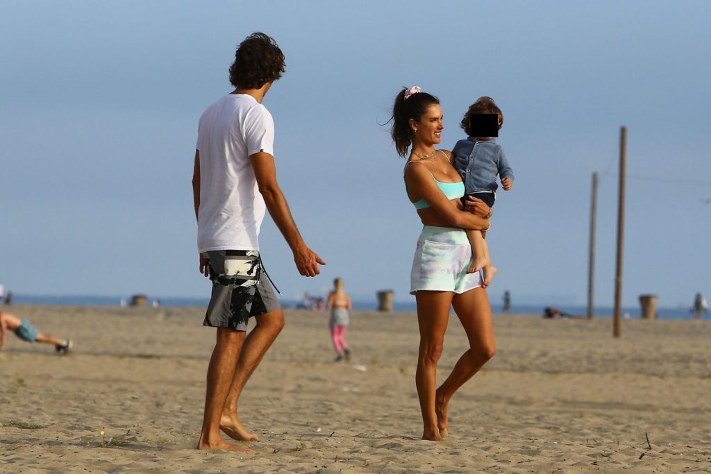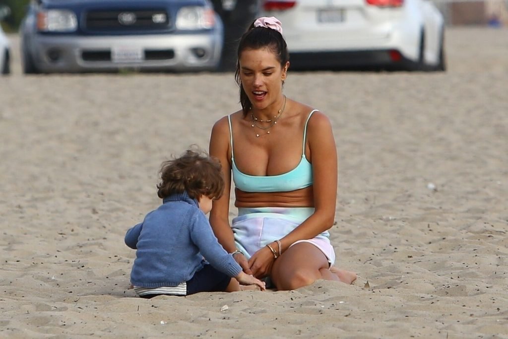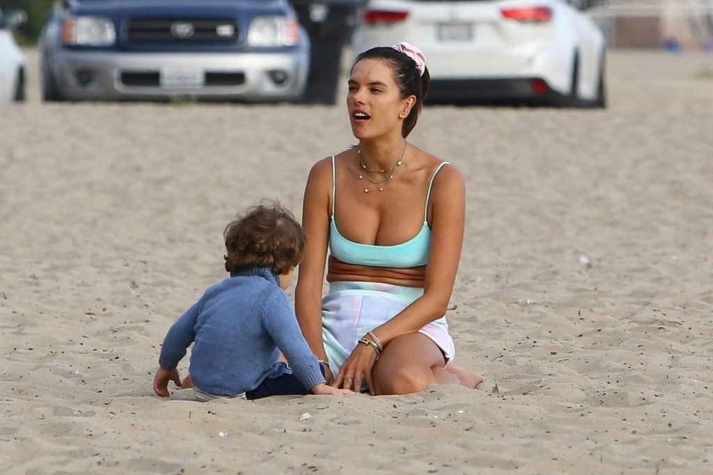 Le mannequin Alessandra Ambrosio a été aperçue en train de s’amuser énormément avec Ana Beatriz Barros et son fils à la plage de Santa Monica, le 08/05/2019.