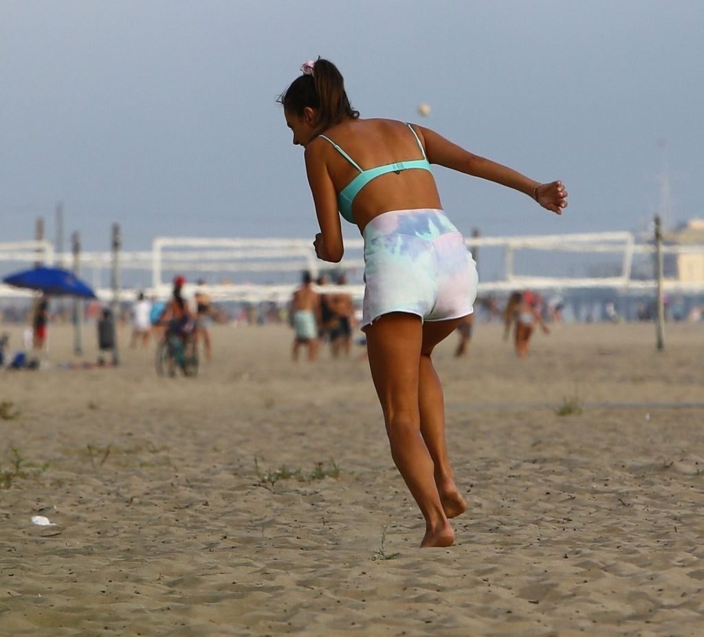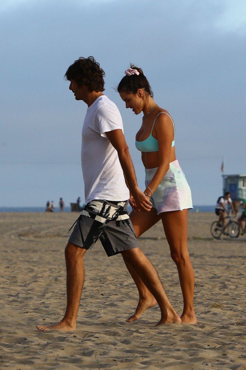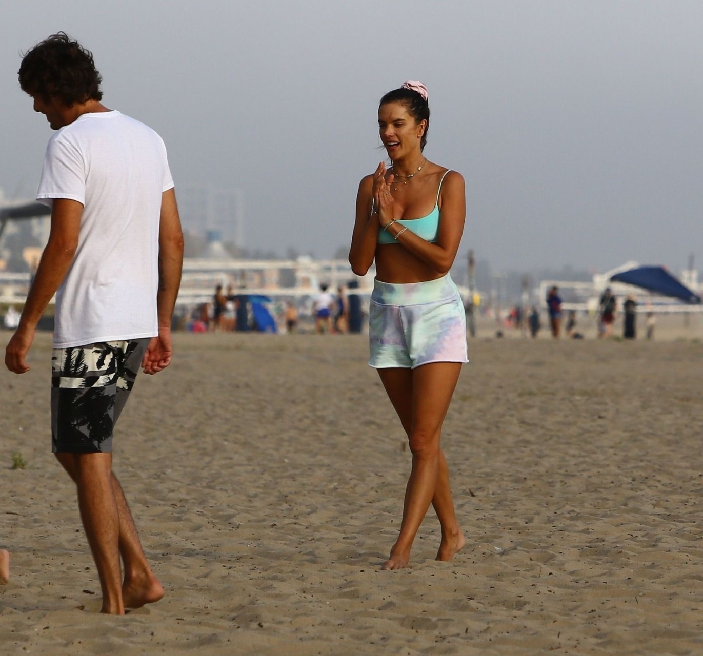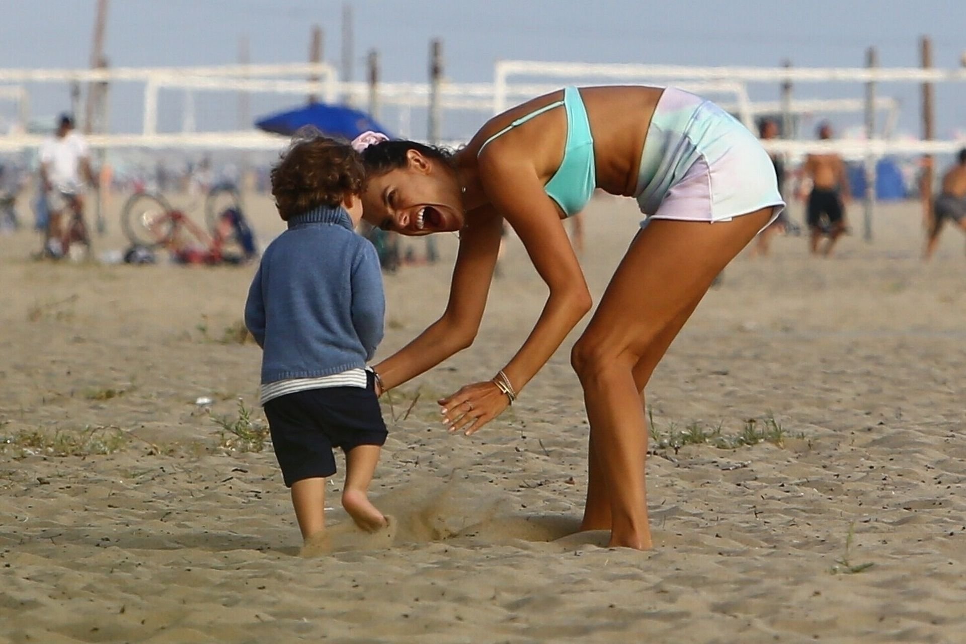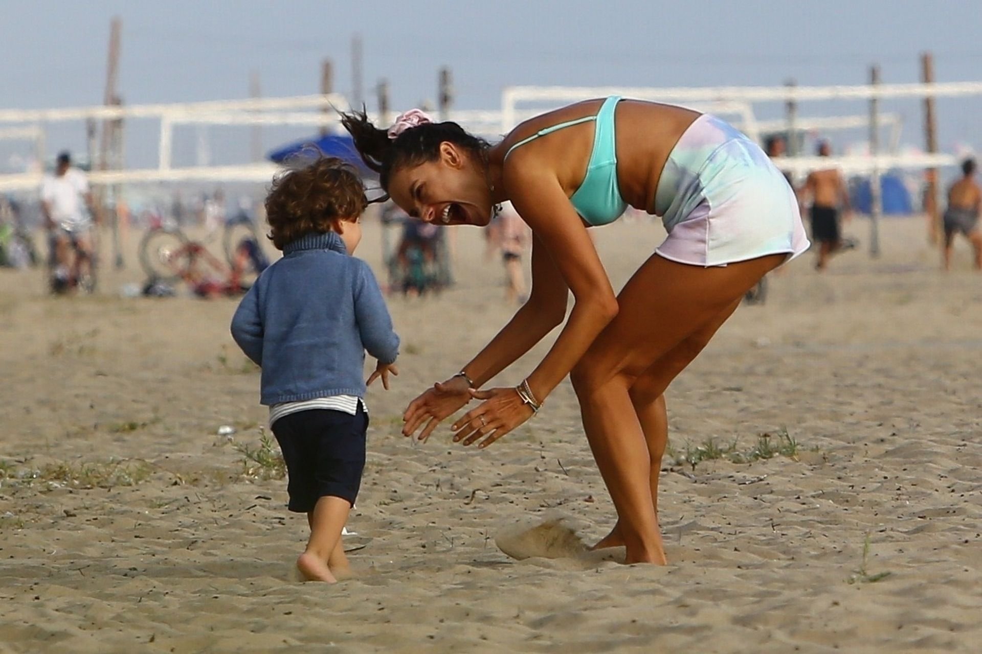 Le mannequin Alessandra Ambrosio a été aperçue en train de s’amuser énormément avec Ana Beatriz Barros et son fils à la plage de Santa Monica, le 08/05/2019.