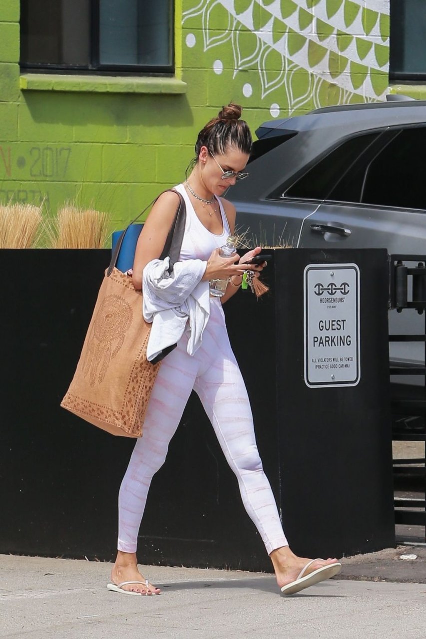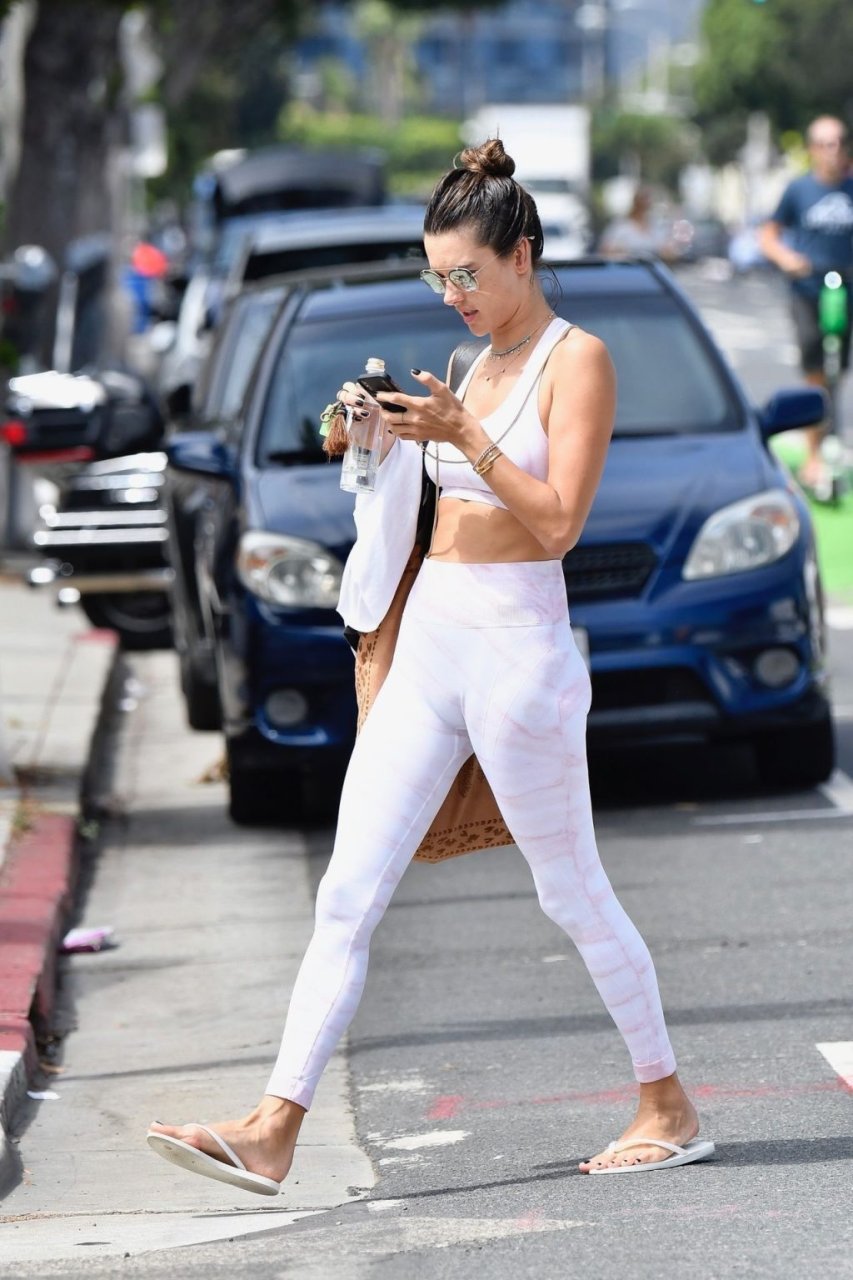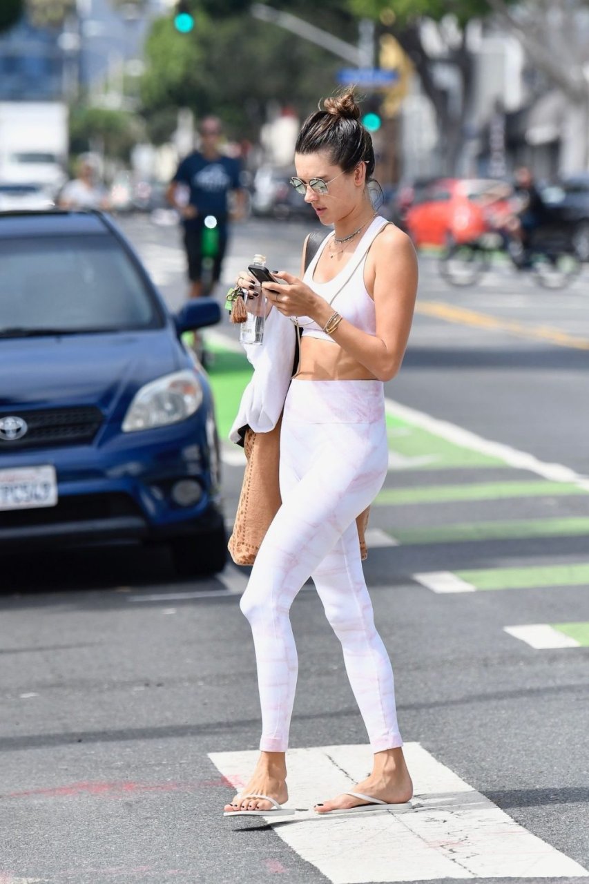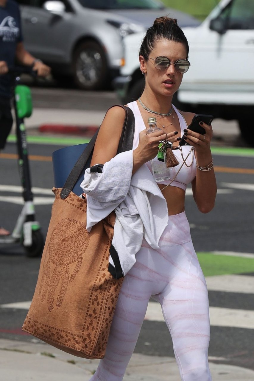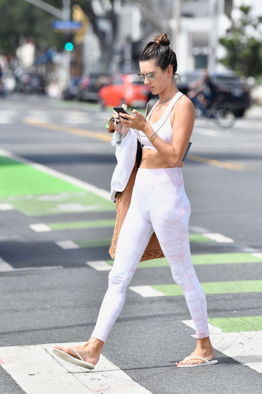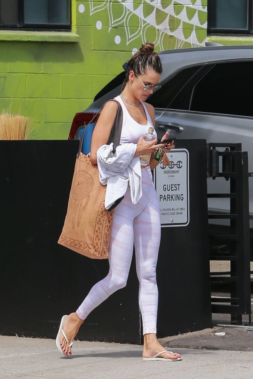 Après la Fashion Week de New York, Alessandra Ambrosio reprend sa routine quotidienne d’exercice avec une séance de yoga matinale chez Yogaworks à Santa Monica, le 13/09/2019.
