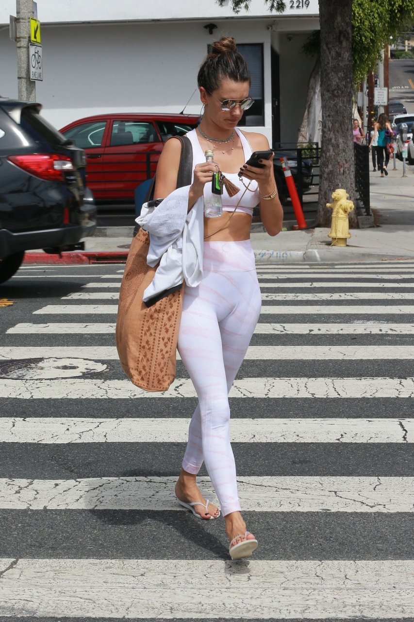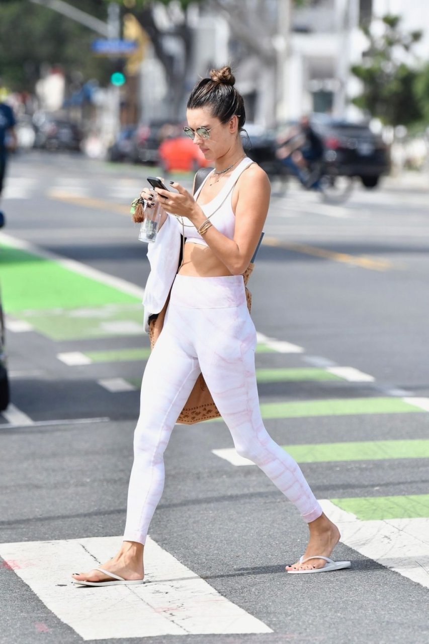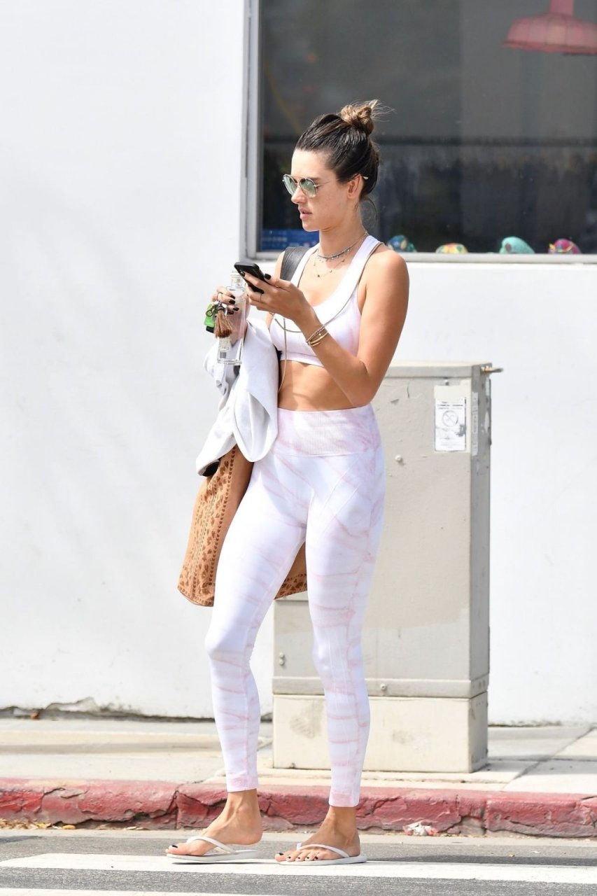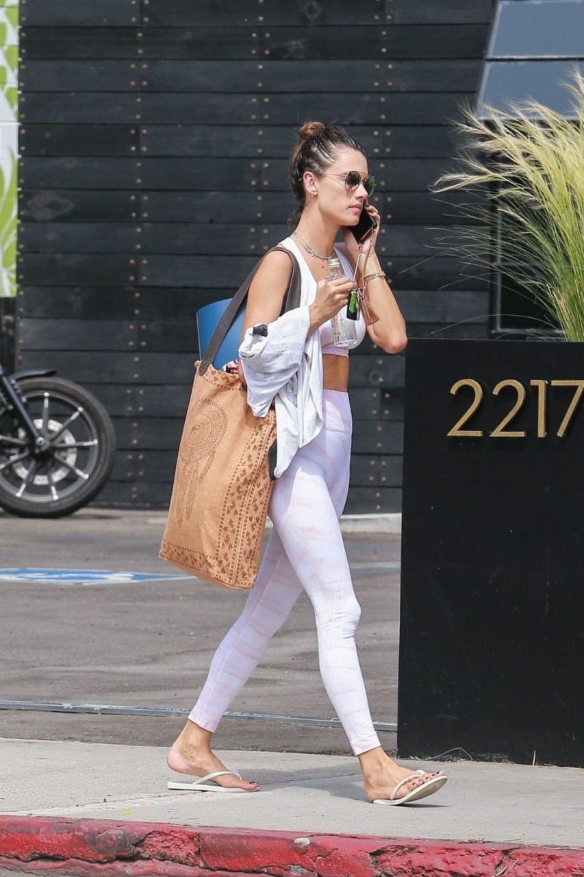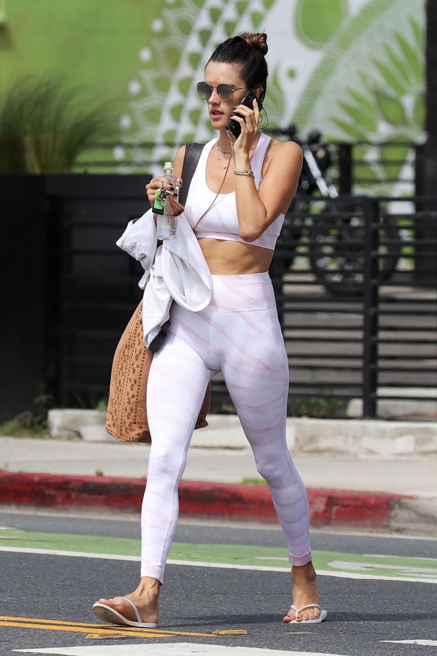 Après la Fashion Week de New York, Alessandra Ambrosio reprend sa routine quotidienne d’exercice avec une séance de yoga matinale chez Yogaworks à Santa Monica, le 13/09/2019.