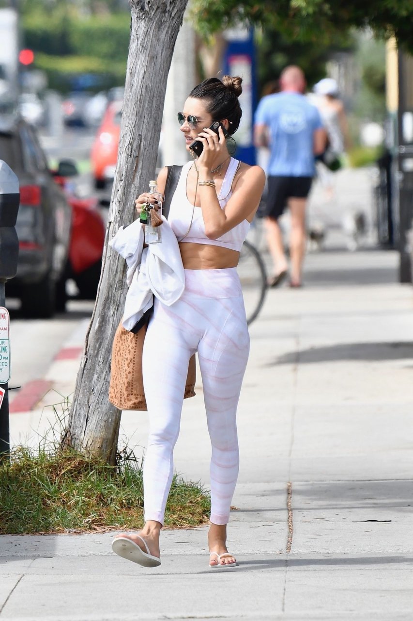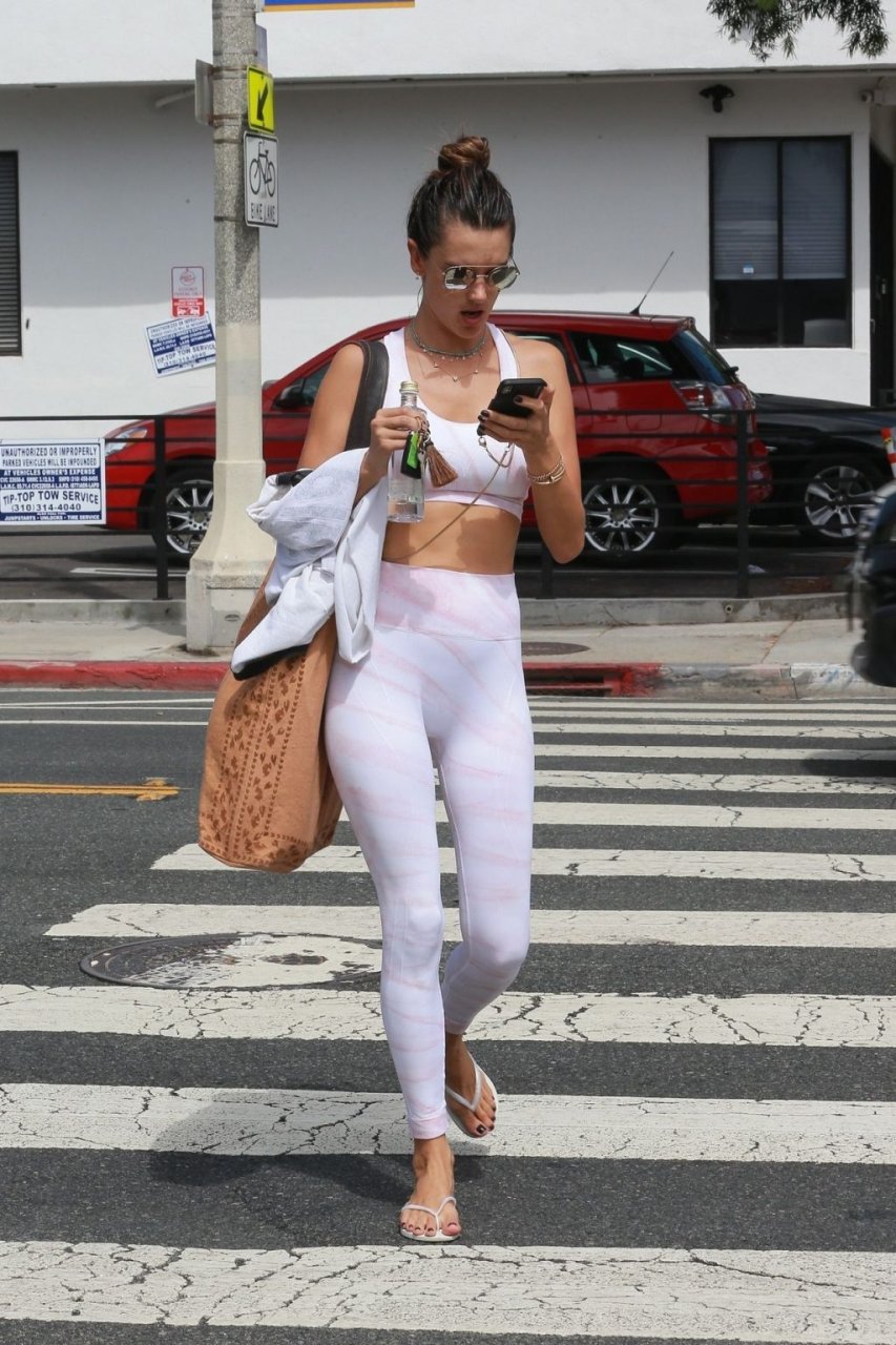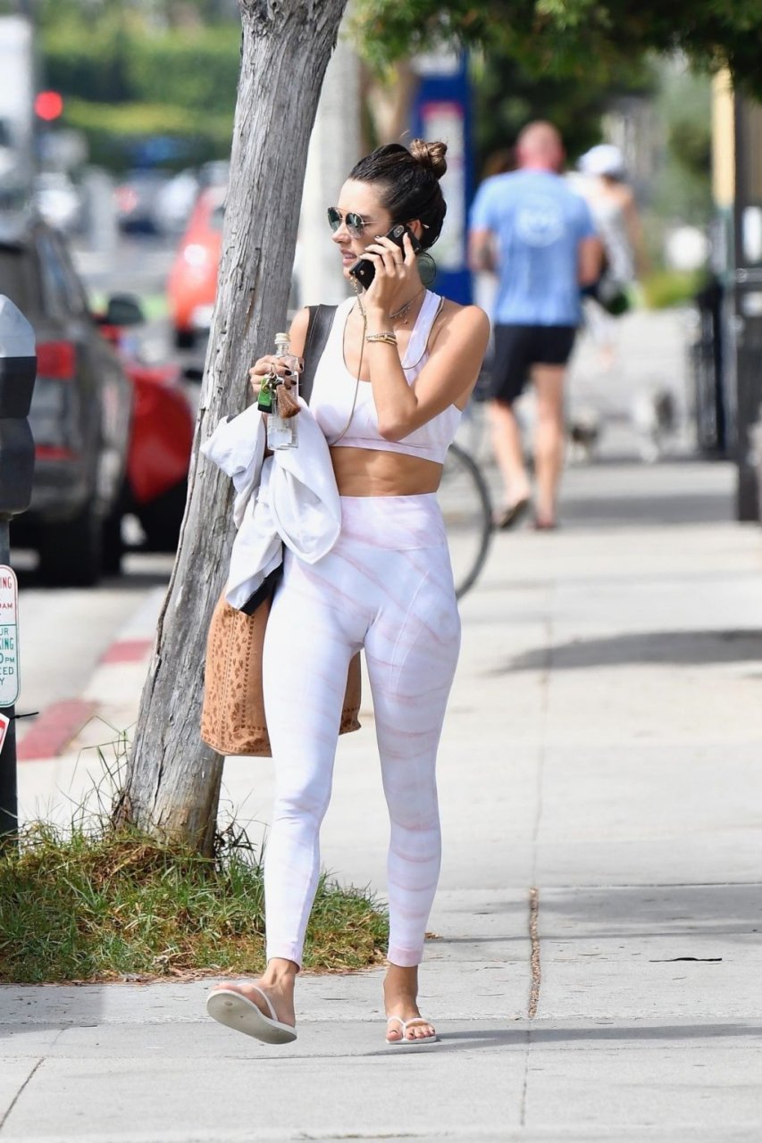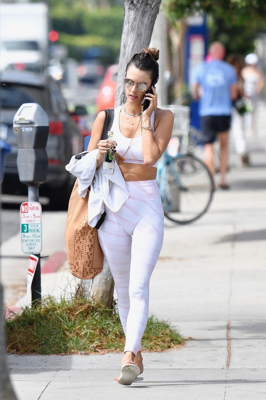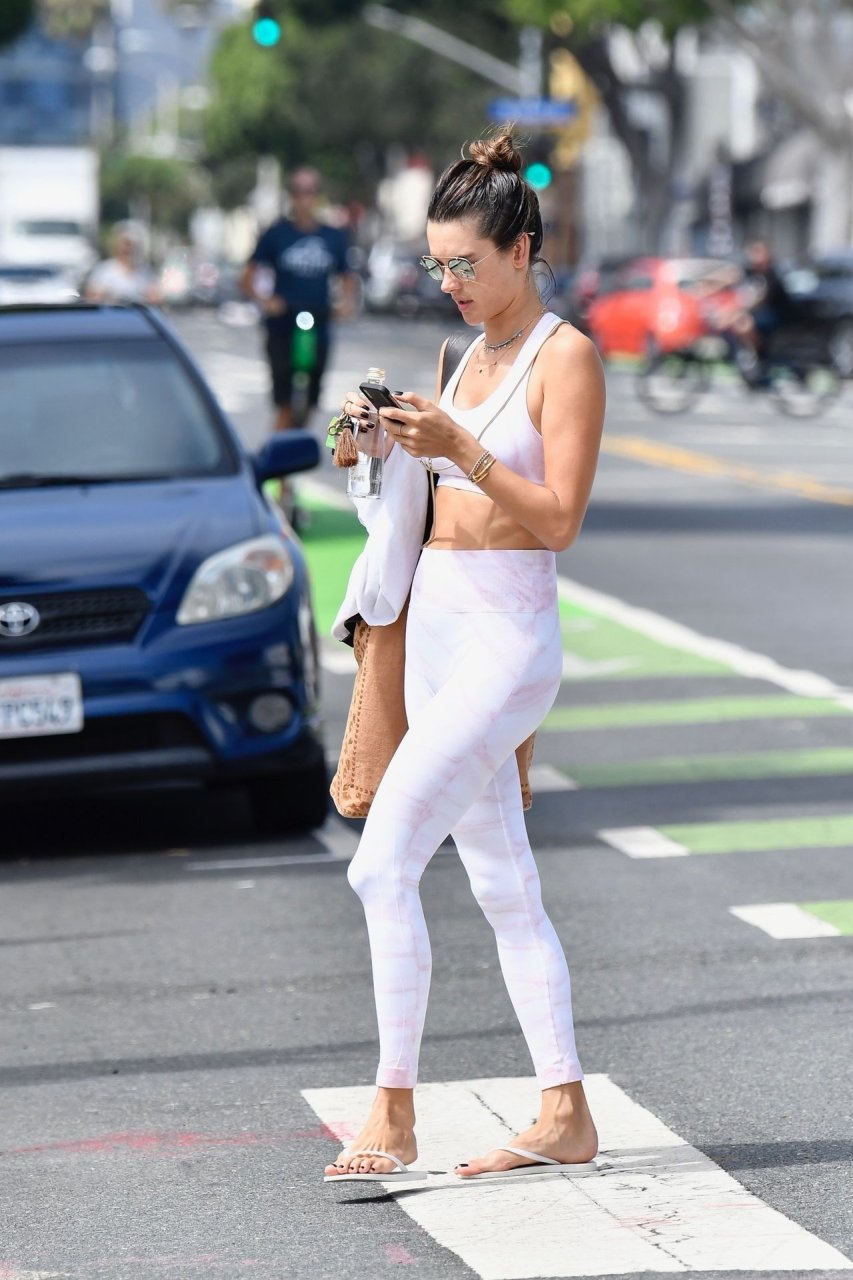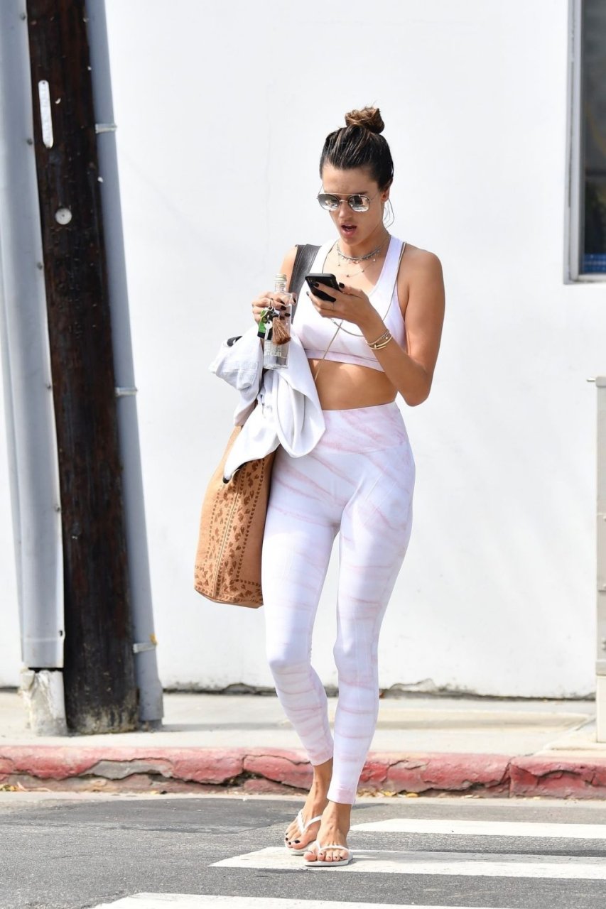 Après la Fashion Week de New York, Alessandra Ambrosio reprend sa routine quotidienne d’exercice avec une séance de yoga matinale chez Yogaworks à Santa Monica, le 13/09/2019.