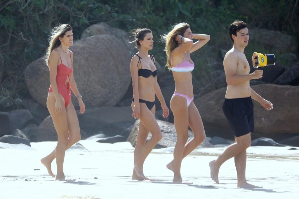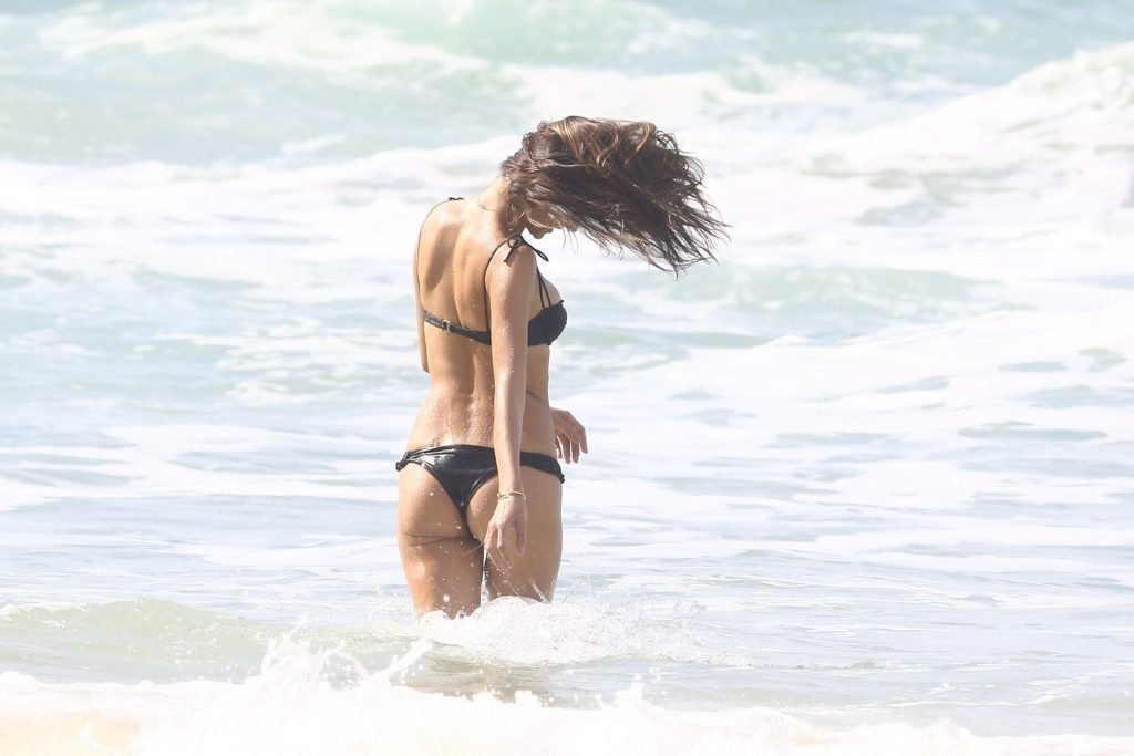 Le mannequin brésilien Alessandra Ambrosio fait sensation dans un bikini noir sexy sur les plages de Porto Alegre, Brésil, le 07/02/2019.