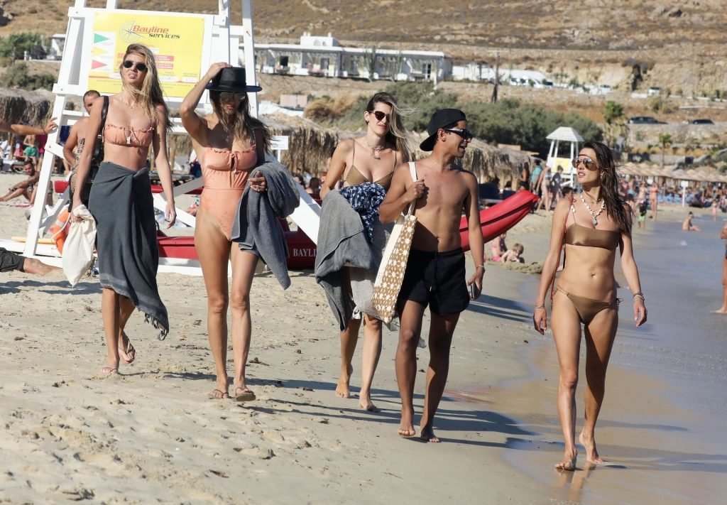 Le mannequin a passé toute la journée à s’amuser sur la plage avec des amis et sa fille, profitant d’une journée de détente au soleil à Mykonos.