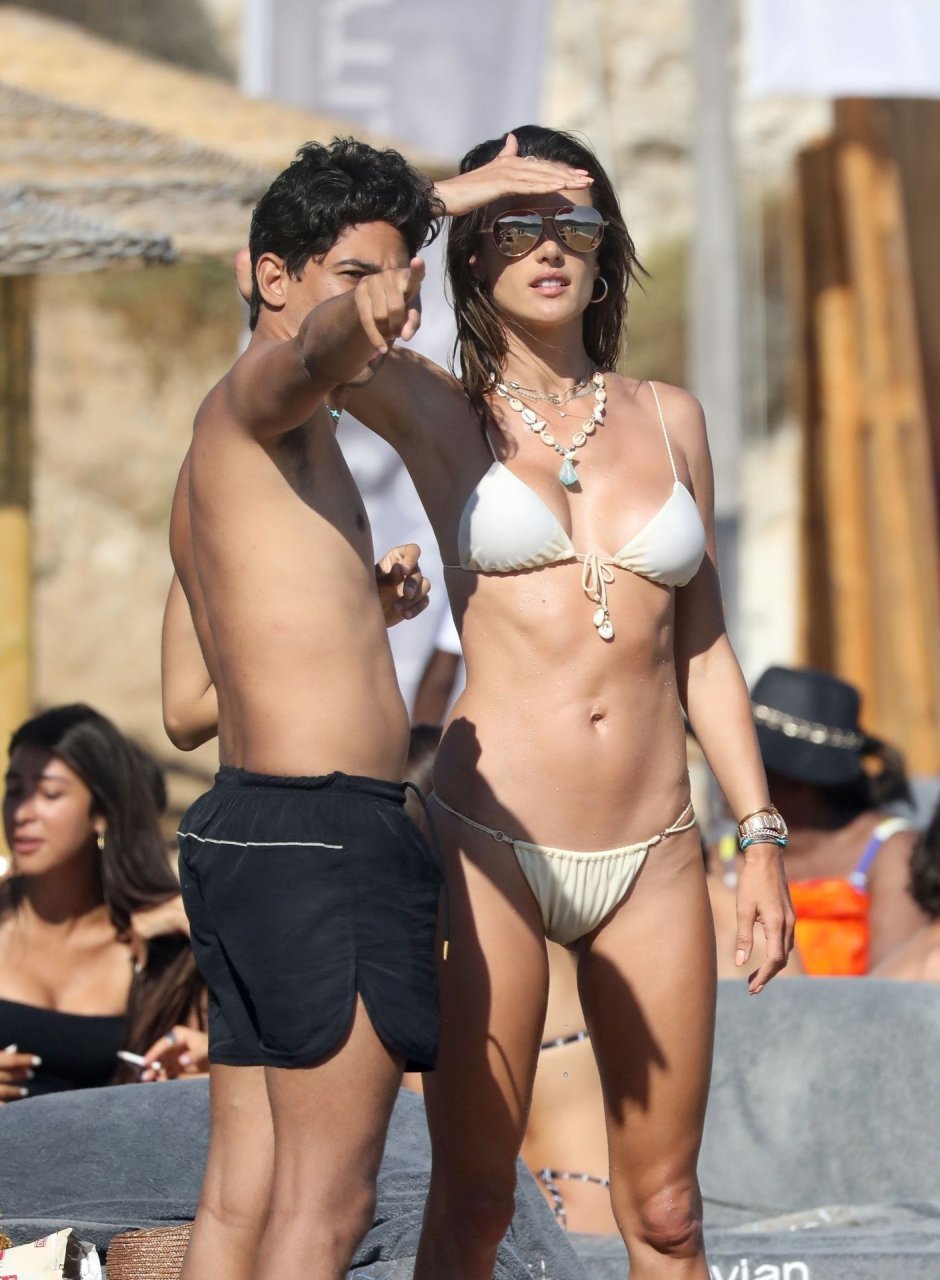 Le mannequin brésilien Alessandra Ambrosio a été photographiée en train de profiter des vacances d’été avec sa fille et sa sœur Aline à Mykonos, le 18/07/2019.