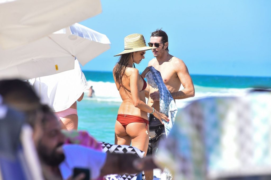 La magnifique mannequin Alessandra Ambrosio se rend à la plage avec son petit ami Nicolo Oddi à Florianopolis dans le sud du Brésil, le 27/12/2019.
