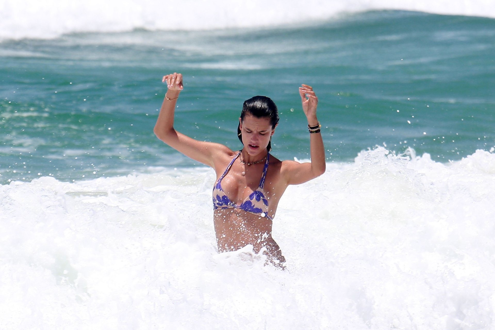 Alessandra Ambrosio porte un bikini minuscule à la plage de Florianópolis, Brésil, 12/01/2017. Alessandra Ambrosio (née Alessandra Corine Ambrosio le 11 avril 1981(35)) est un mannequin brésilien.