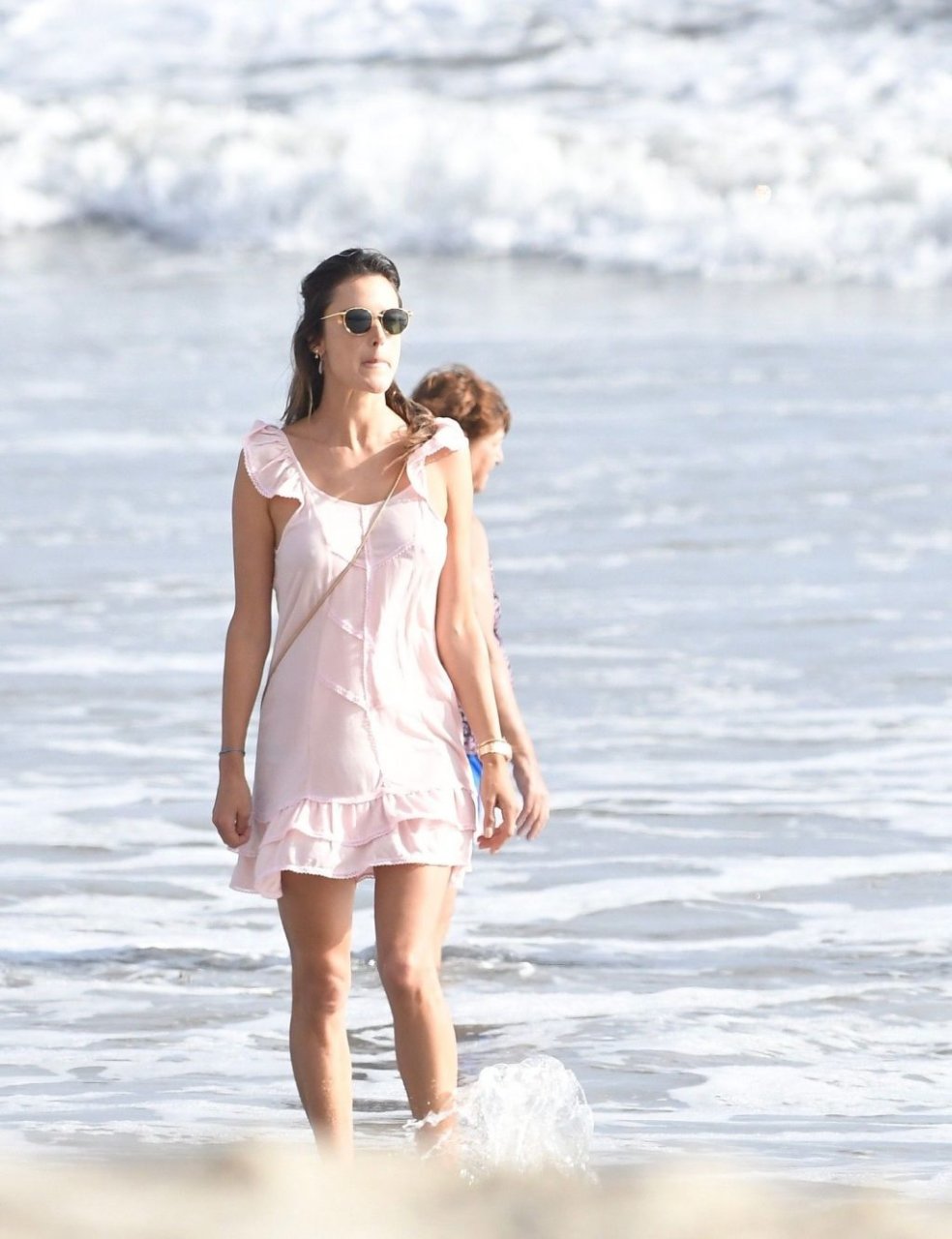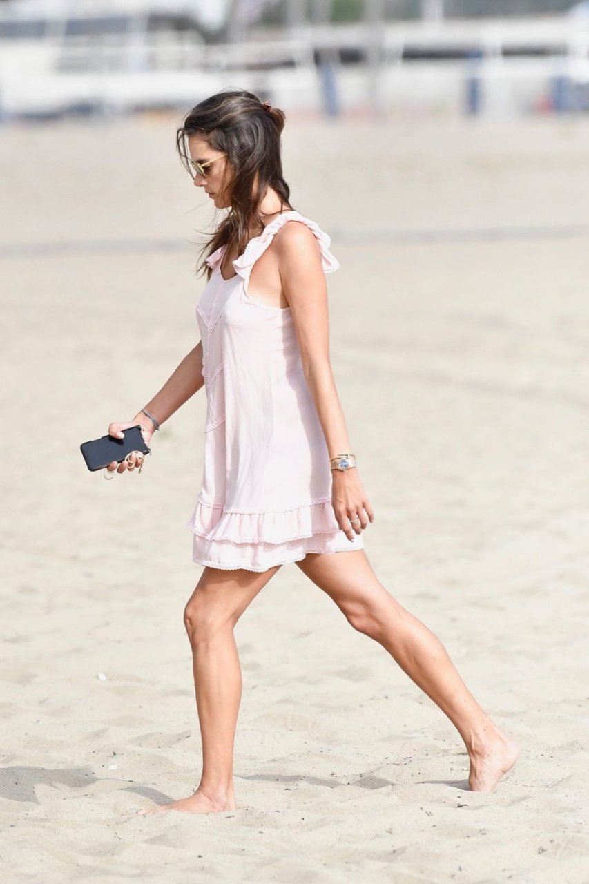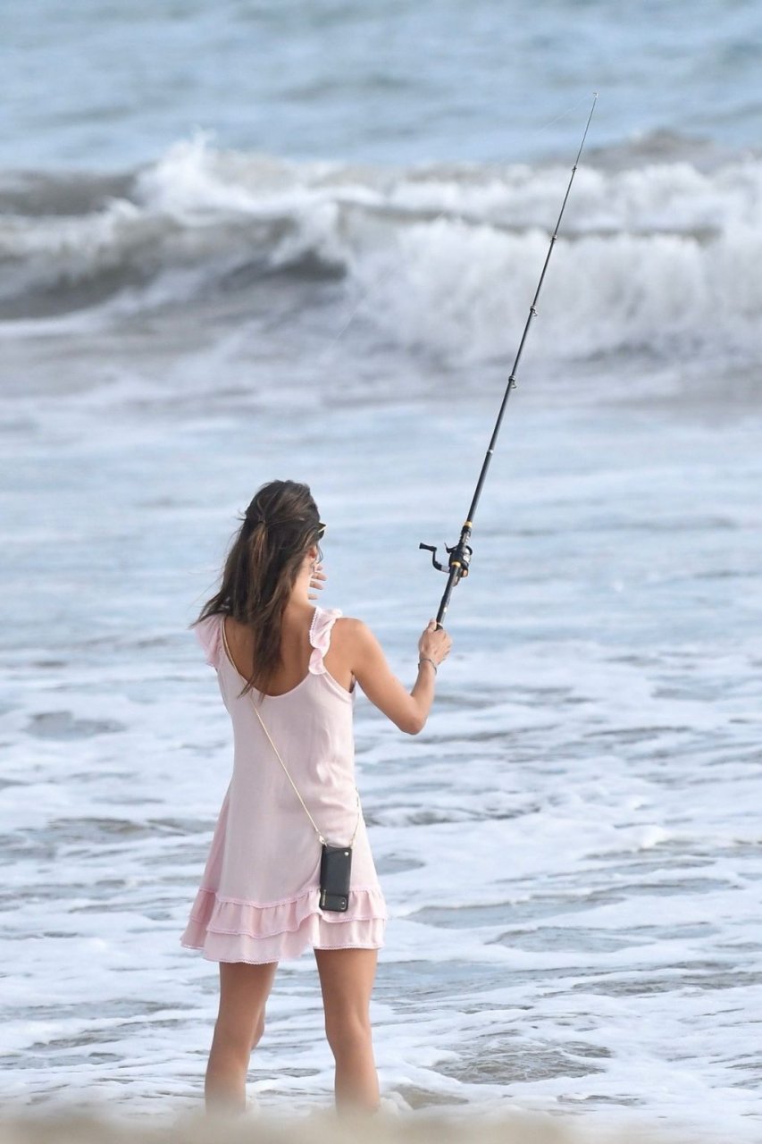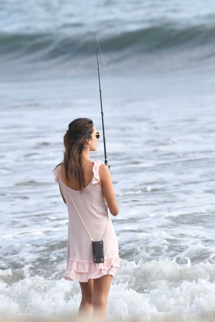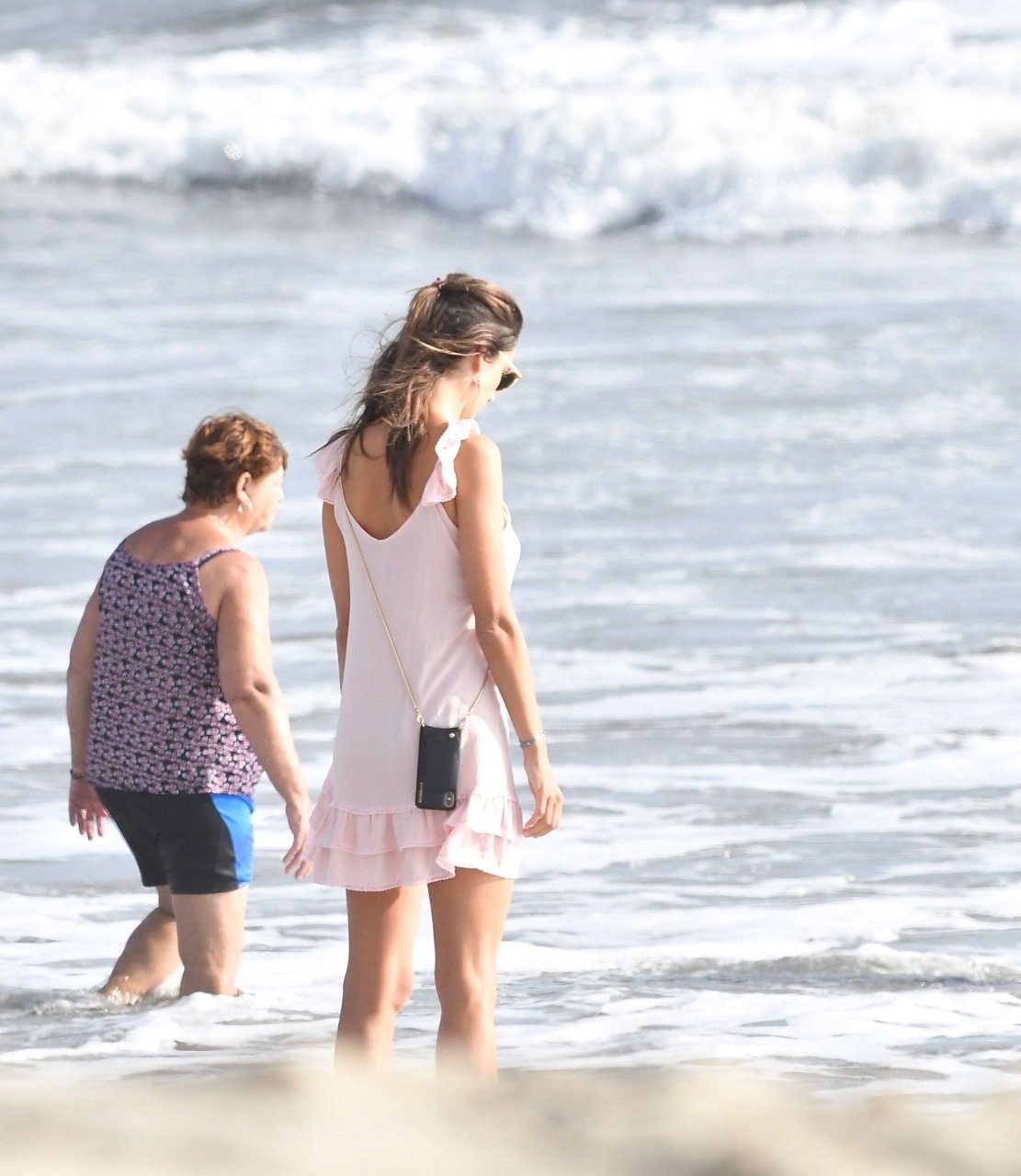 Alessandra Ambrosio est accompagnée de son fils pour aller vérifier son fils Noah lors d’une sortie de pêche à Santa Monica, le 13/08/2019. Le mannequin porte une robe de plage plissée pendant la sortie.