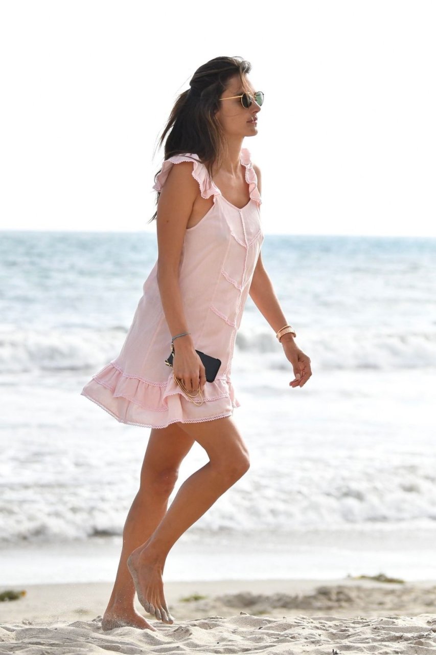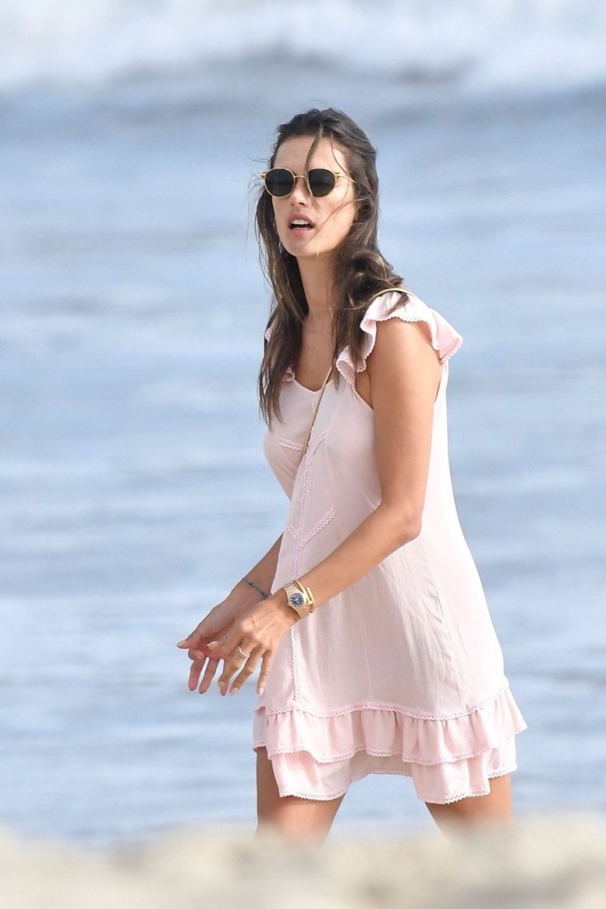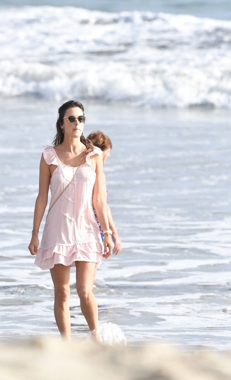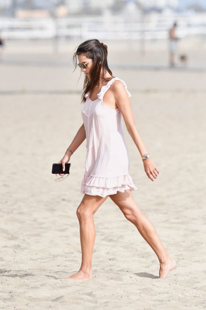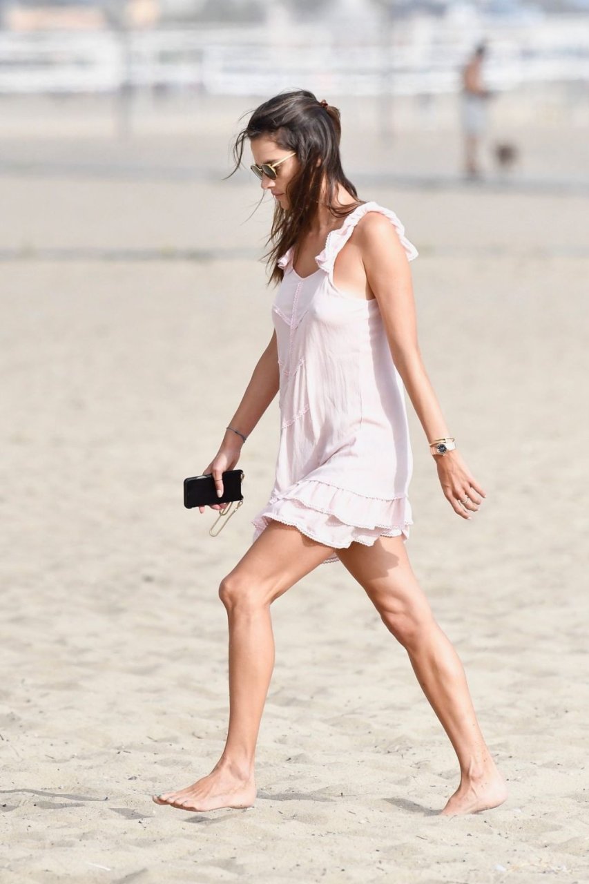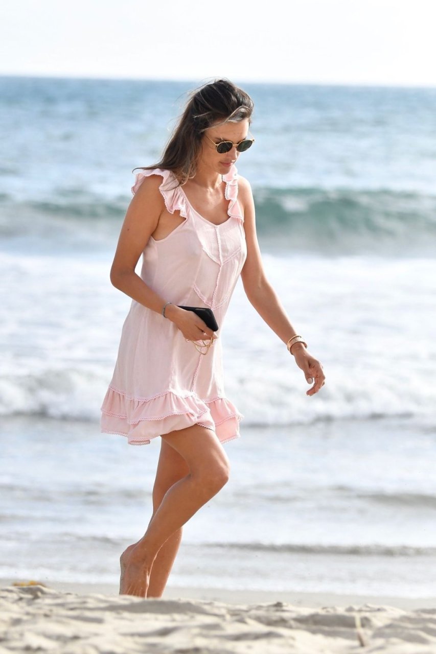 Alessandra Ambrosio est accompagnée de son fils pour aller vérifier son fils Noah lors d’une sortie de pêche à Santa Monica, le 13/08/2019. Le mannequin porte une robe de plage plissée pendant la sortie.