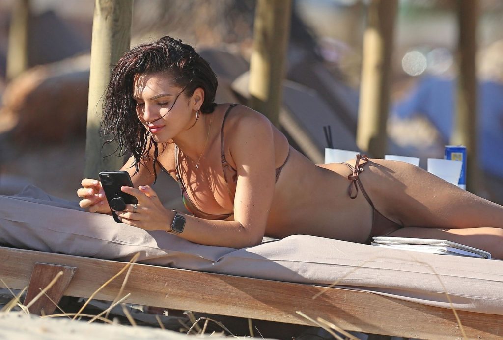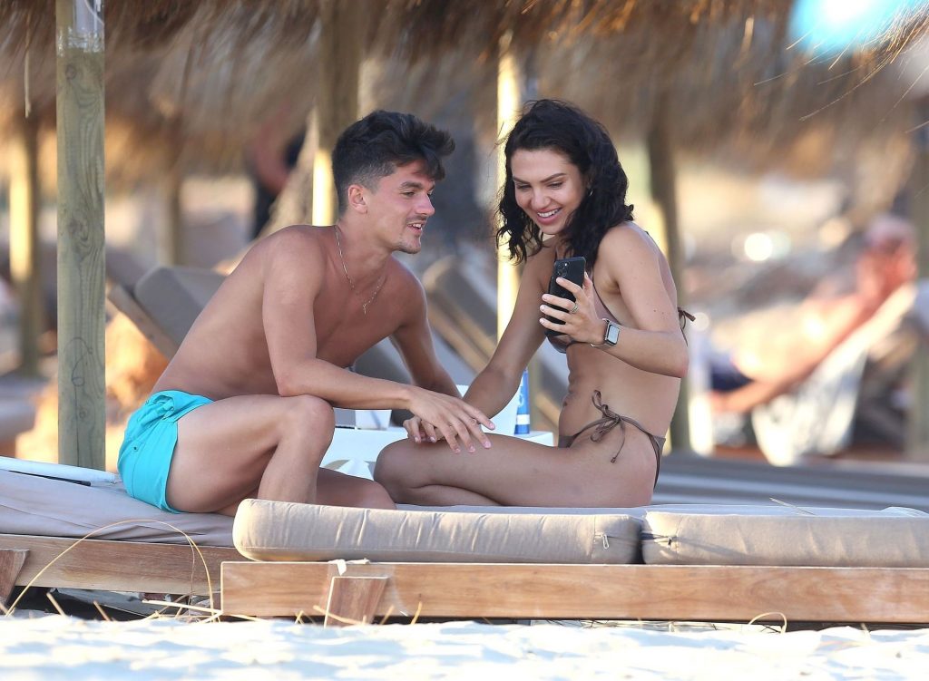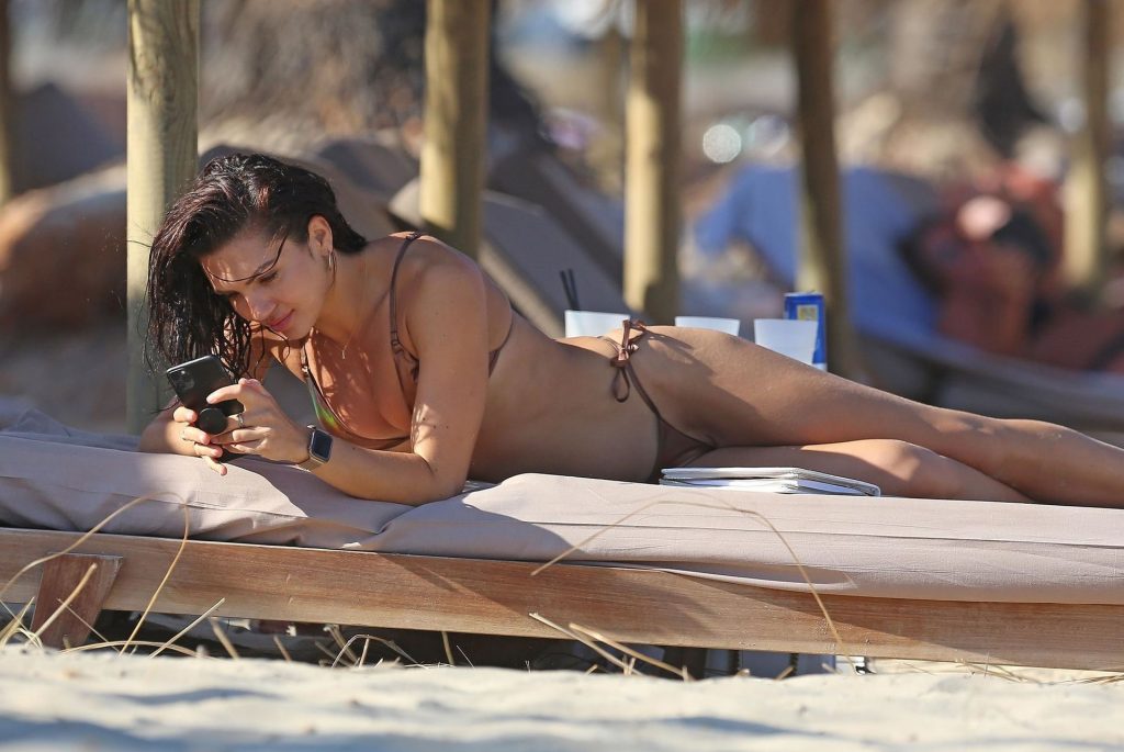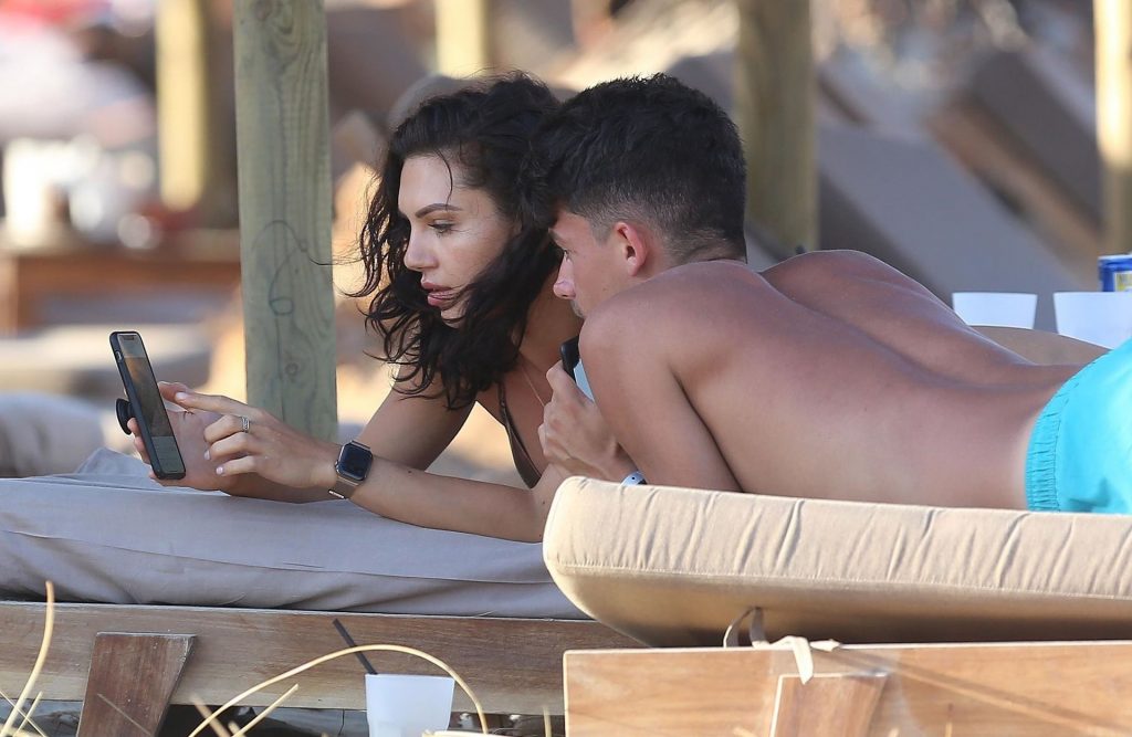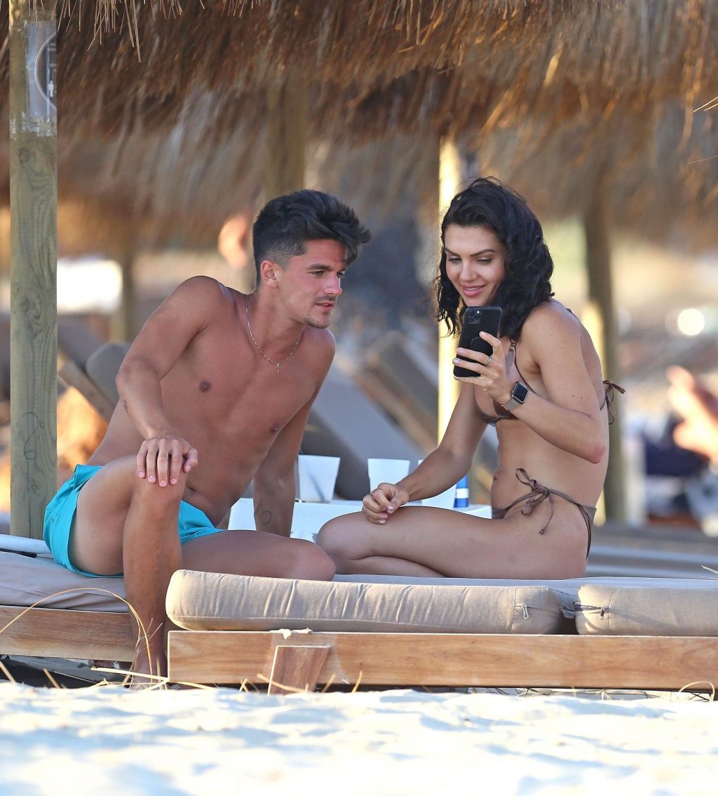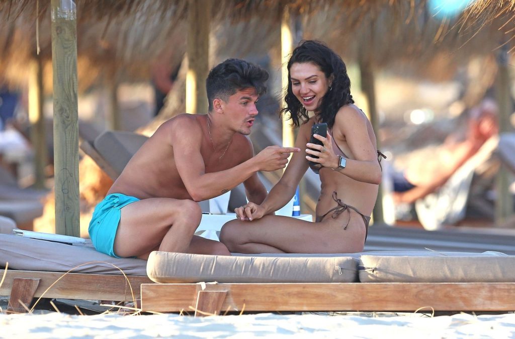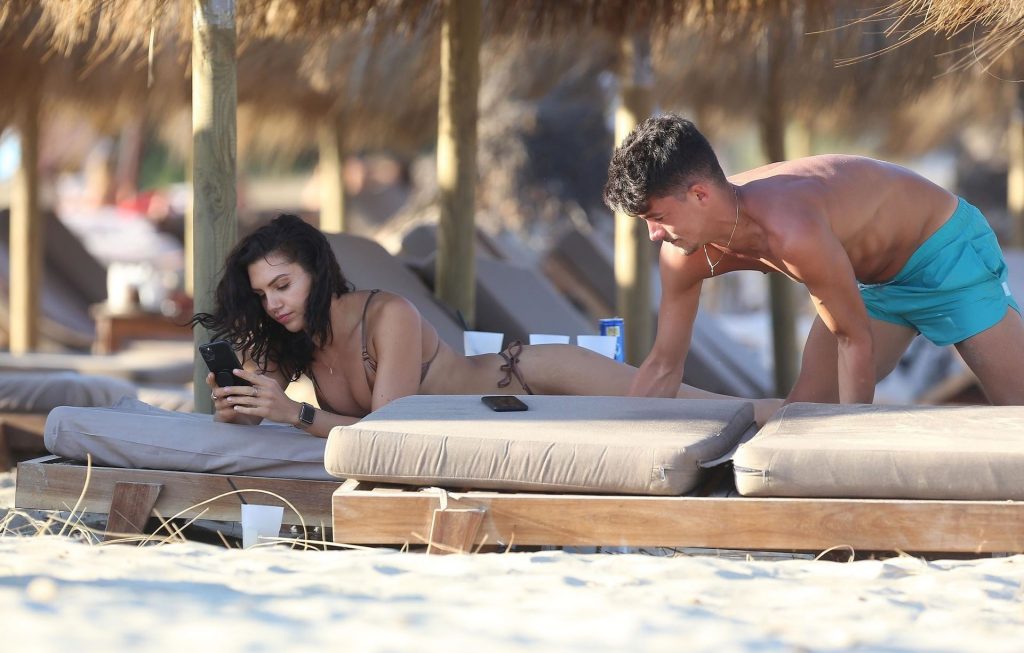 Love Island star Alexandra Cane est aperçue avec un mystérieux compagnon sous un climat plus chaud, profitant d’une journée à la plage à Ibiza, le 26/07/2020.