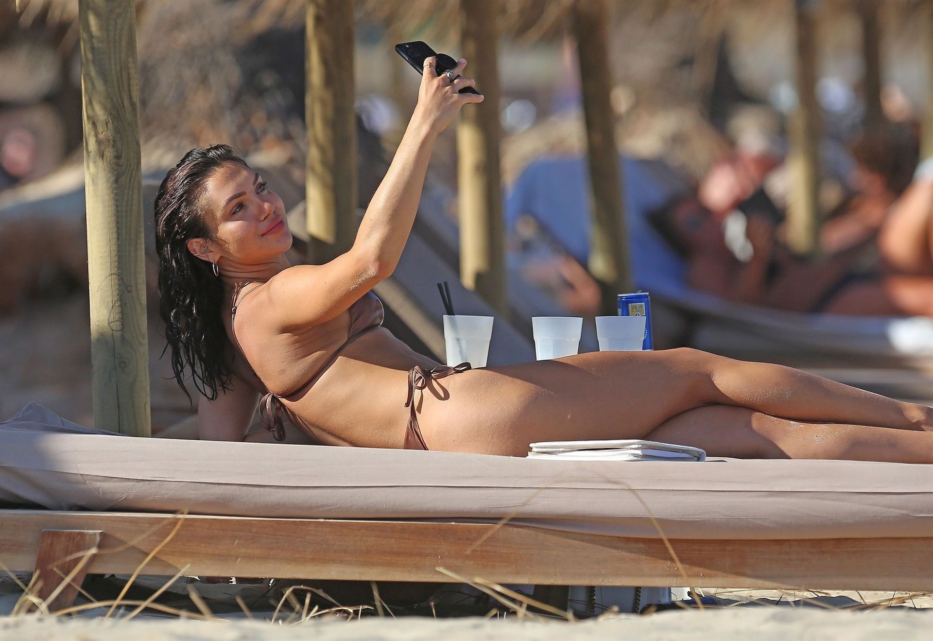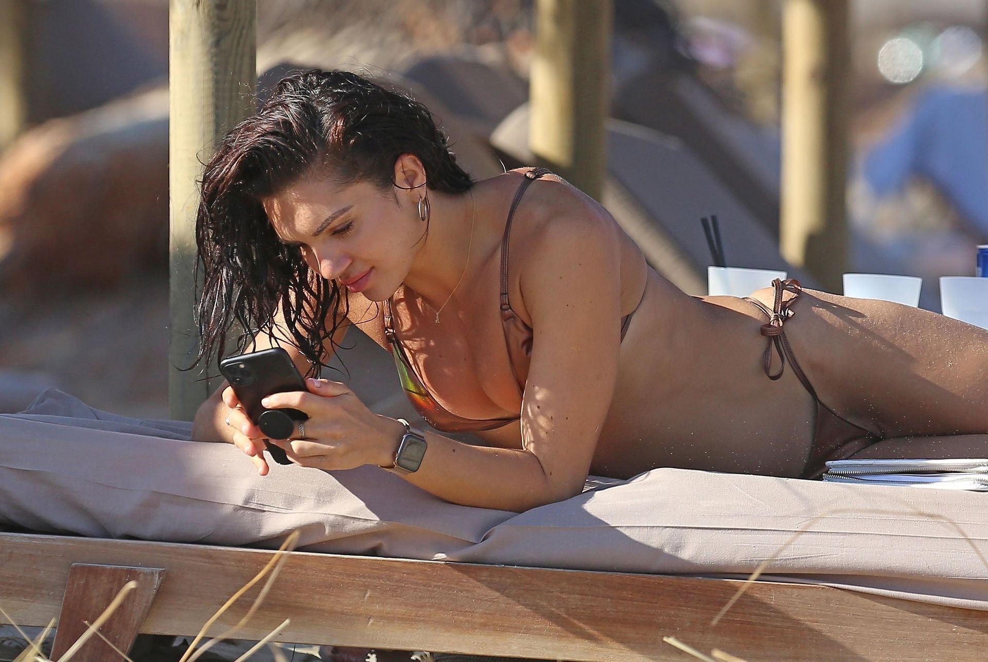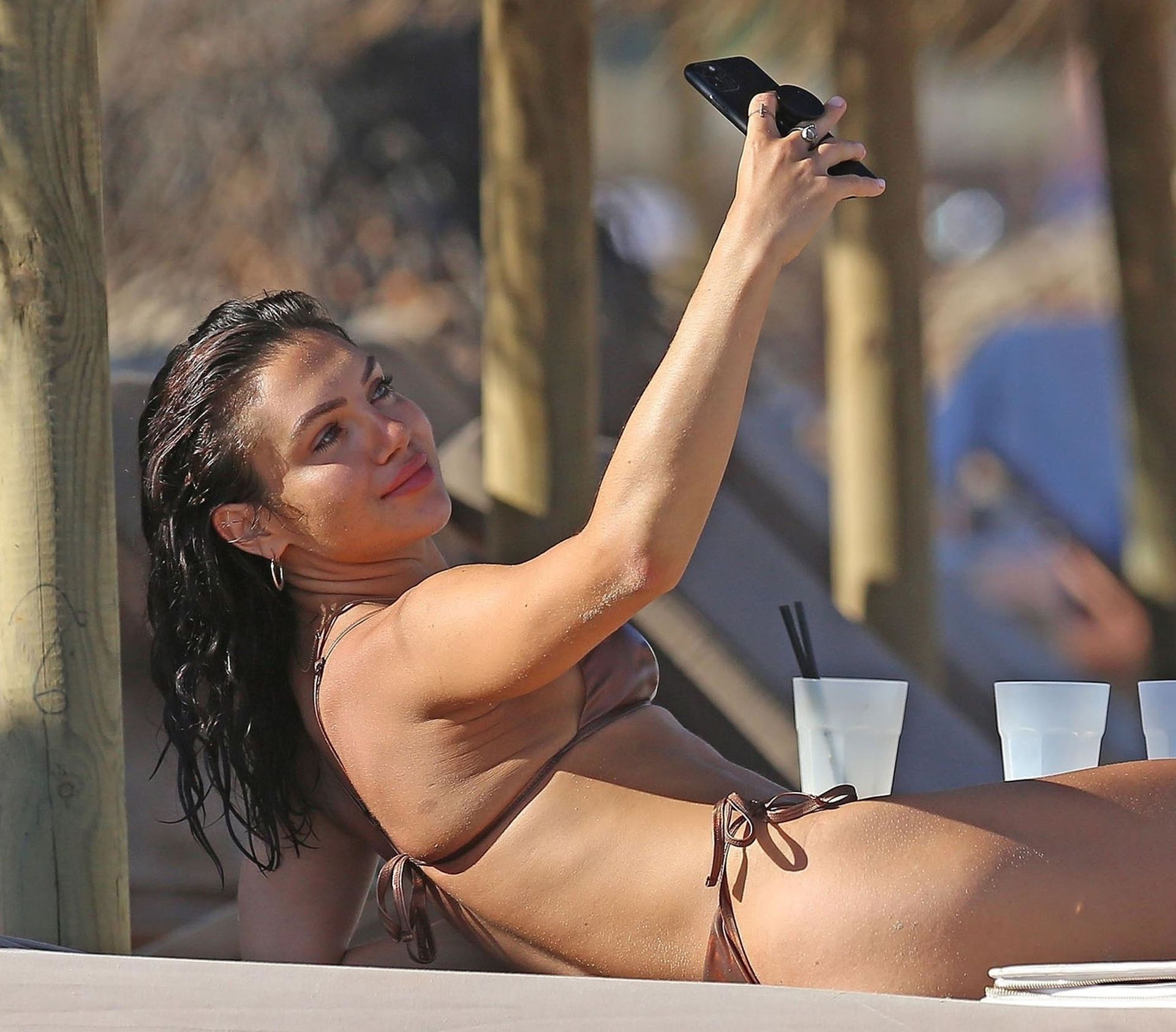 La star sexy et sensuelle offre un spectacle brûlant en portant un petit bikini révélant son décolleté alors qu’elle posait pour quelques selfies, profitant du soleil espagnol avec son mystérieux compagnon torse nu qui se détendait avec elle sur le transat.