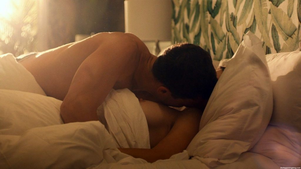 Alexandra Daddario dort nue sur le dos tandis qu’un homme tire les couvertures pour dévoiler son sein gauche et son téton, puis semble impressionné en les regardant avant de se retourner et de commencer à embrasser son sein, sa poitrine et son cou pour la réveiller jusqu’à ce qu’elle le regarde et qu’ils commencent à s’embrasser lentement.