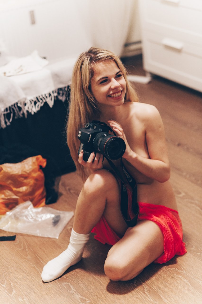 Le mannequin russe Alexandra Smelova est apparue en tant que photographe nue lors d’une séance photo “Naked Backstage” par Sergei Starostin (novembre 2018). Cette jeune beauté est superbe avec l’appareil photo.